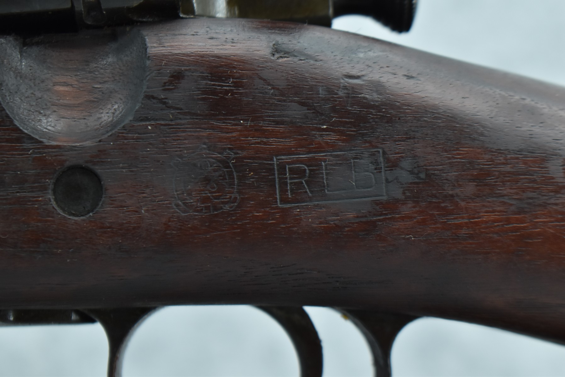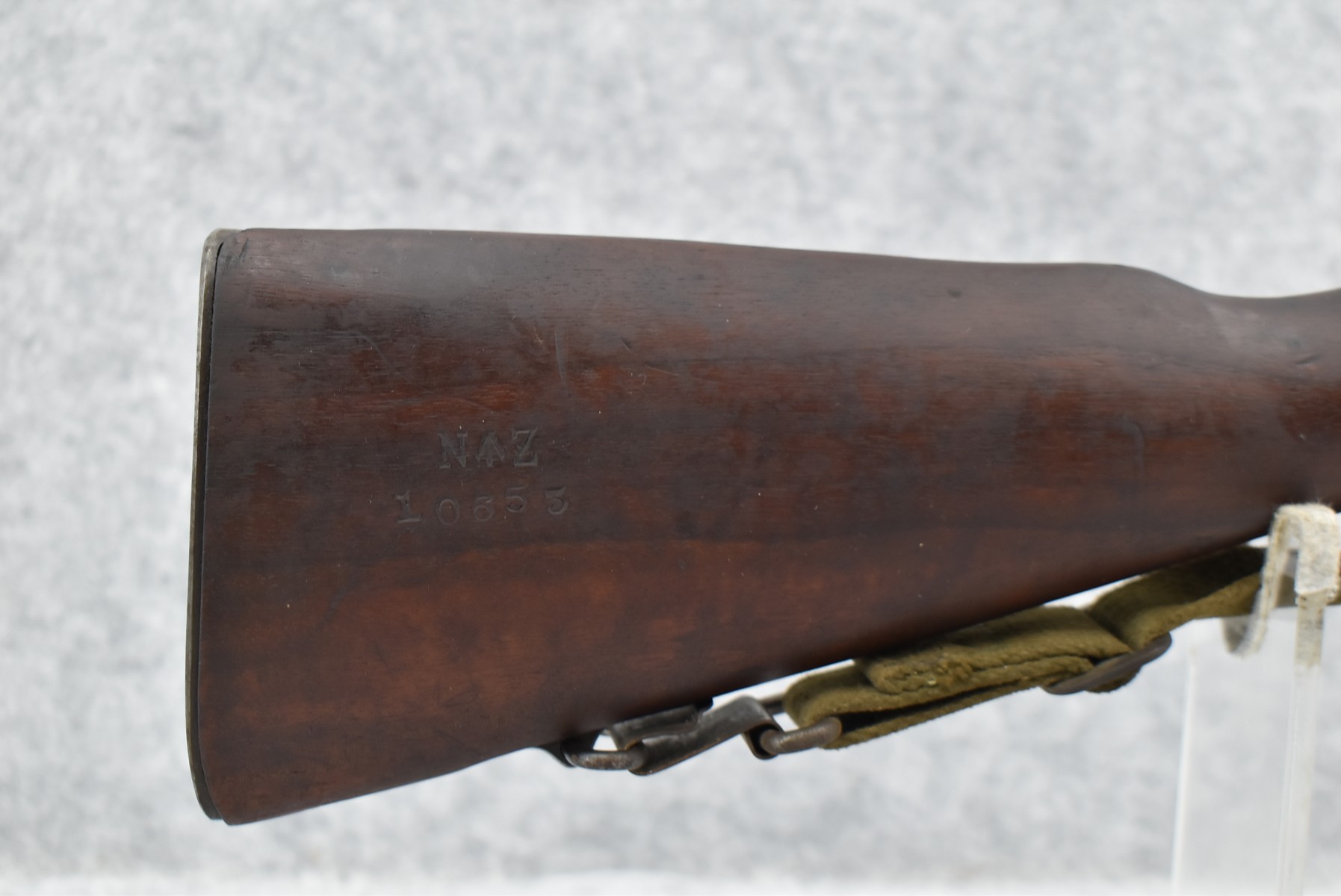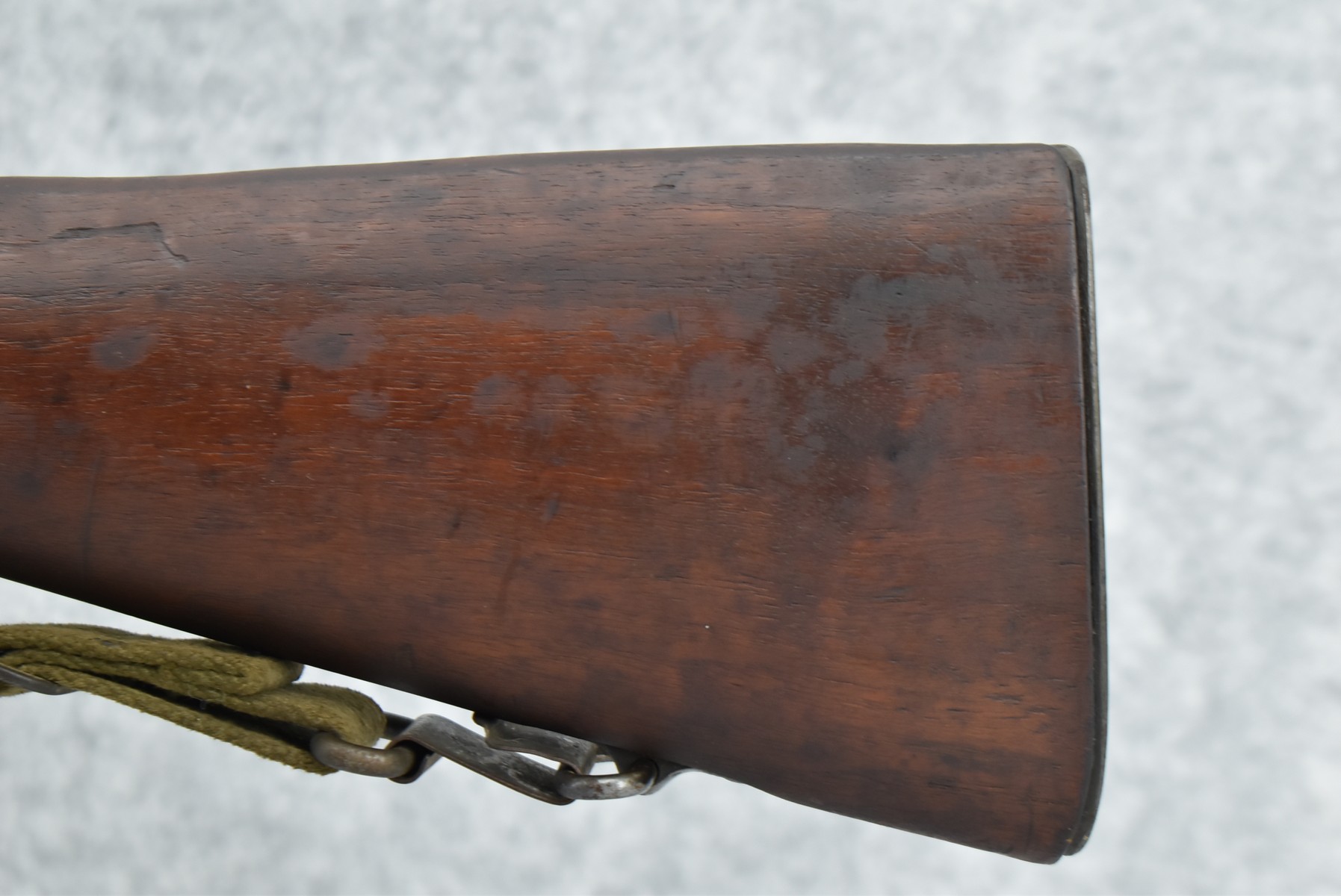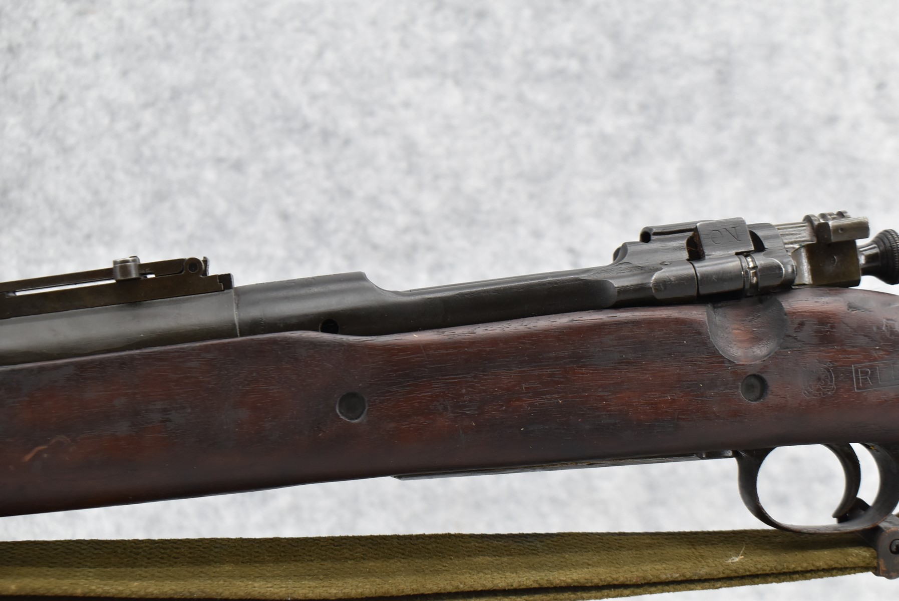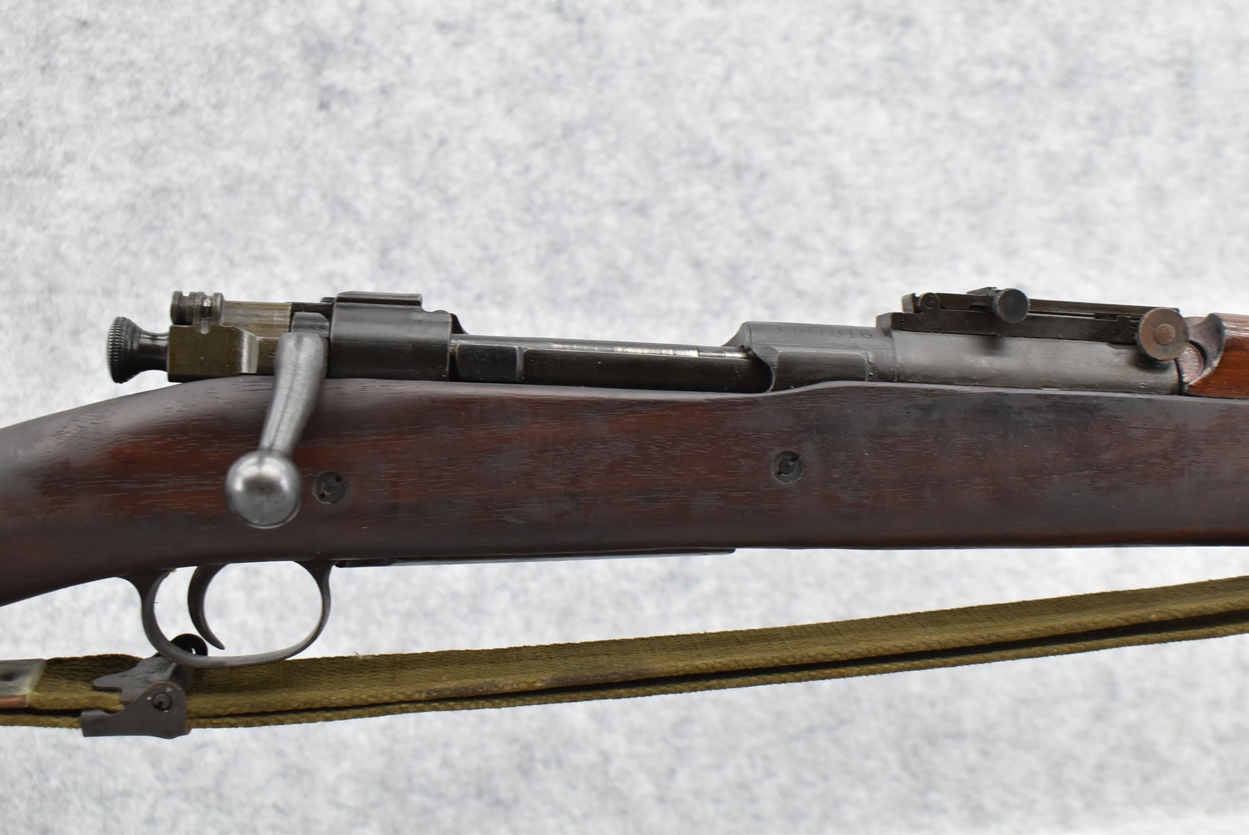 211R. Remington – Mod. 1903 – 30-06 Cal. Bolt Action Military Rifle – w/24” RA 4-42 Dated Barrel w/Hooded Front & Adj. Ladder Rear Sights – Parkerized Finish – w/Straight Grip Full Wood Military Stock w/Factory Metal Butt Plate w/Trapdoor – w/2 Strong Stock Cartouches on Left Side of Stock – w/Military Sling