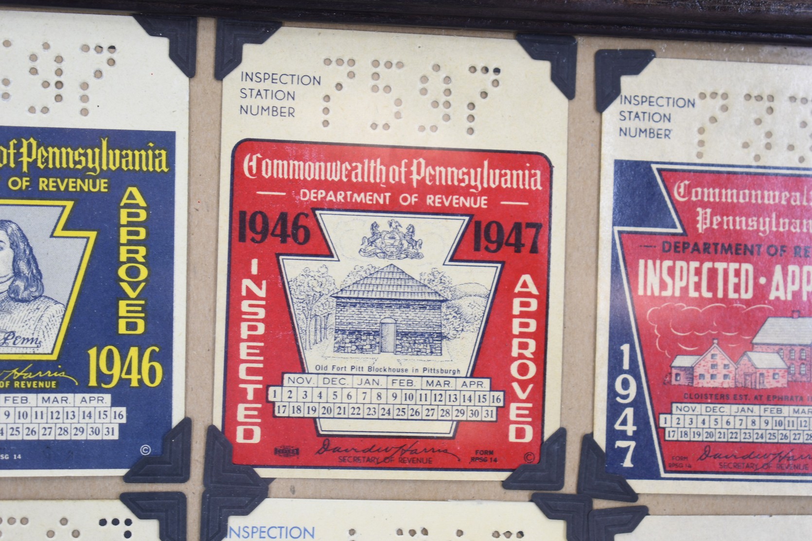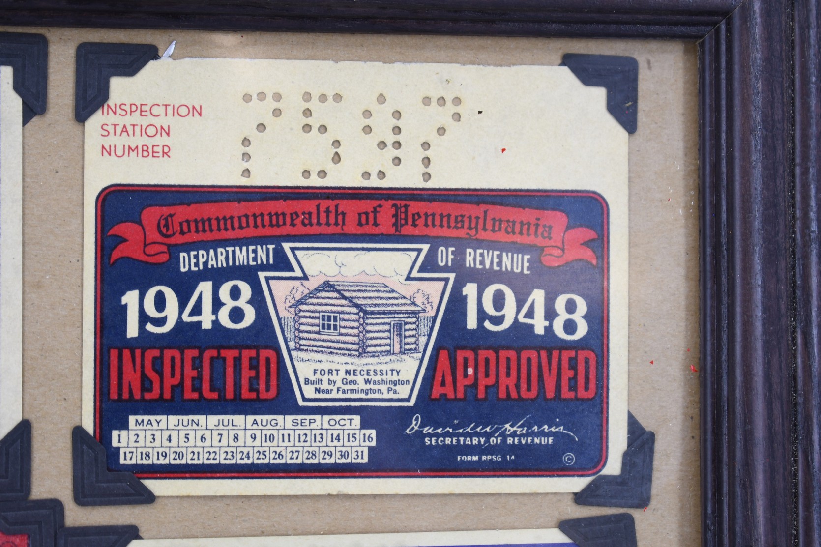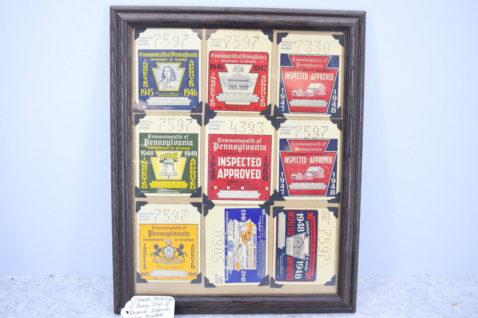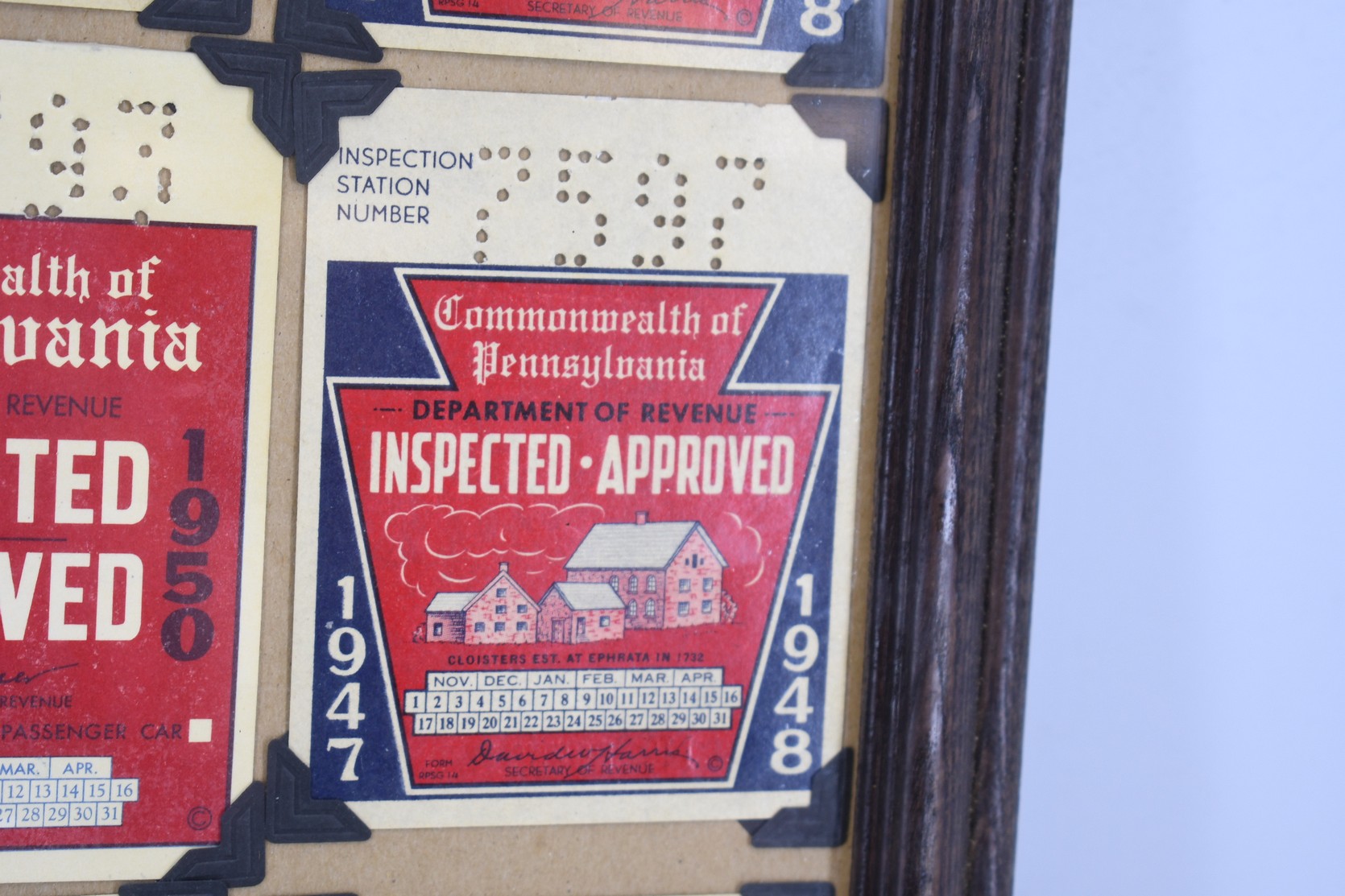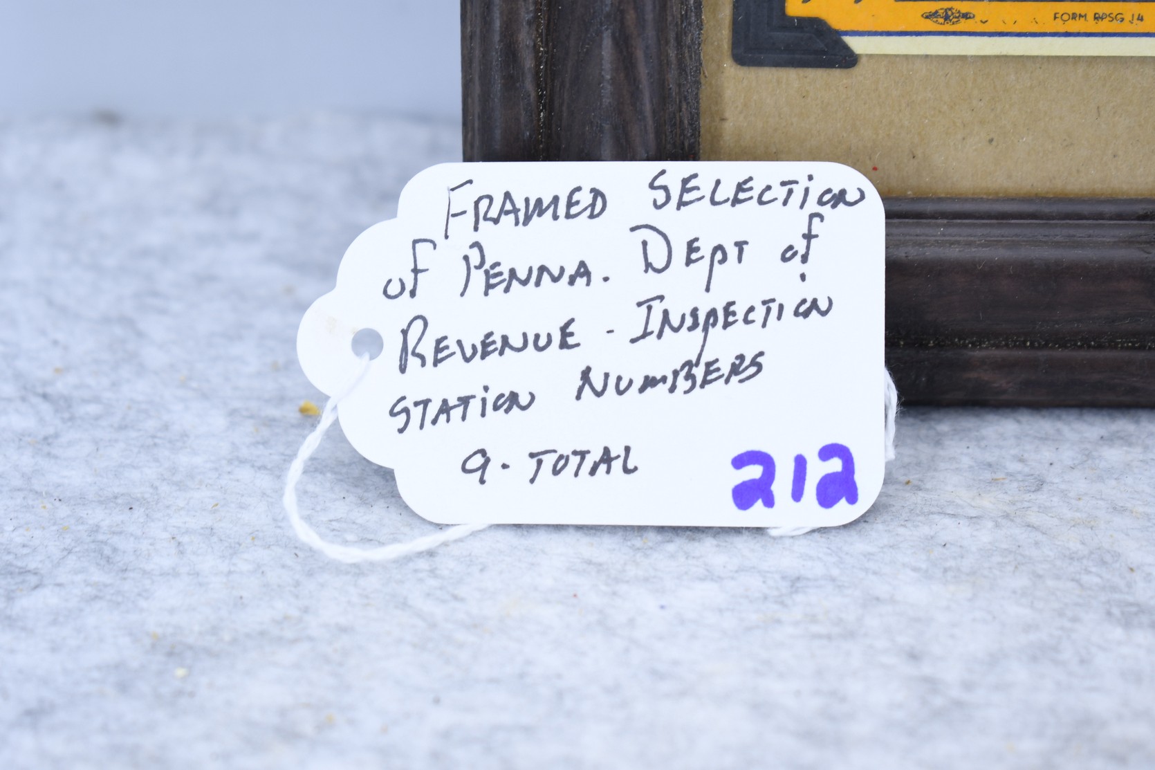 212. Unusual Framed Selection of Penna. Dept. of Revenue Inspection Station Numbers – Dating from 1942-43 through 1949-50 – 9 Total Items in Frame