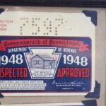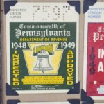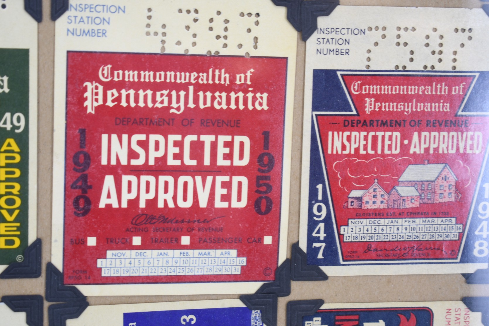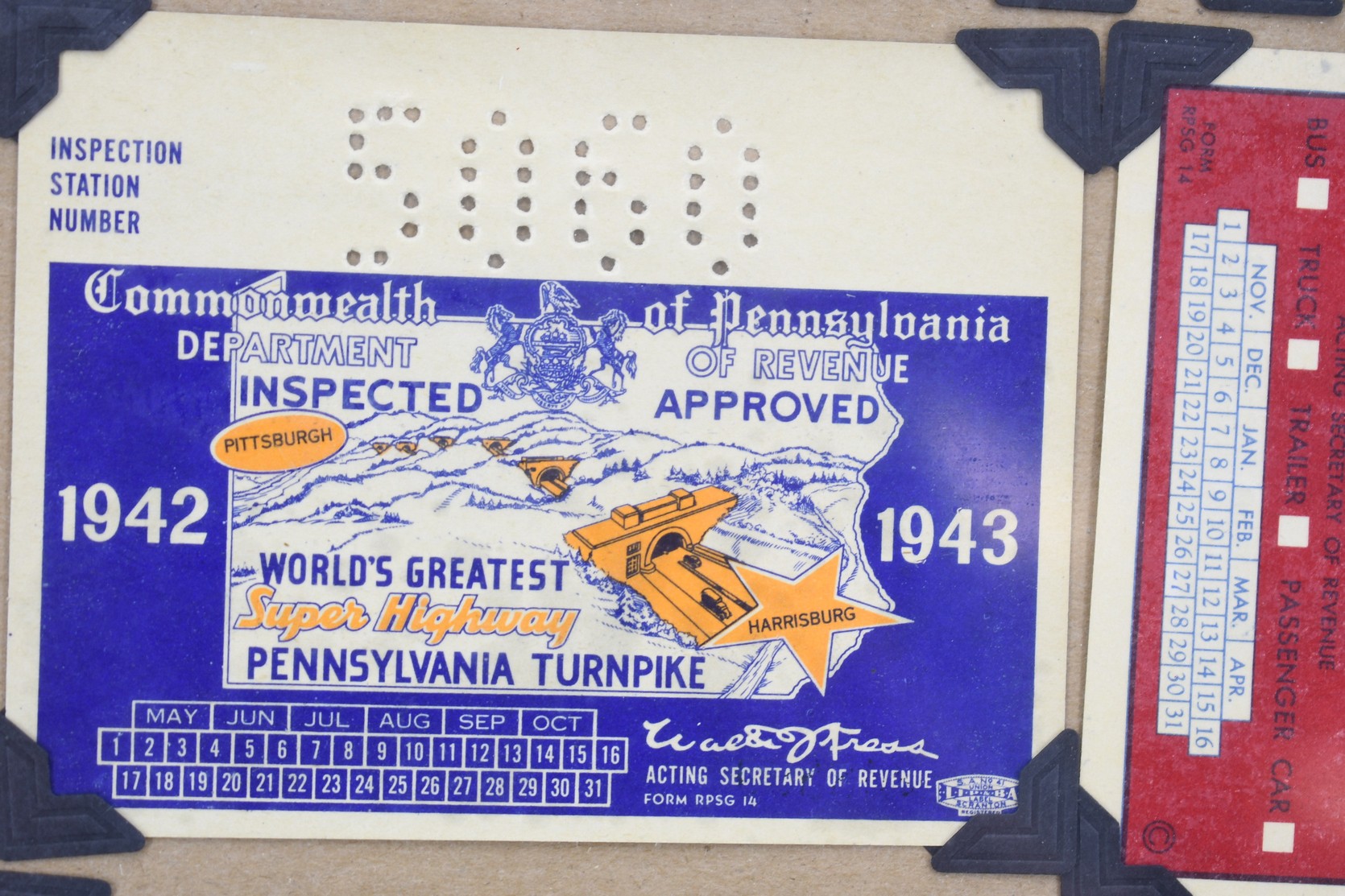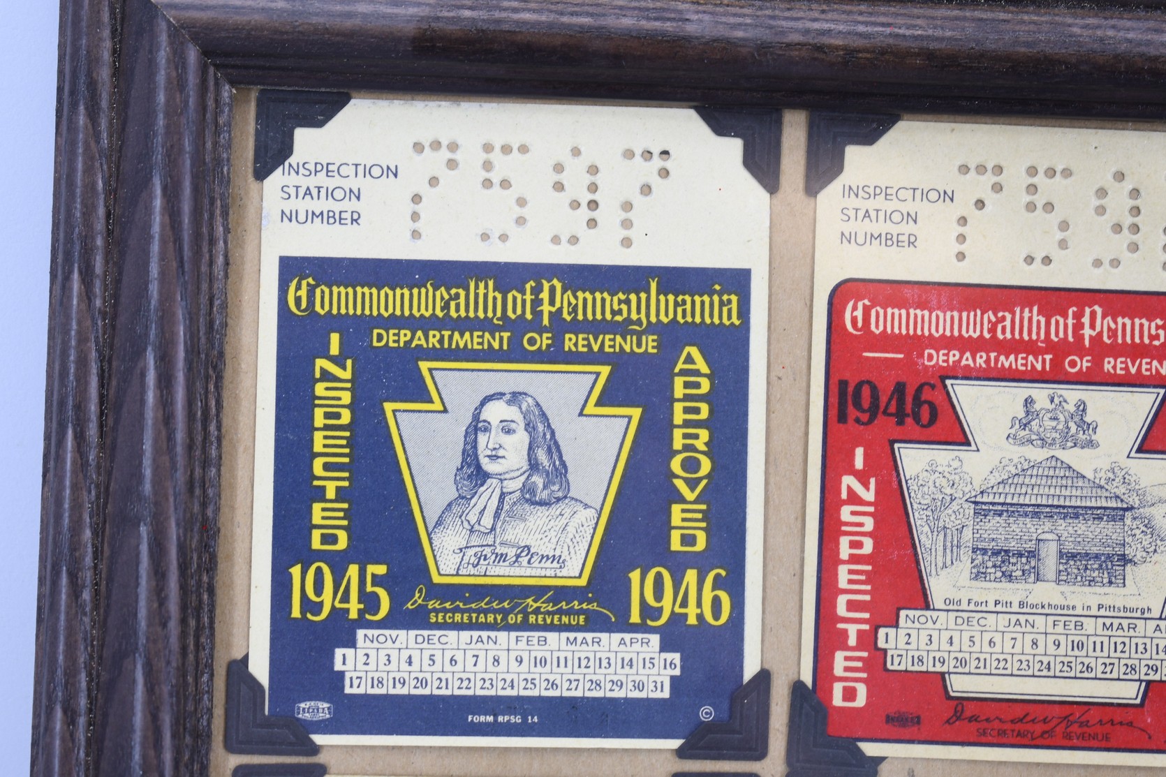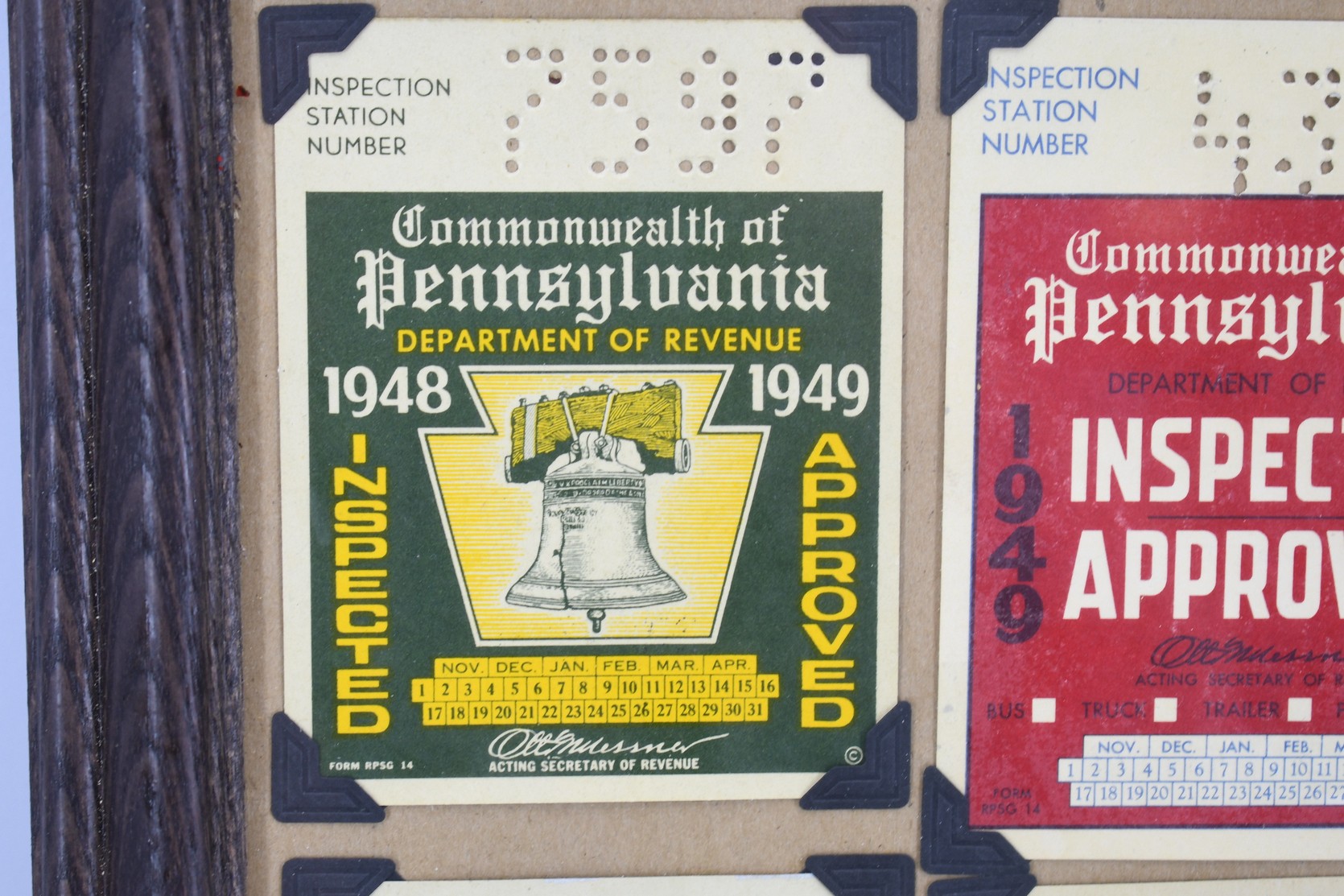 212. Unusual Framed Selection of Penna. Dept. of Revenue Inspection Station Numbers – Dating from 1942-43 through 1949-50 – 9 Total Items in Frame