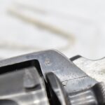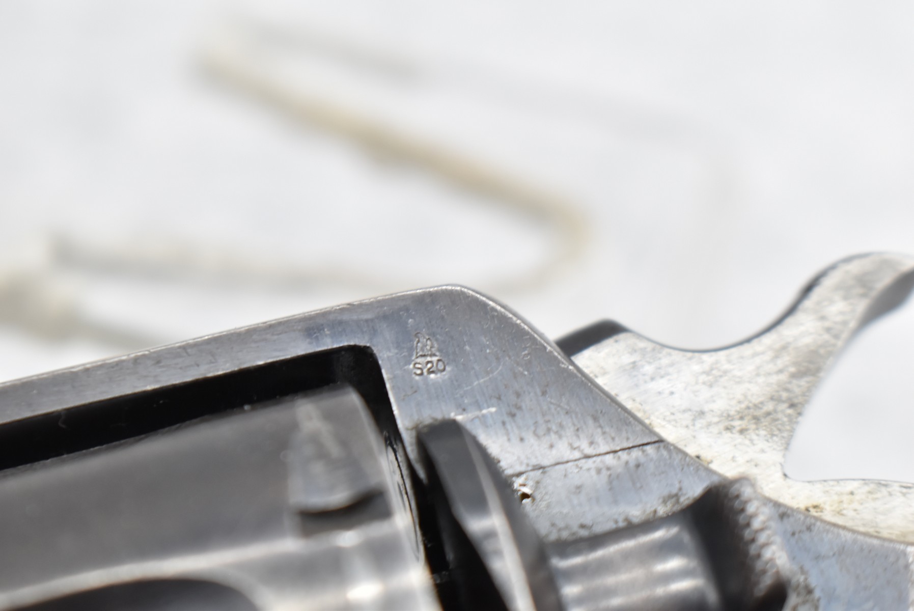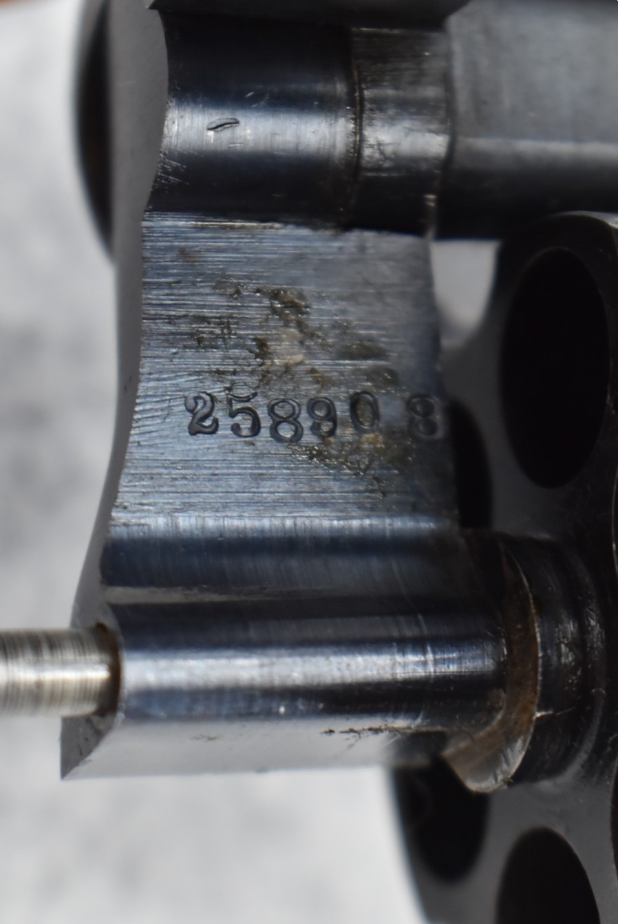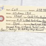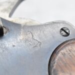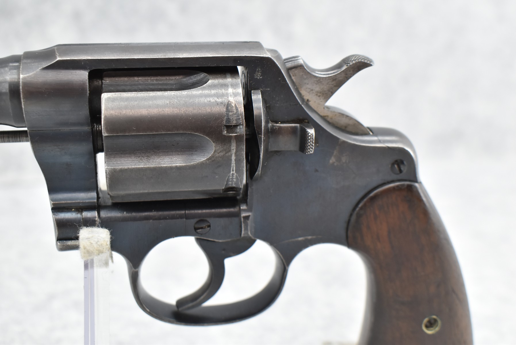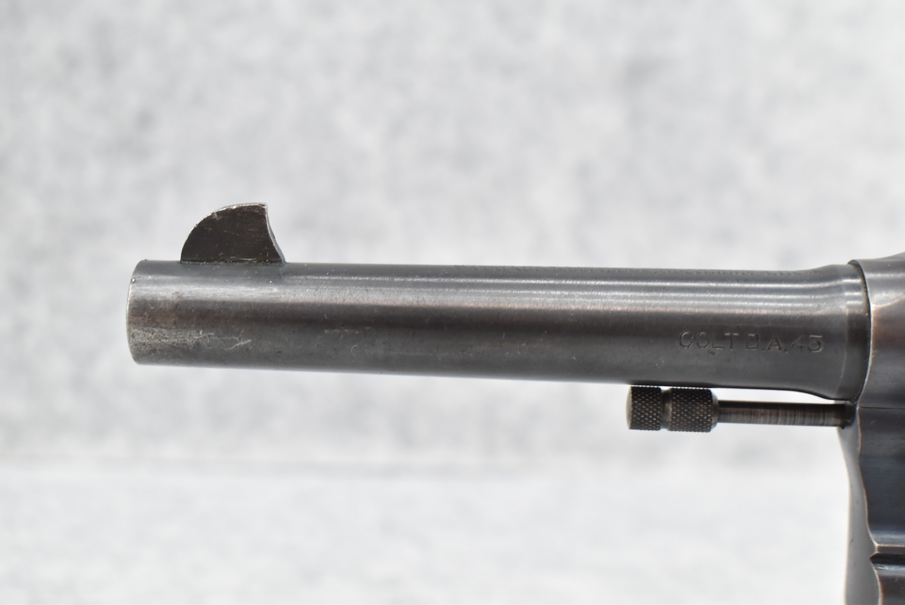213R. Colt – Mod. US Army 1917 – 45 ACP Cal. Double Action Revolver – w/5.5” Barrel w/Blade Front & Groove Rear Sights – Blued Finish – w/Smooth Wood Grips – w/Lanyard Ring – “US Property” Marked Under Barrel – Markings on Bottom of Butt Grip Strap Removed