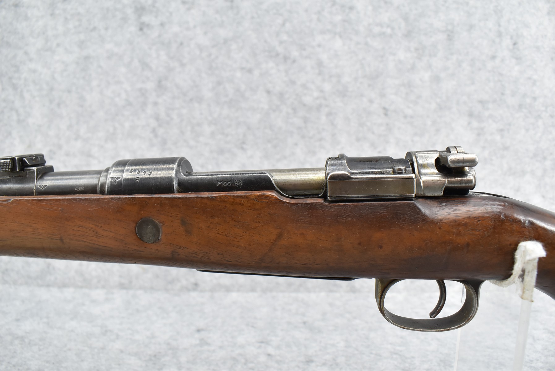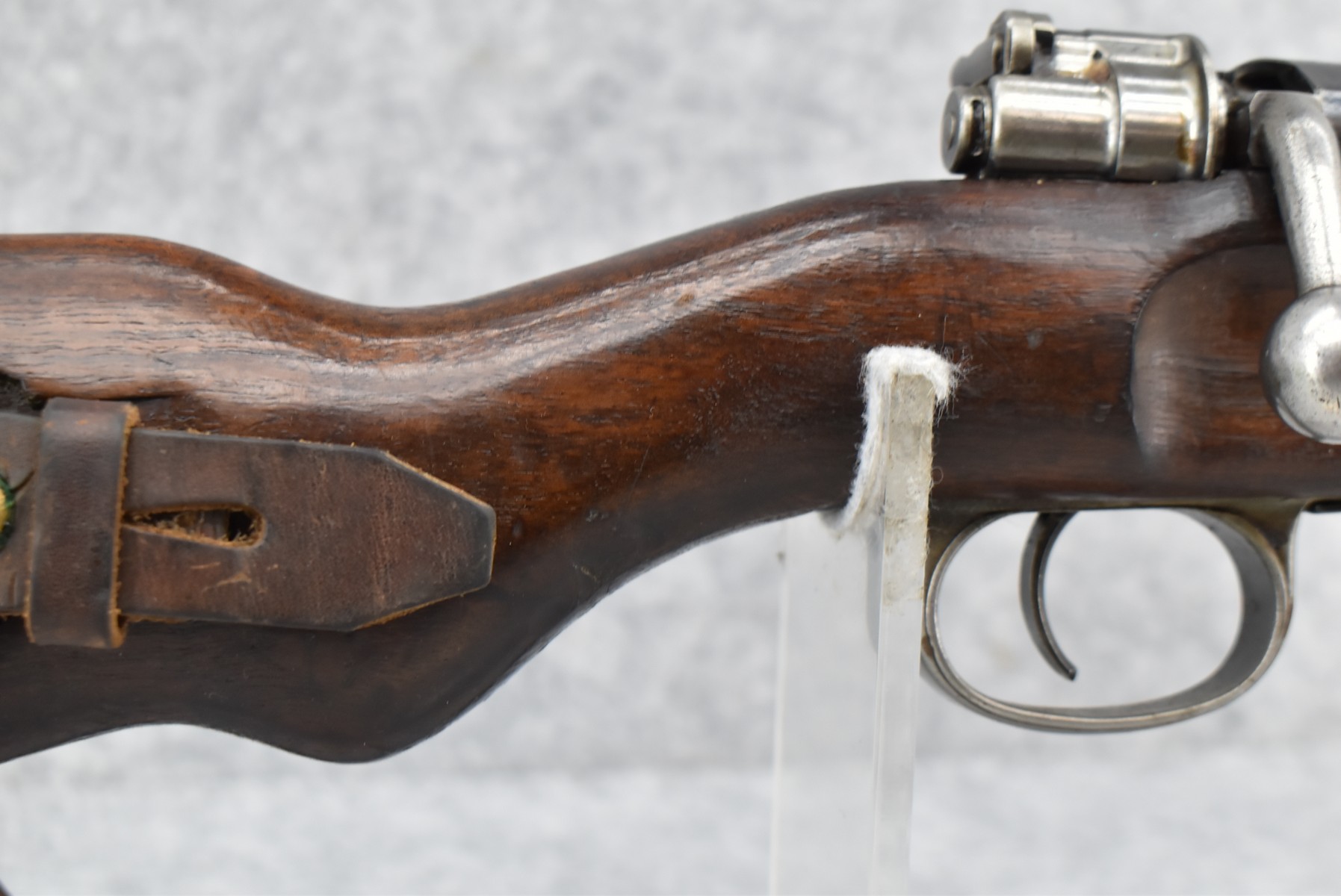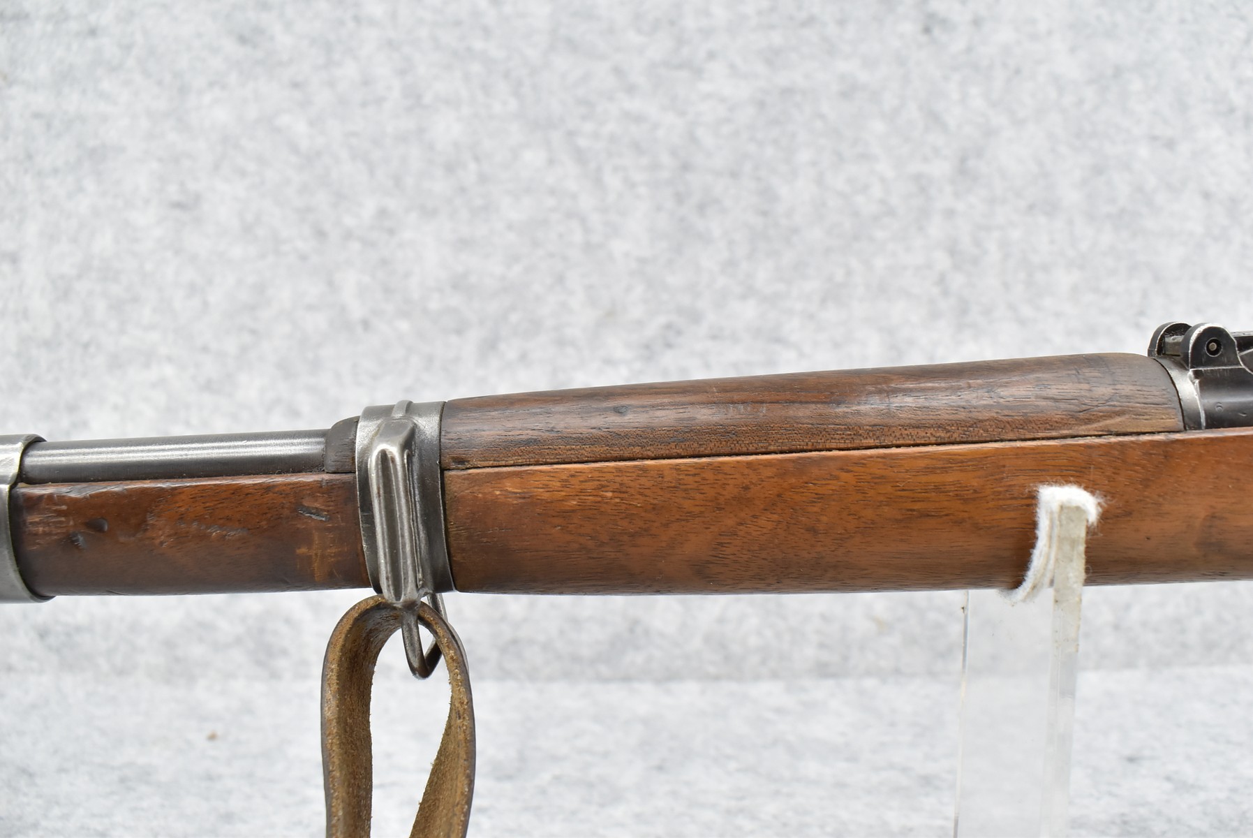 213R. Steyr-Daimler-Puch (German) – Mod. 98k – 8mm Cal. Bolt Action Rifle – w/23 ½” Barrel w/Hooded Front & Adj. Rear Sights – Military Finish – w/Pistol Grip Wood Stocks w/Metal Butt Plate – w/Leather Sling – Mfg. bnz – w/German Proof Markings
