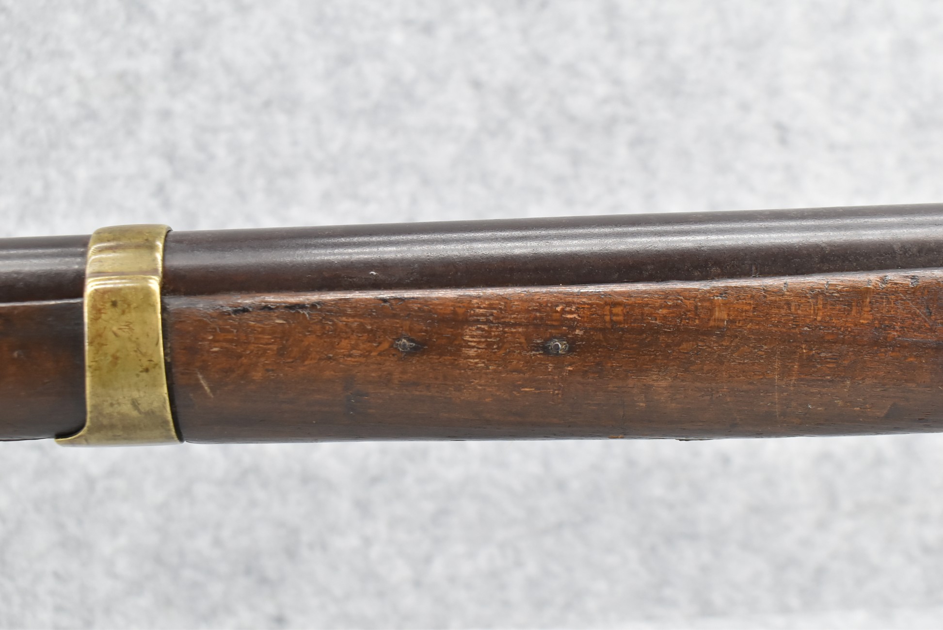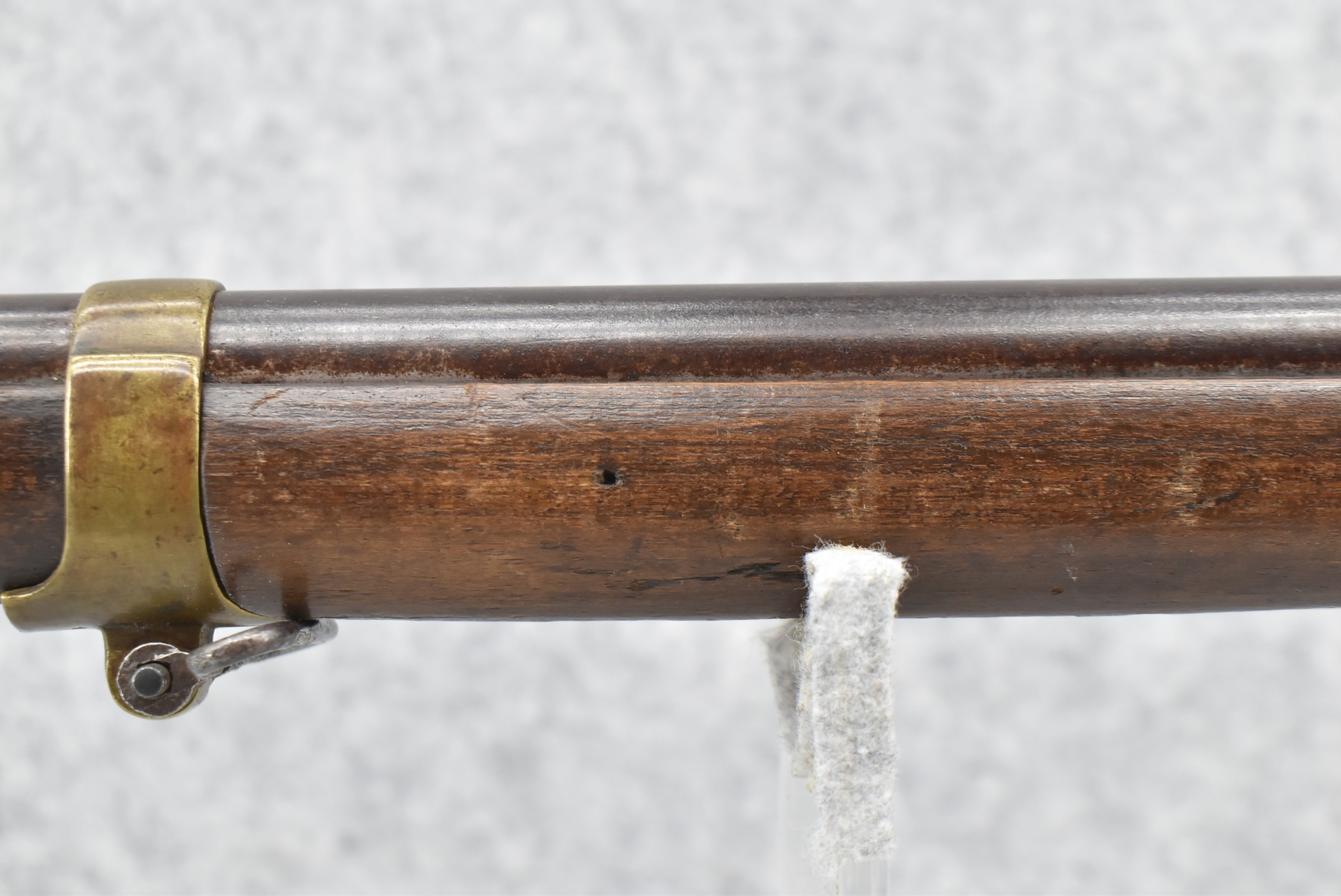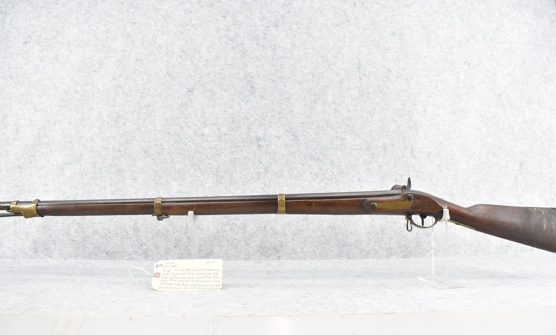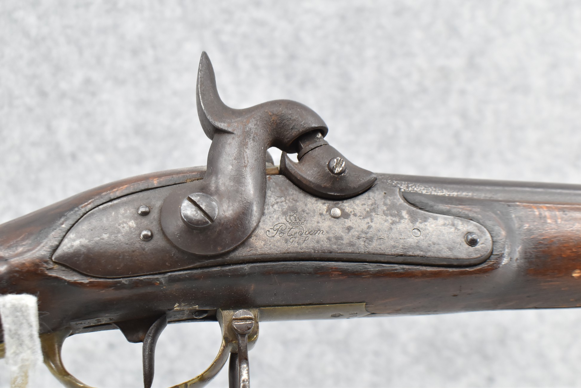 214. Prussian – Mod. 1809 – 72 Cal. Flintlock Rifle Converted to Percussion Musket – w/41 ¼” Barrel w/3 Brass Barrel Bands & Blade Front Sight on First Band – Brown Finish – w/Full Length Wood Stock w/Metal Butt Plate – w/Sling Loops – Lock Plated Marked “Potsdam” w/A Crown – “33” Stamped on Top of Stock & “2K.3.114.” on Top of Butt Plate w/Crown “33” Stamped on Trigger Guard & Brass Lock Strap on Left Side of Stock – Dated 1832
