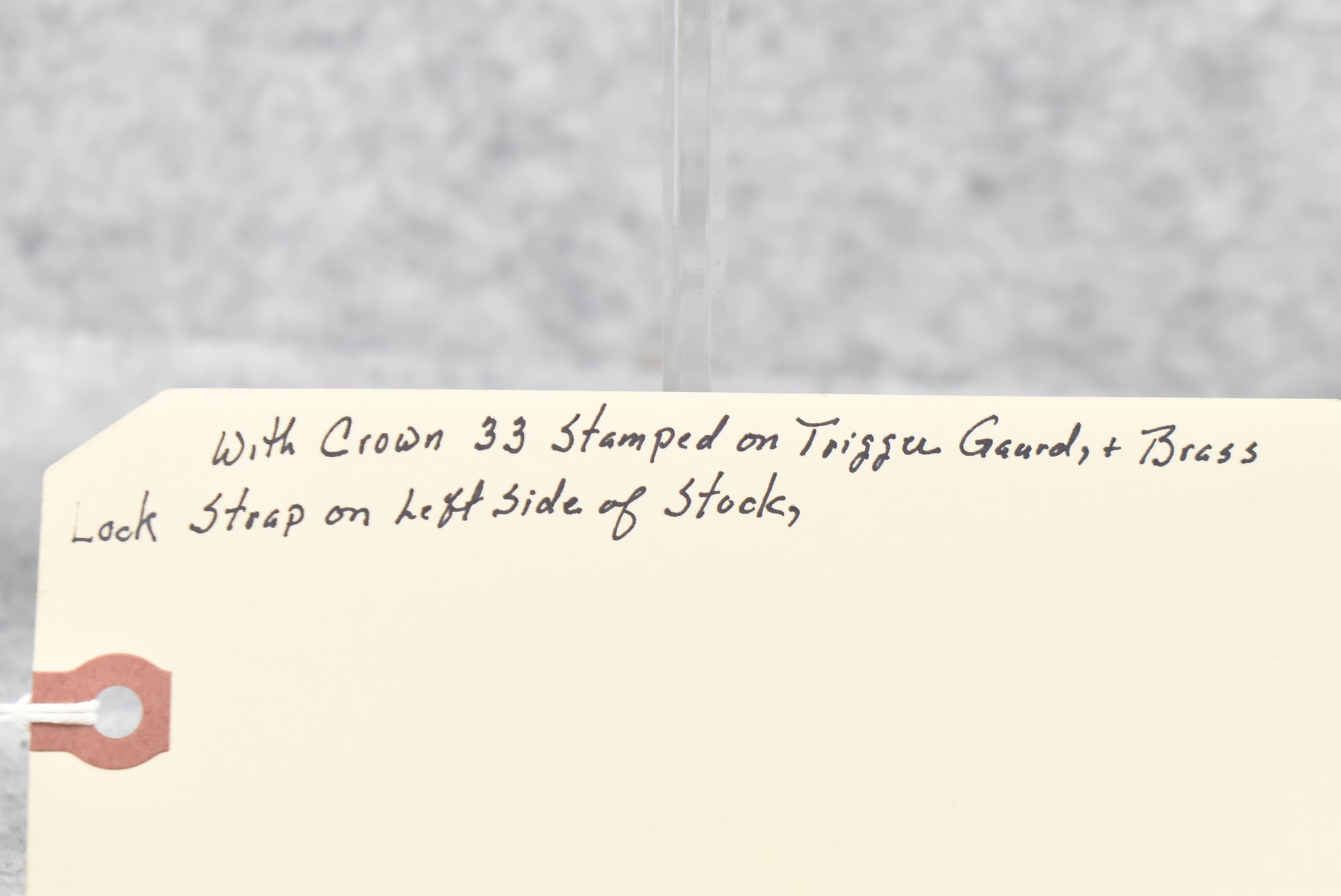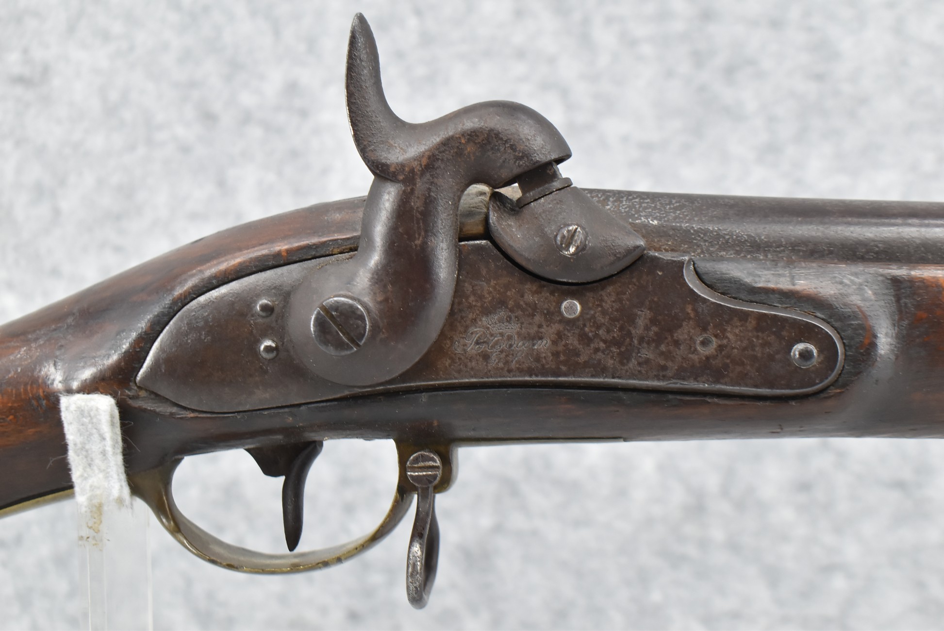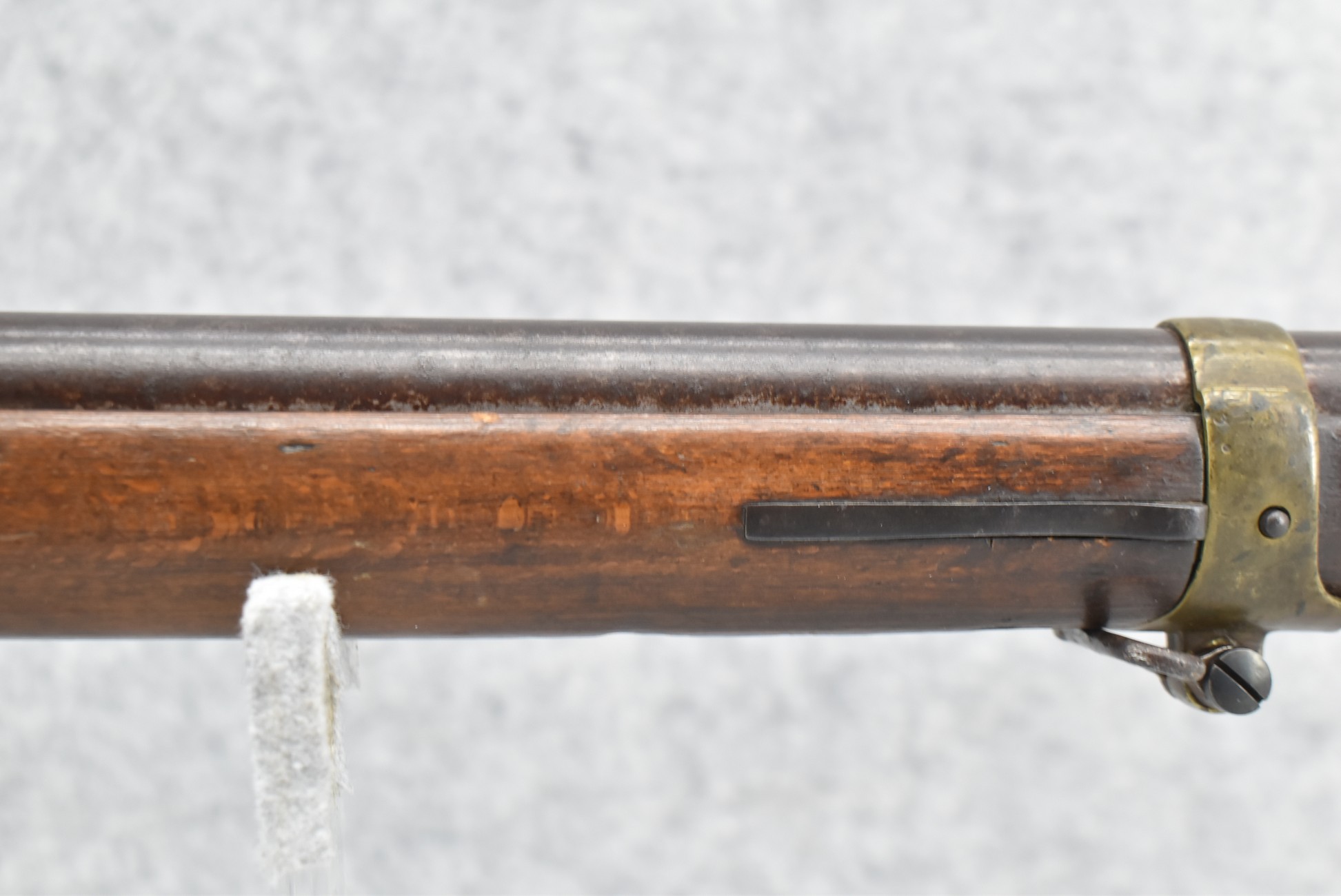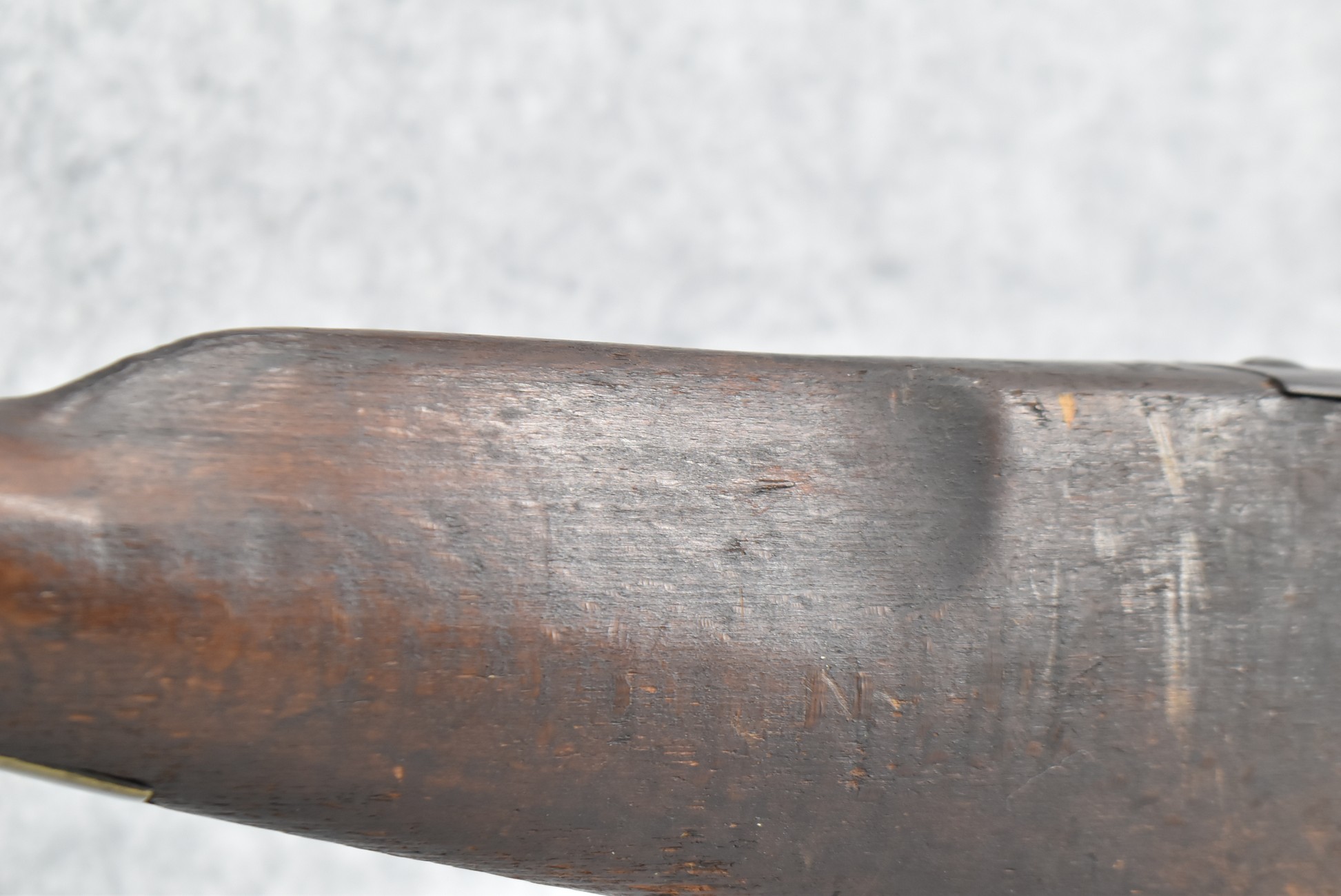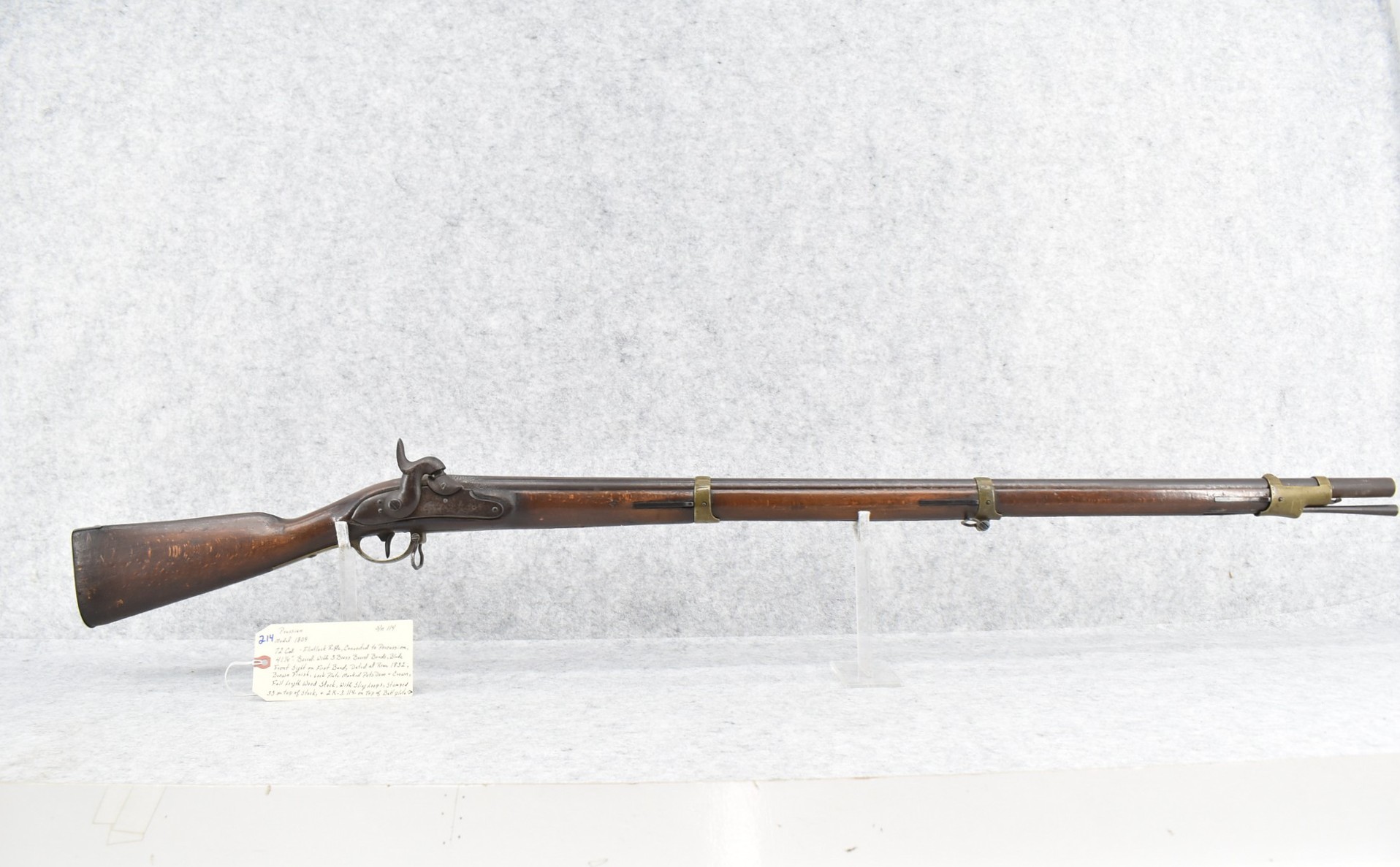 214. Prussian – Mod. 1809 – 72 Cal. Flintlock Rifle Converted to Percussion Musket – w/41 ¼” Barrel w/3 Brass Barrel Bands & Blade Front Sight on First Band – Brown Finish – w/Full Length Wood Stock w/Metal Butt Plate – w/Sling Loops – Lock Plated Marked “Potsdam” w/A Crown – “33” Stamped on Top of Stock & “2K.3.114.” on Top of Butt Plate w/Crown “33” Stamped on Trigger Guard & Brass Lock Strap on Left Side of Stock – Dated 1832