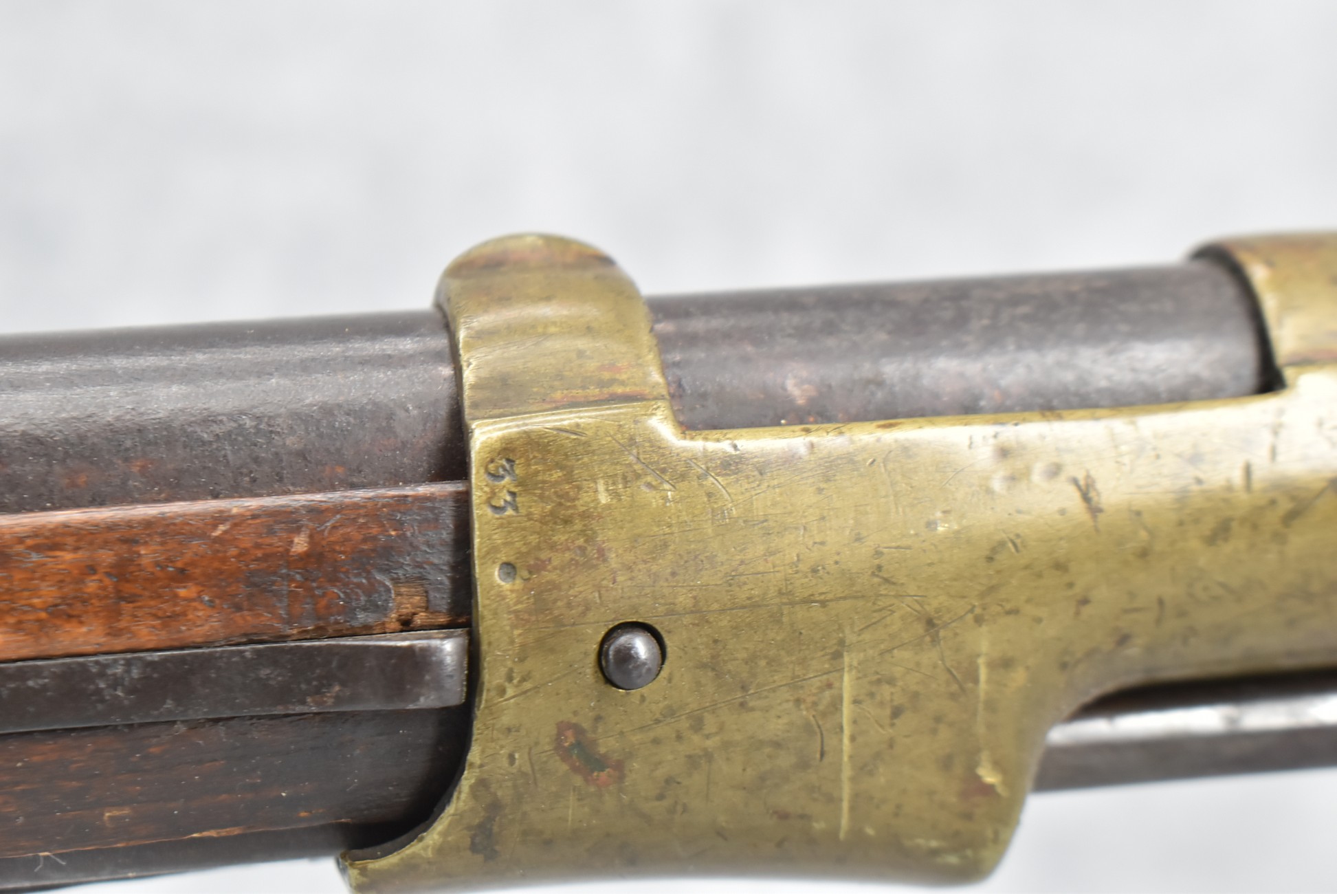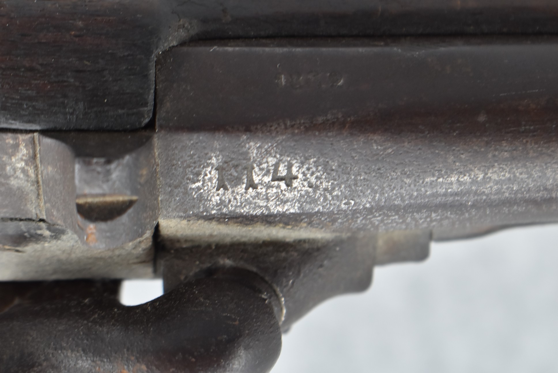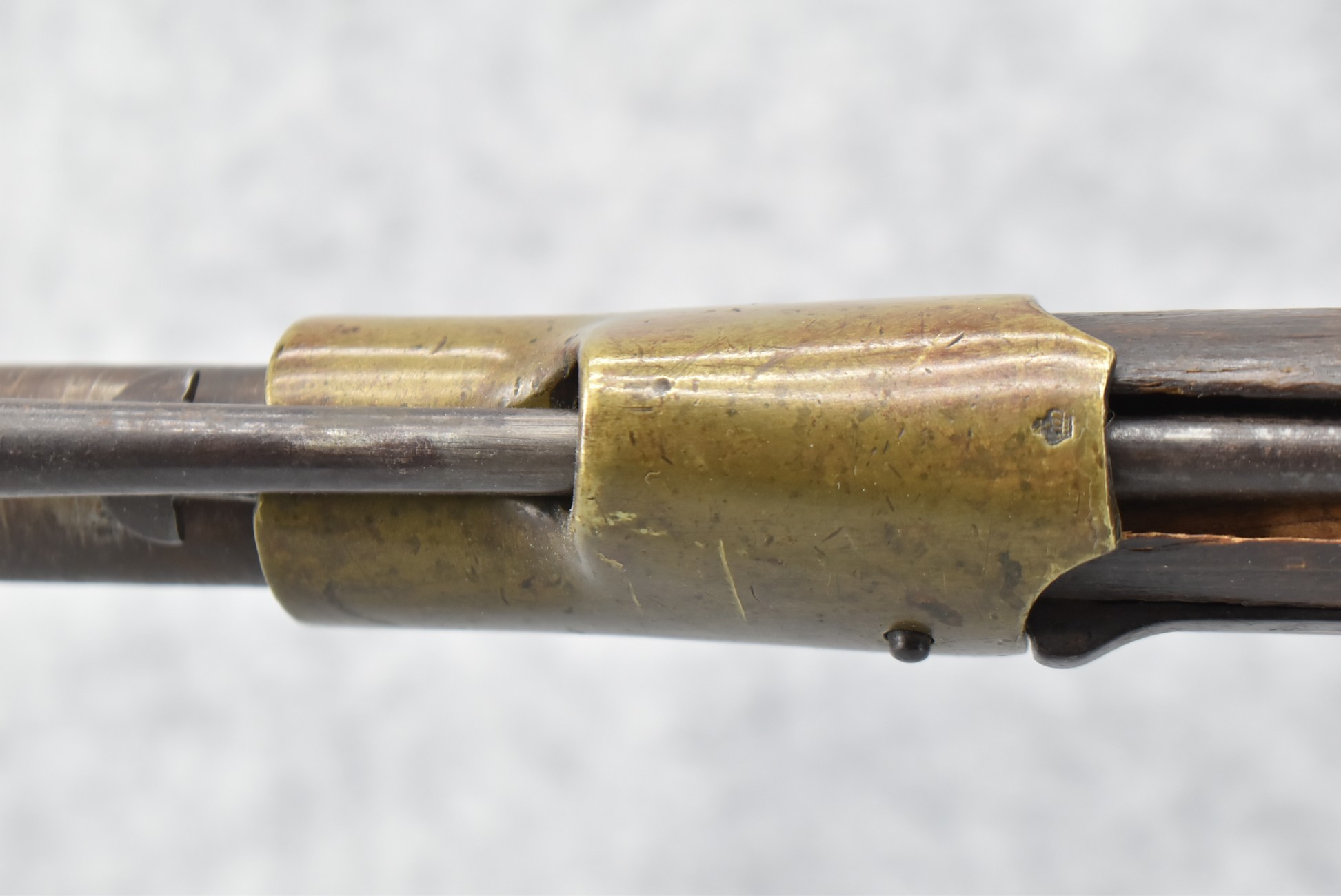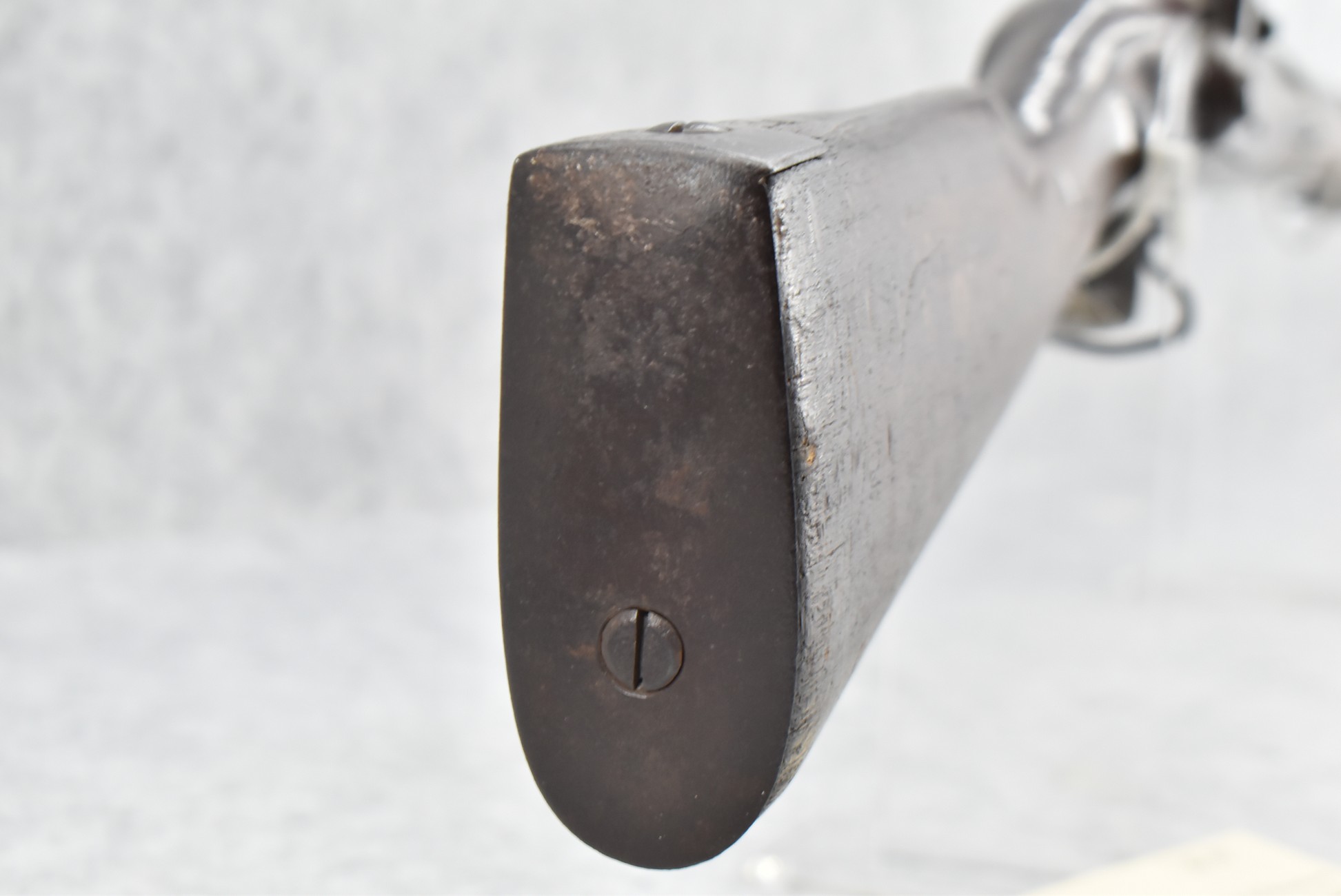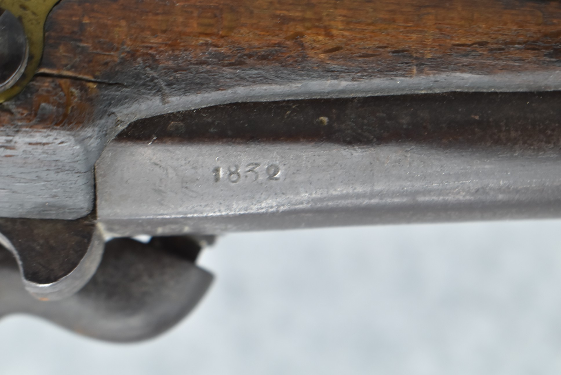 214. Prussian – Mod. 1809 – 72 Cal. Flintlock Rifle Converted to Percussion Musket – w/41 ¼” Barrel w/3 Brass Barrel Bands & Blade Front Sight on First Band – Brown Finish – w/Full Length Wood Stock w/Metal Butt Plate – w/Sling Loops – Lock Plated Marked “Potsdam” w/A Crown – “33” Stamped on Top of Stock & “2K.3.114.” on Top of Butt Plate w/Crown “33” Stamped on Trigger Guard & Brass Lock Strap on Left Side of Stock – Dated 1832