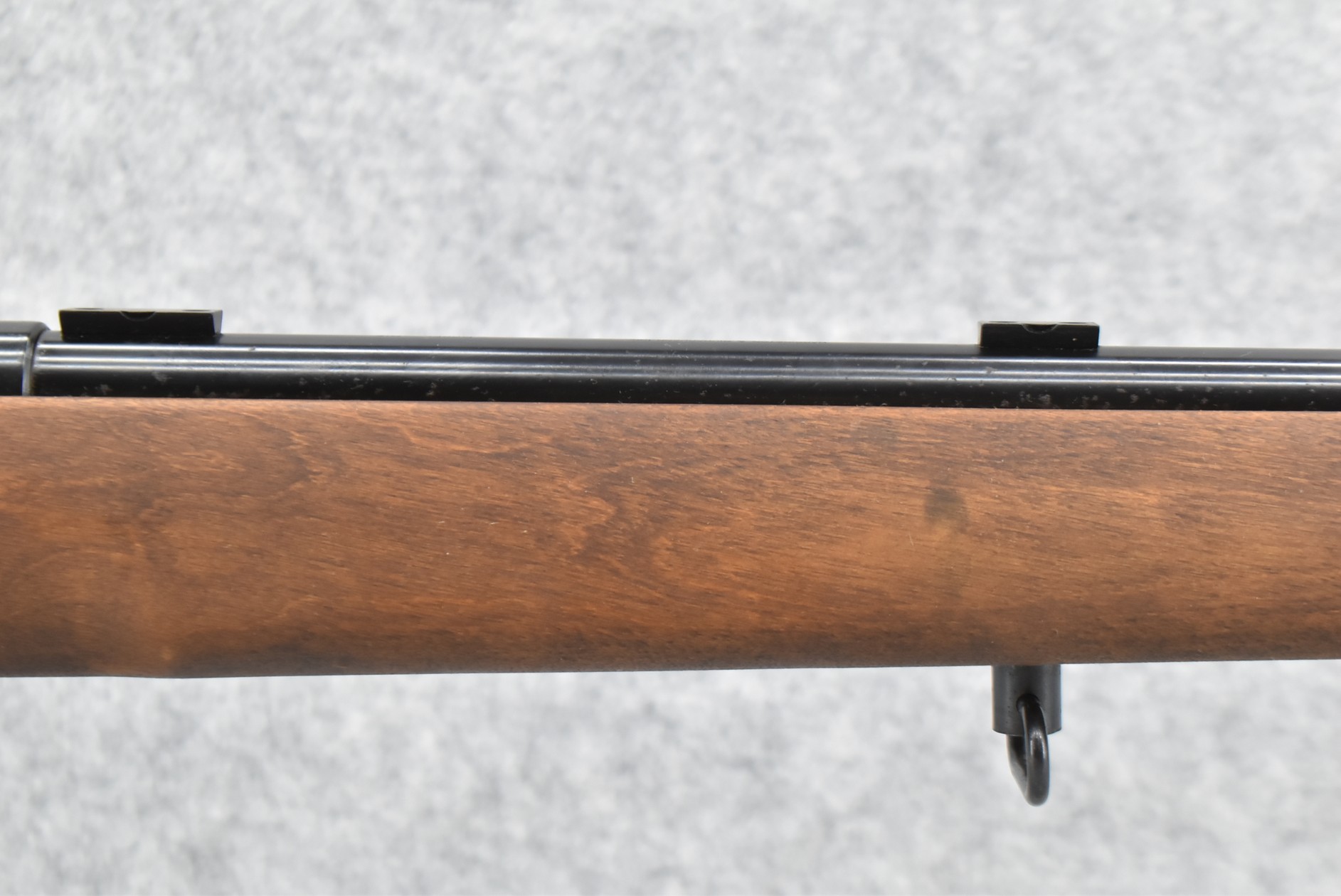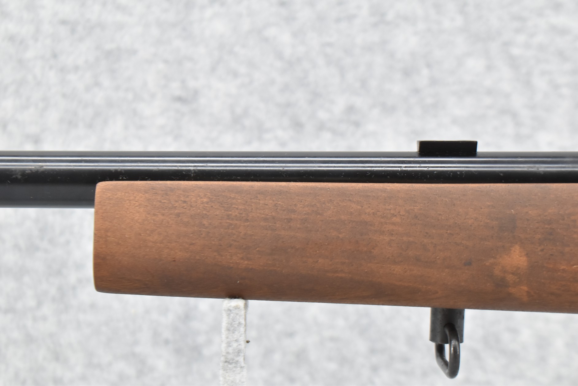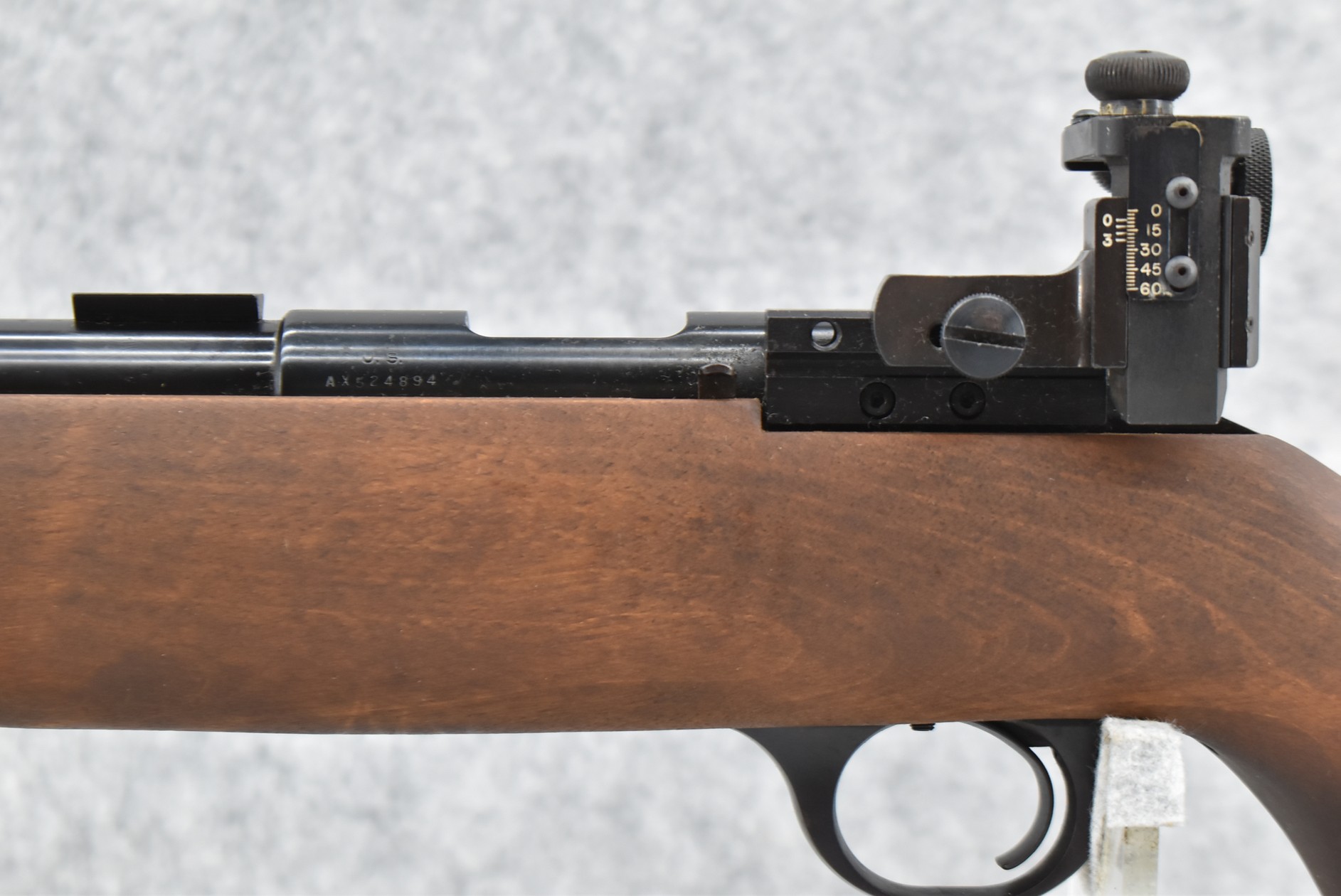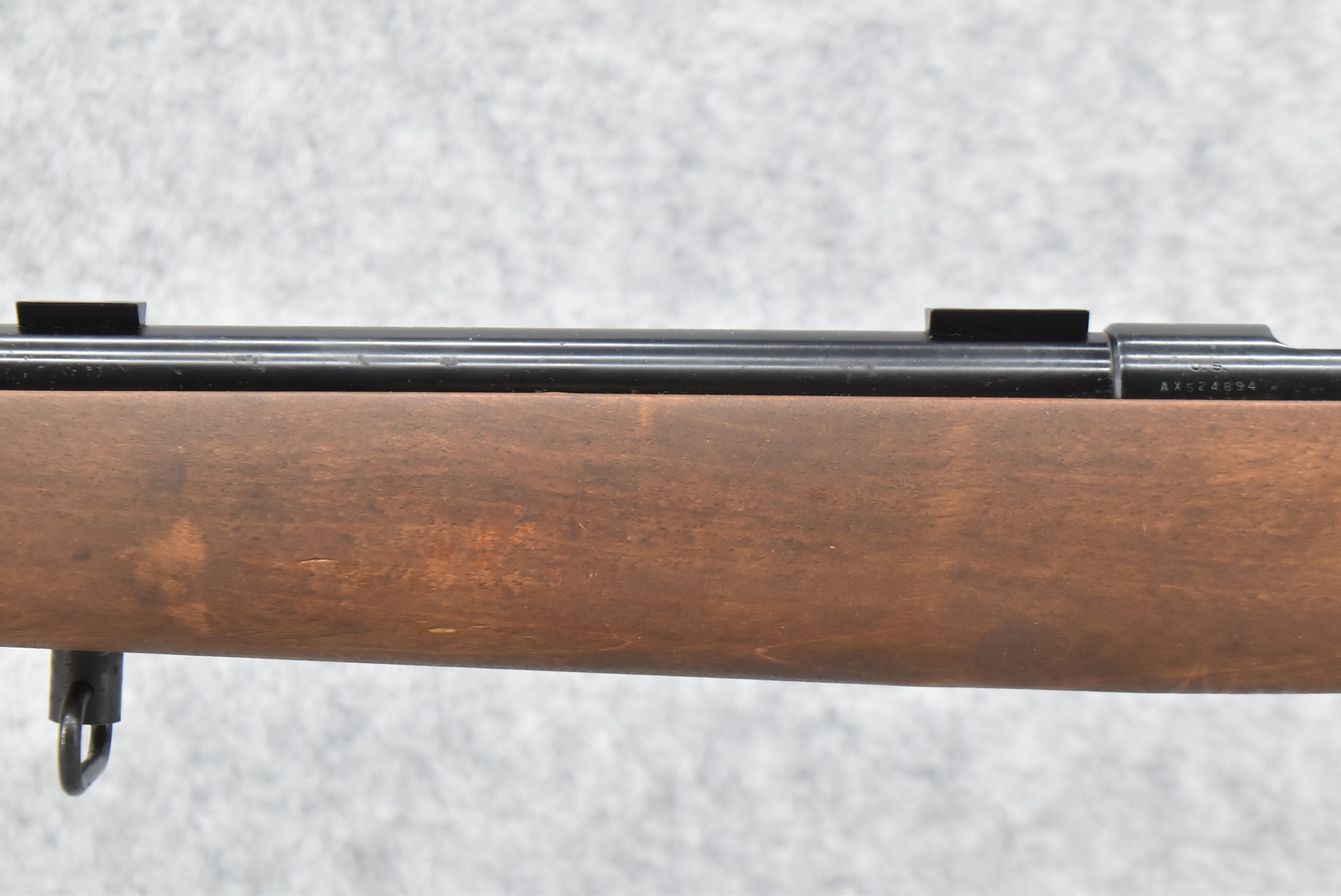 216R. H. & R. – Mod. M12 – U.S. Stamped (JROTC) – 22 Long Rifle Cal. Single Shot Bolt Action Rifle – w/28” Heavy Barrel w/Redfield Olympic Front Globe & Redfield Palma Match Rear Receiver Peep Sights – Blued Finish – w/Target Pistol Grip Wood Stock w/Palm Stop Rail & Swivels – w/2pc. Scope Blocks – Gun Weighs 11 lbs. – Mfg. 1981-1986