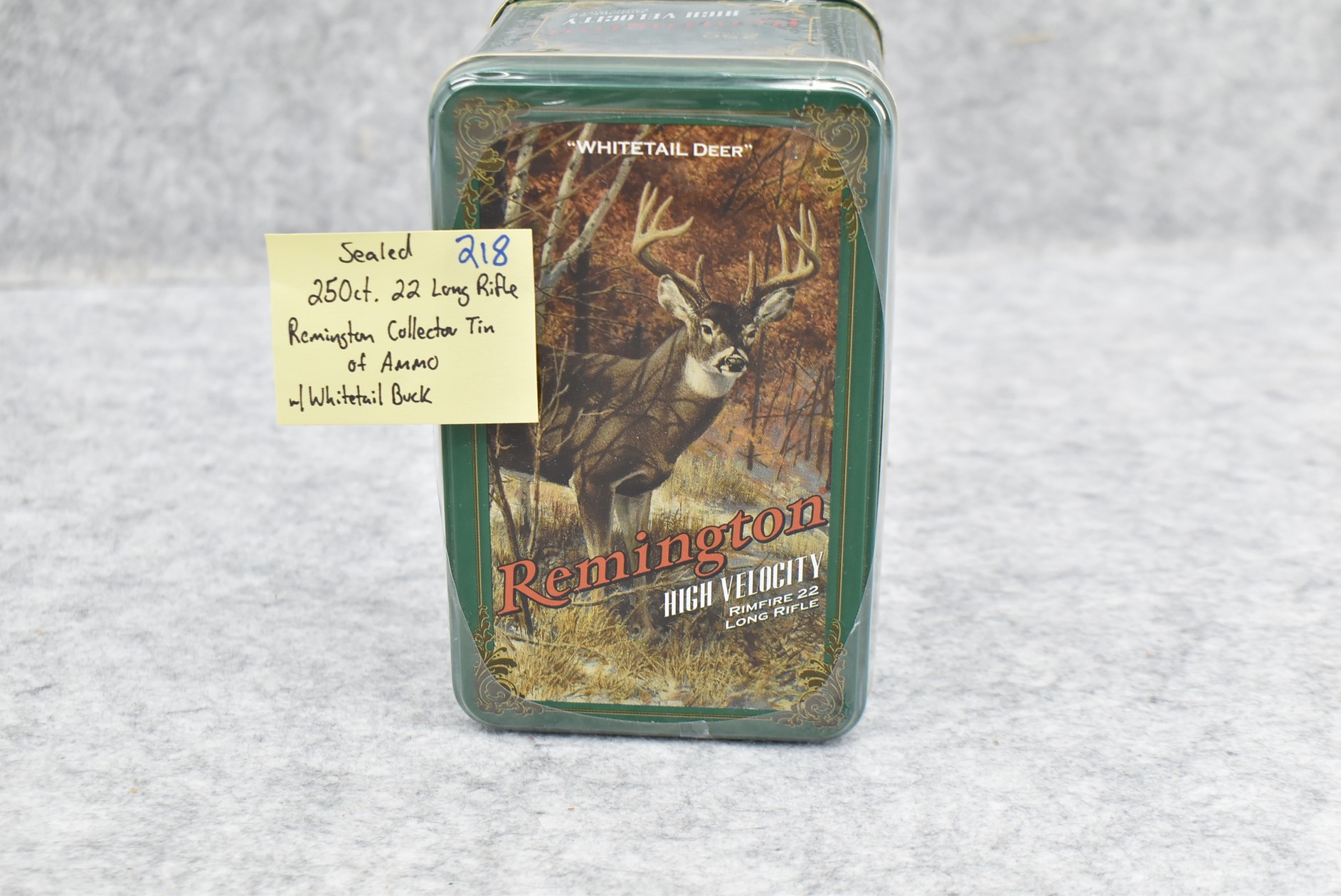 218. Sealed 250ct. 22 Long Rifle Remington Collector Tin of Ammo w/Whitetail Buck