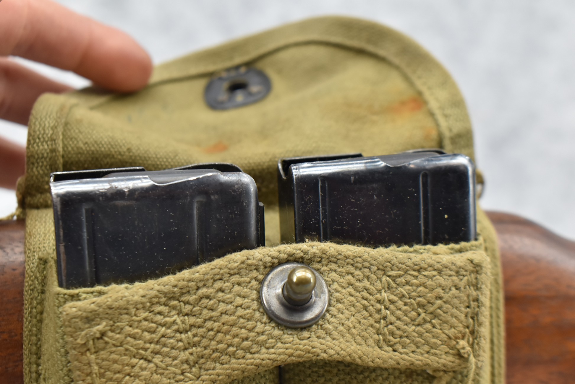 221R.     Saginaw (Grand Rapids, MI) – Mod. M1 Carbine – 30 Carbine Cal. Semi-Auto Rifle – w/18” Buffalo Arms 9-43 Dated Barrel w/Blade Front & Flip Rear Adj. Sights – Parkerized Finish – w/Pistol Grip Full Wood Stock w/Factory Metal Butt Plate – w/Sling & Oiler – w/Three 15Rd Magazines w/U.S. 1943 Dated Mag. Pouch