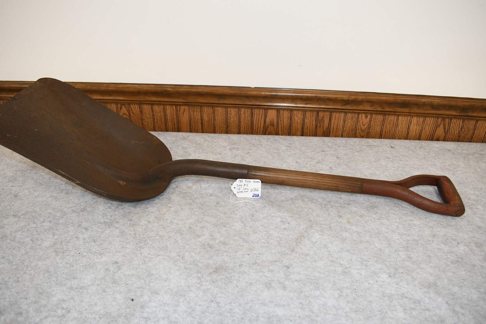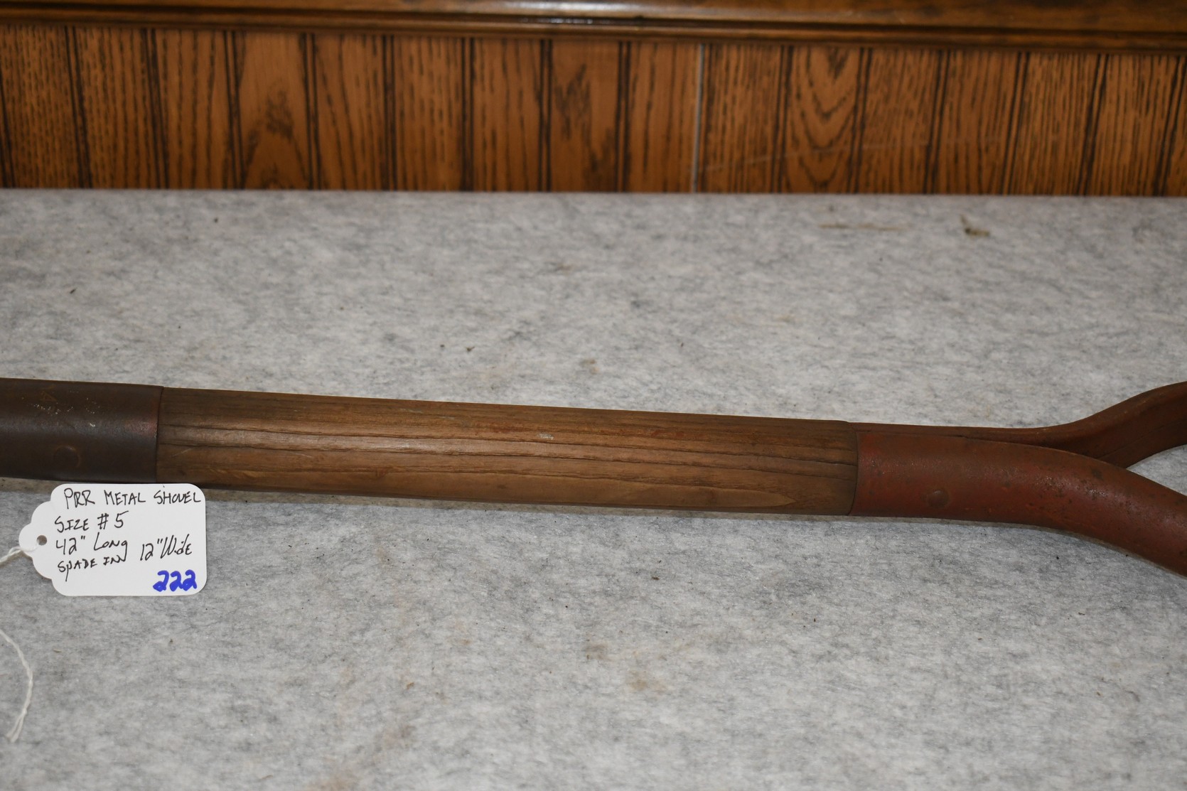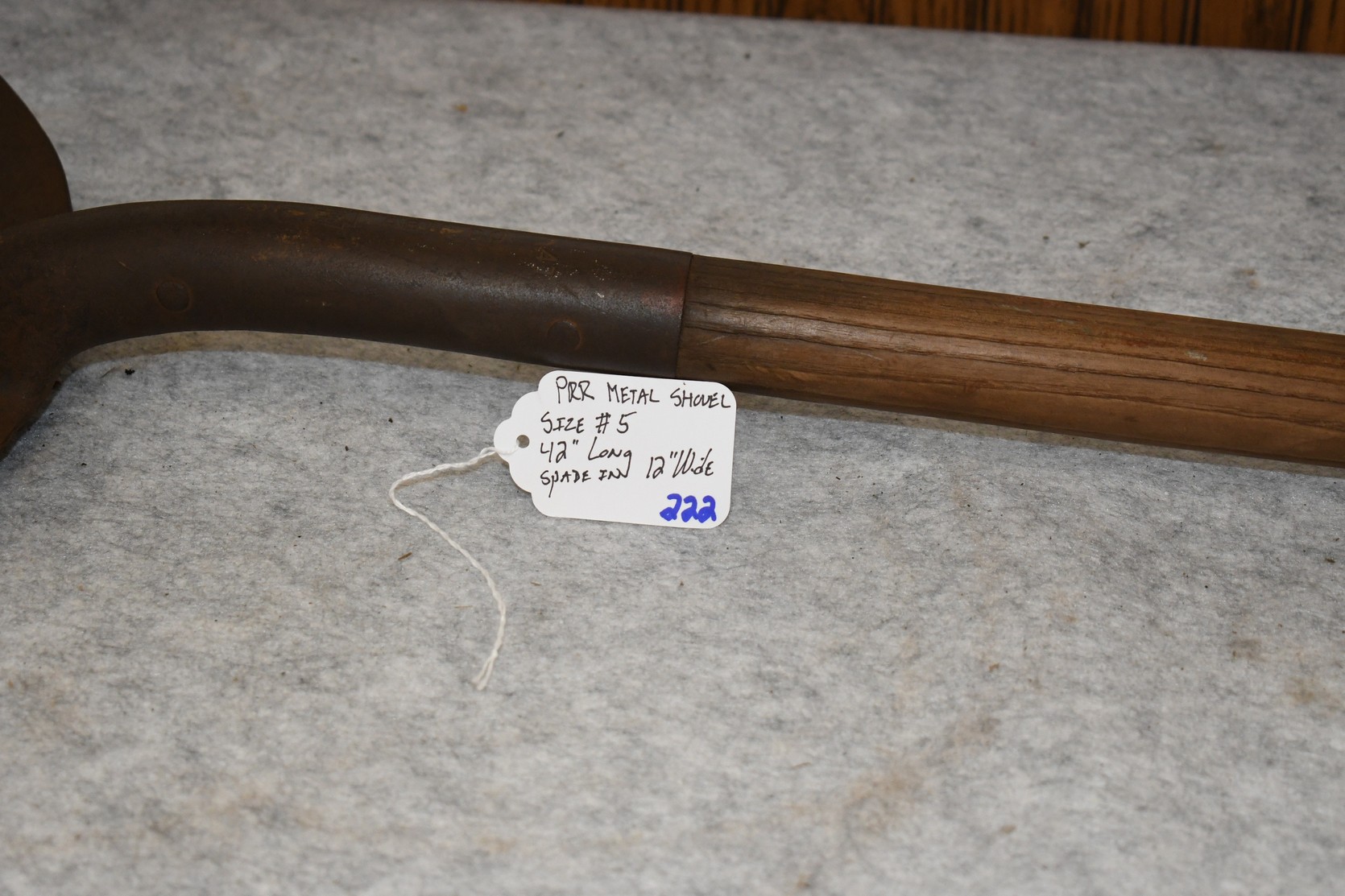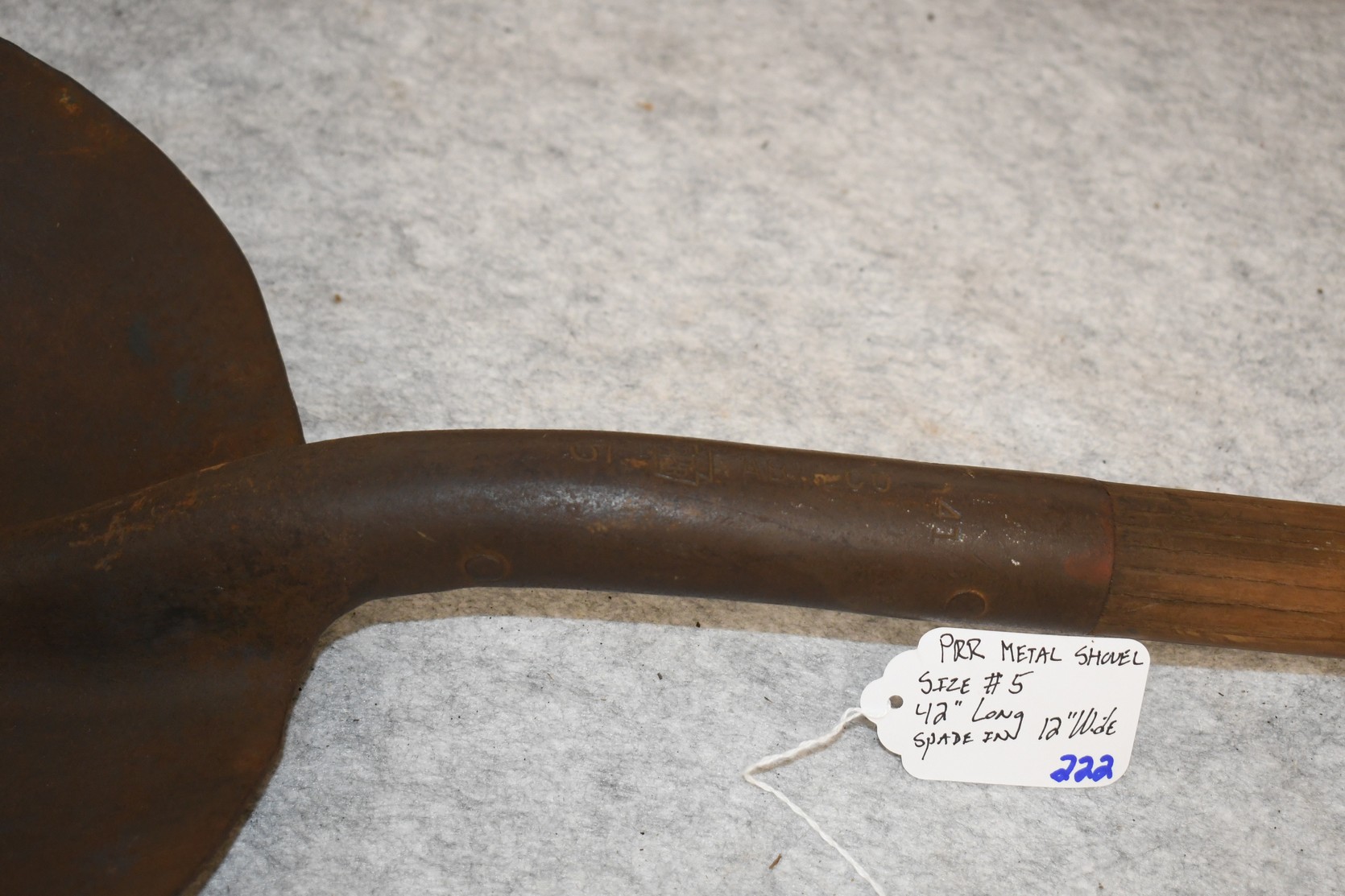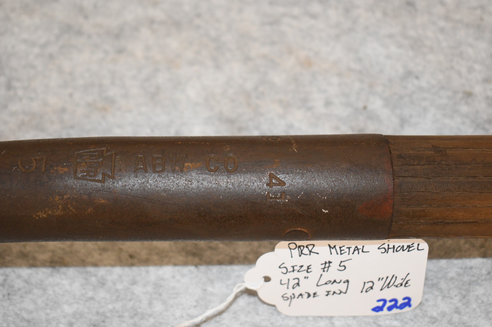 222. P.R.R. Metal Shovel – Size #5 – Shovel is 42” Long – Spade is 12” Wide – Will Not Ship, Pickup Only or You Must Arrange Your Own Shipping!