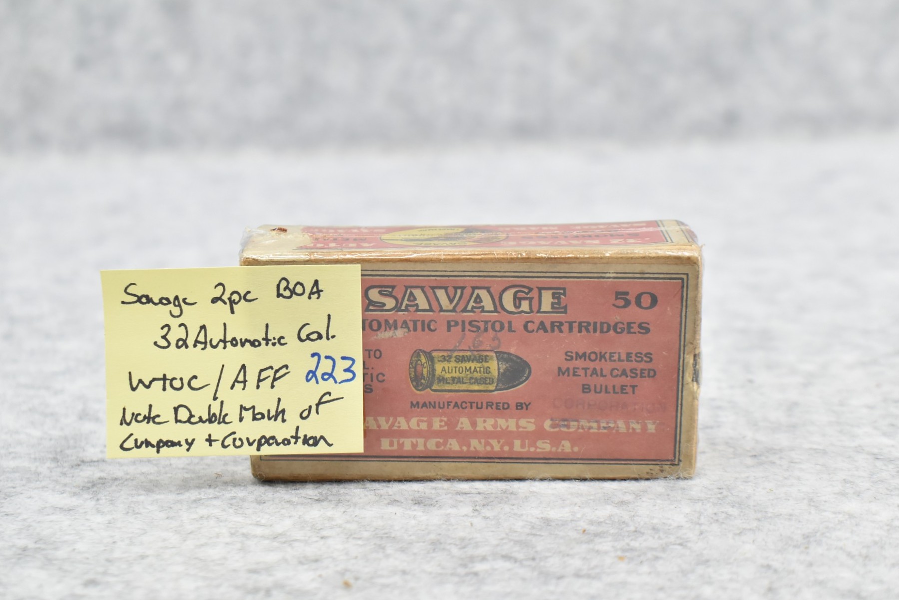 223. Savage – 2pc. BOA 32 Automatic Cal. – AFF – WTOC – Note: Double Mark of Company & Corporation