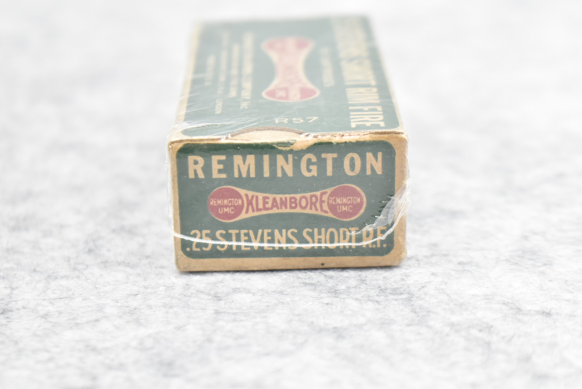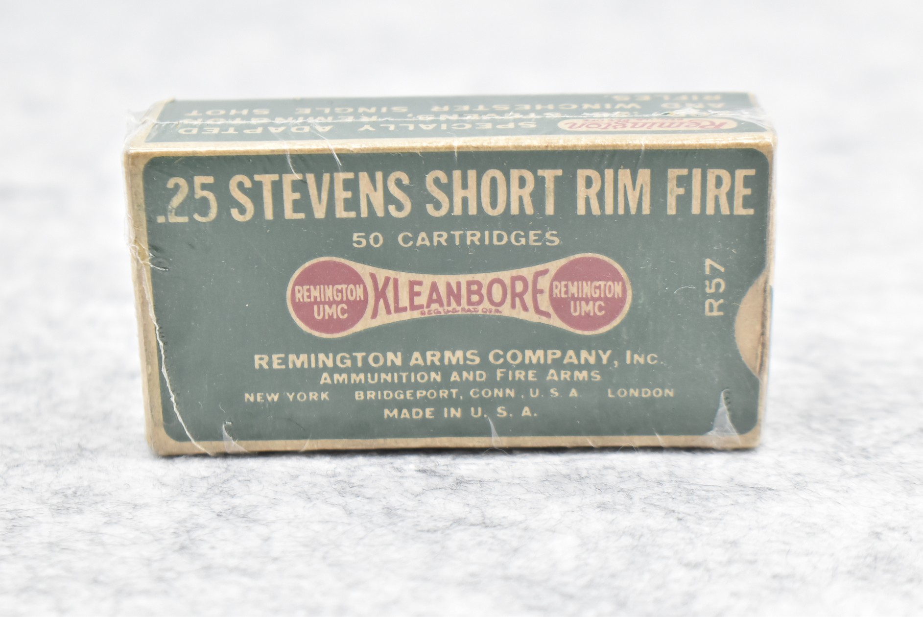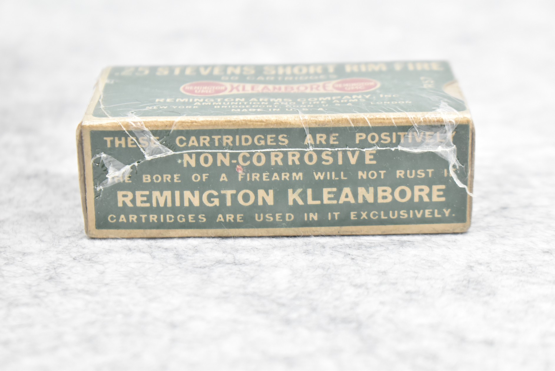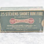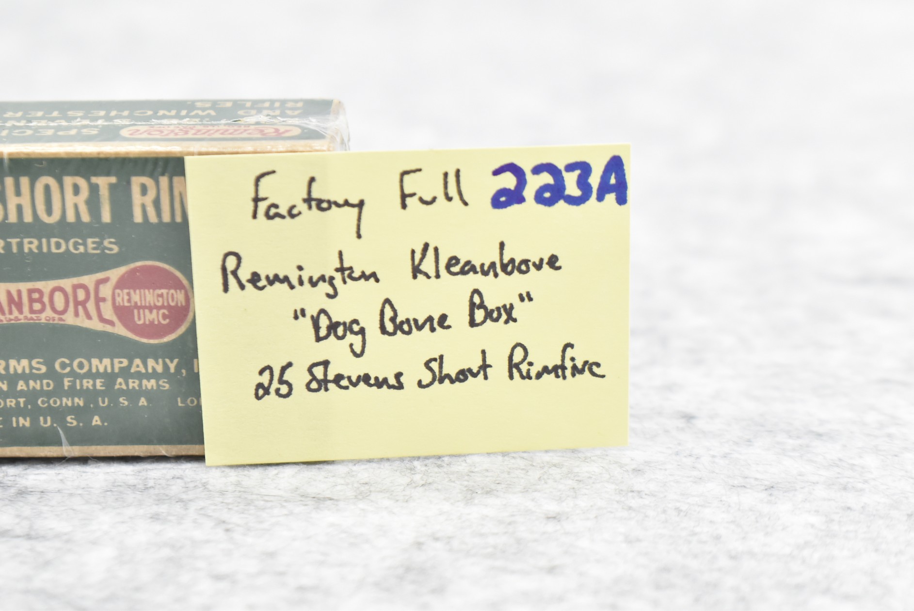 223A.  Remington – Kleanbore 25 Stevens Short Rimfire Cal. “Dog Bone Box” BOA – FF