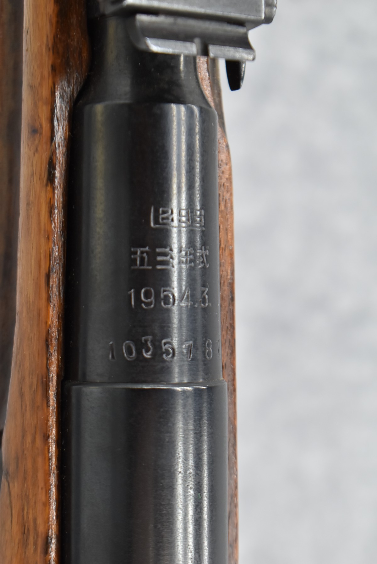 223R. Chinese – Type 53 – 7.62x54R Cal. Bolt Action Rifle – w/20 ¼” Barrel w/Hooded Front & Adj. Rear Sights – Blued Finish – w/Straight Grip Wood Stocks w/Metal Butt Plate – w/Folding Spike Bayonet – w/Nylon Sling – No Cleaning Rod – Import Marked