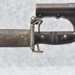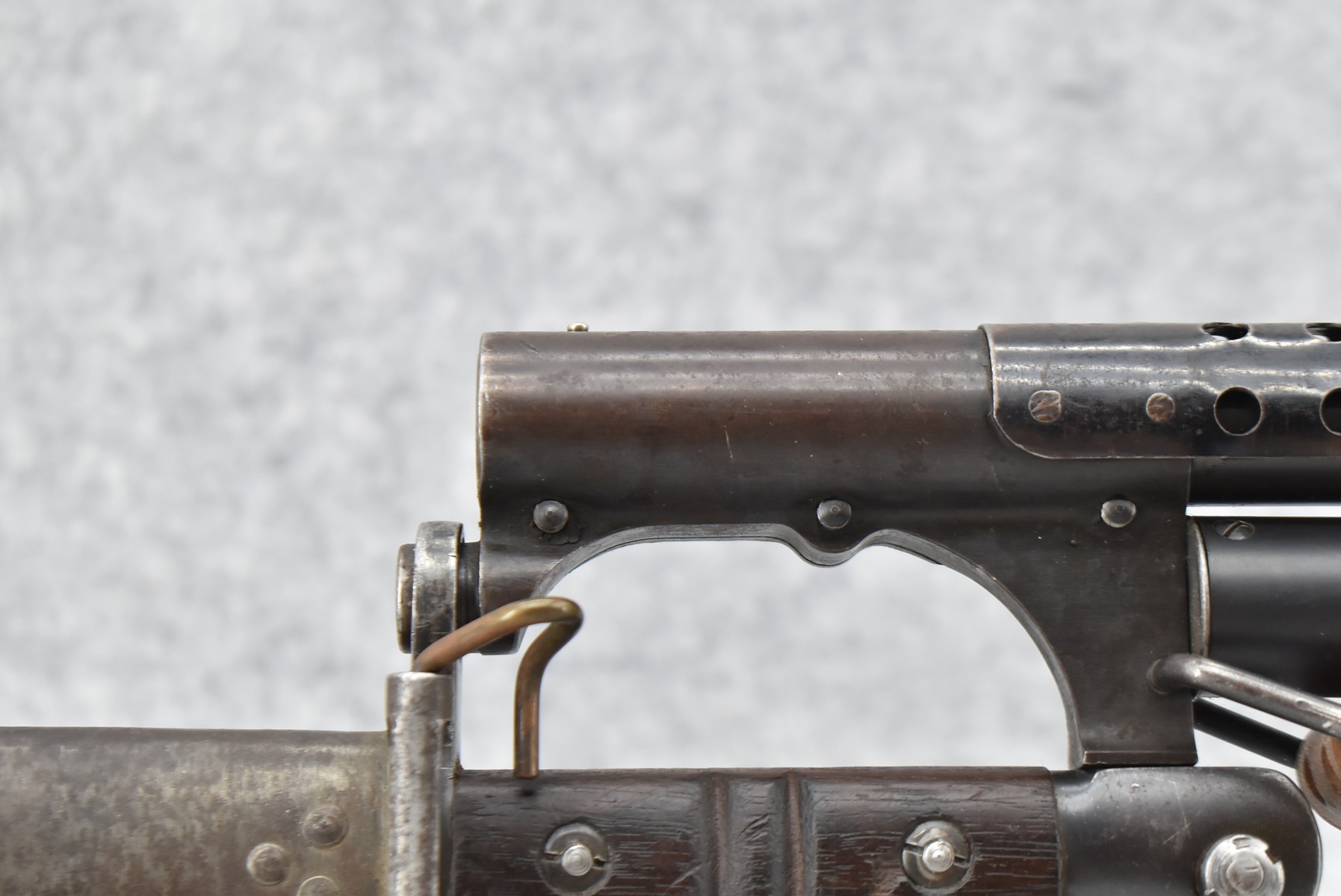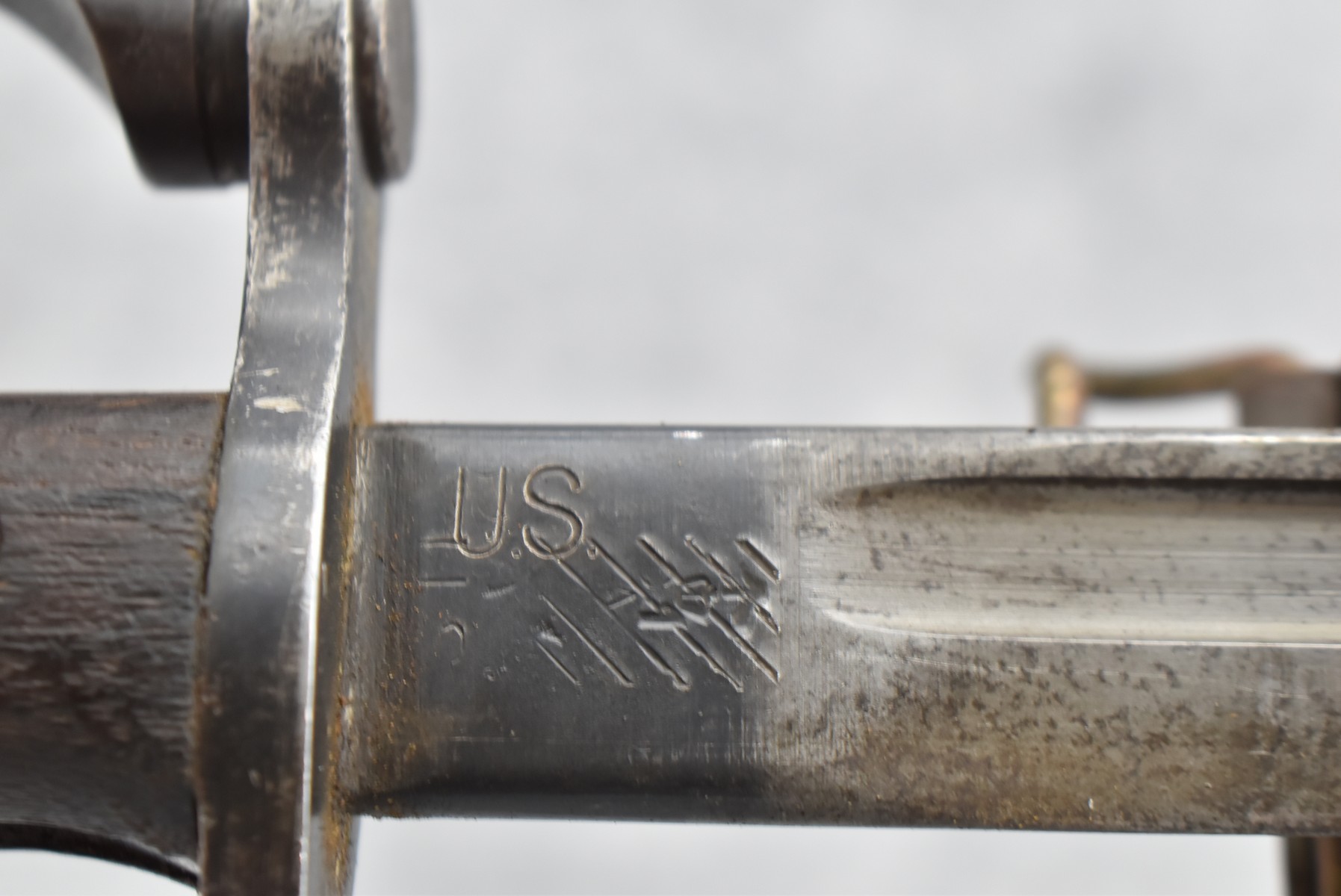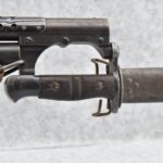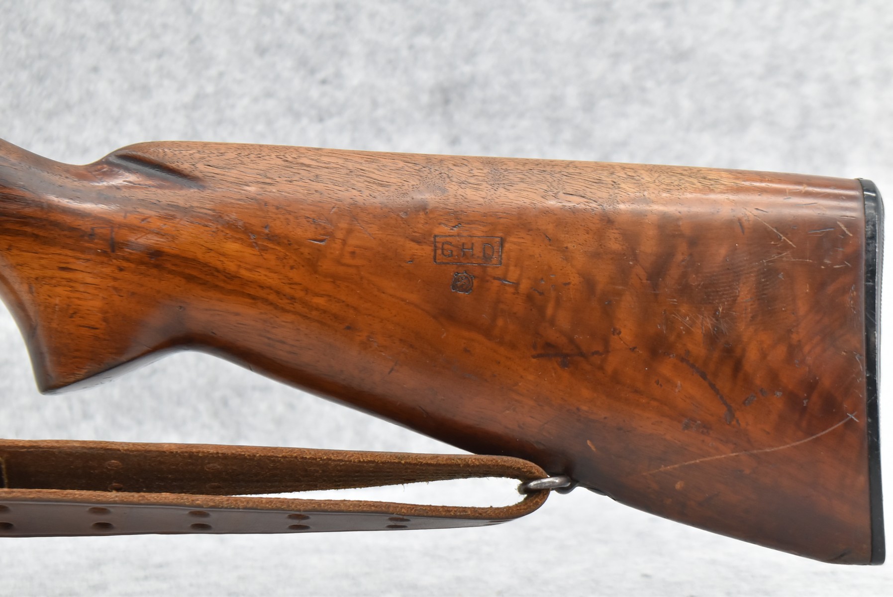 223R.     Winchester – Mod. 12 Trench Gun – 12ga. 2 ¾” Pump Action Shotgun – w/20” Cyl. Choked Barrel w/Bead Front Sight, Heat Shield & Bayonet Lug – Blued Finish – w/Pistol Grip Wood Butt Stock w/Factory Butt Plate & Ribbed Forearm – w/Strong “G.H.D” & Cross Cannon Cartouche on Left Side of Butt Stock – w/Sling – “U.S.” & Ordnance Bomb on Right Side or Receiver & Ordnance Bomb on Top of Barrel – w/Remington 1913/17 Dated Bayonet & Scabbard – Mfg. 1943