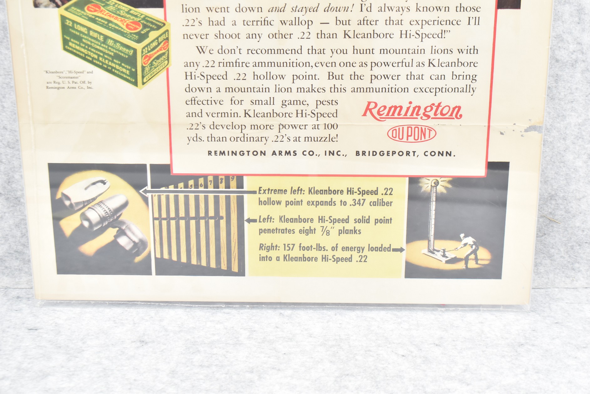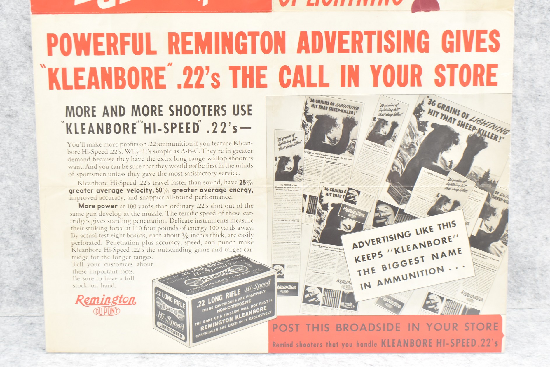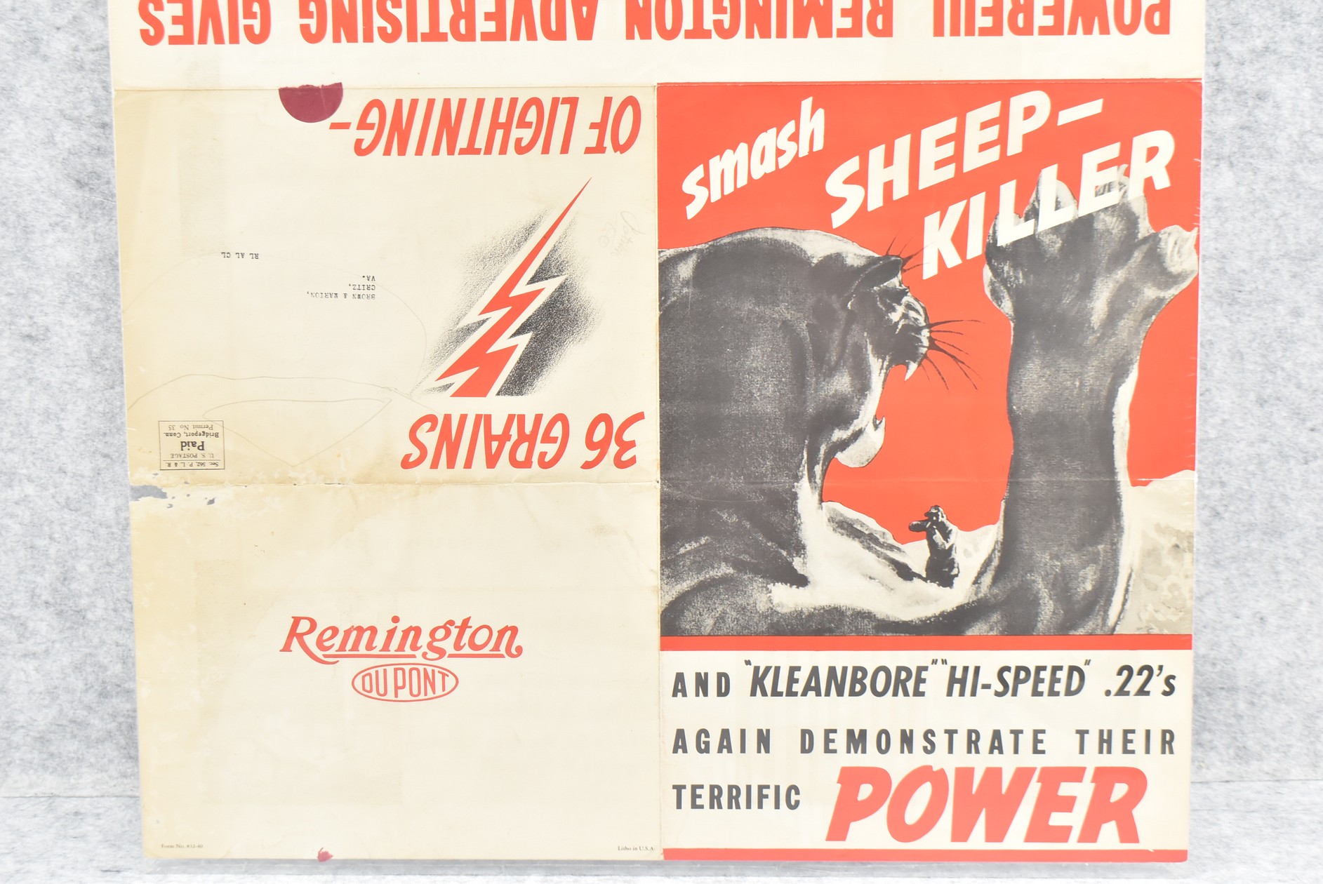 223Z. Original 1940’s Double Sided Remington Kleanbore Hi-Speed 22’s Advertising Poster – Showcases Mountain Lion & Remington “Dog Bone” Box