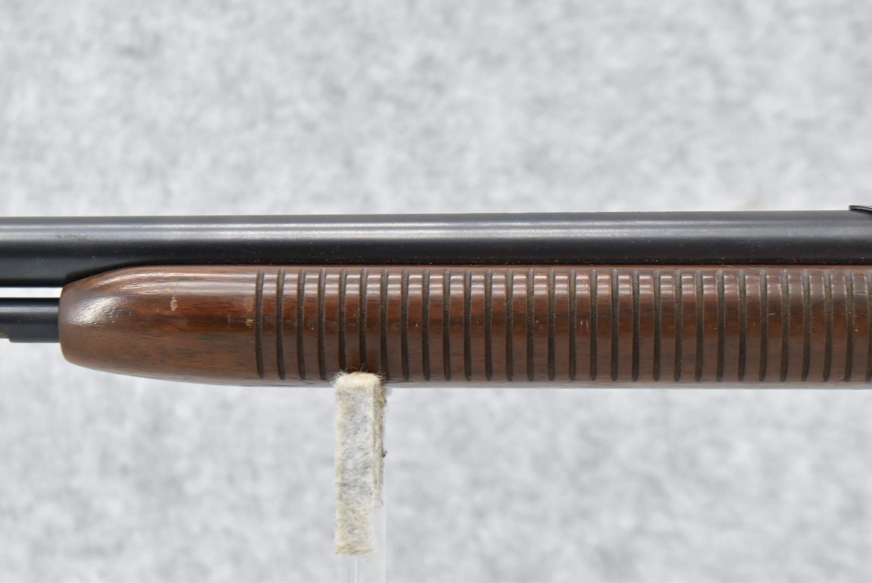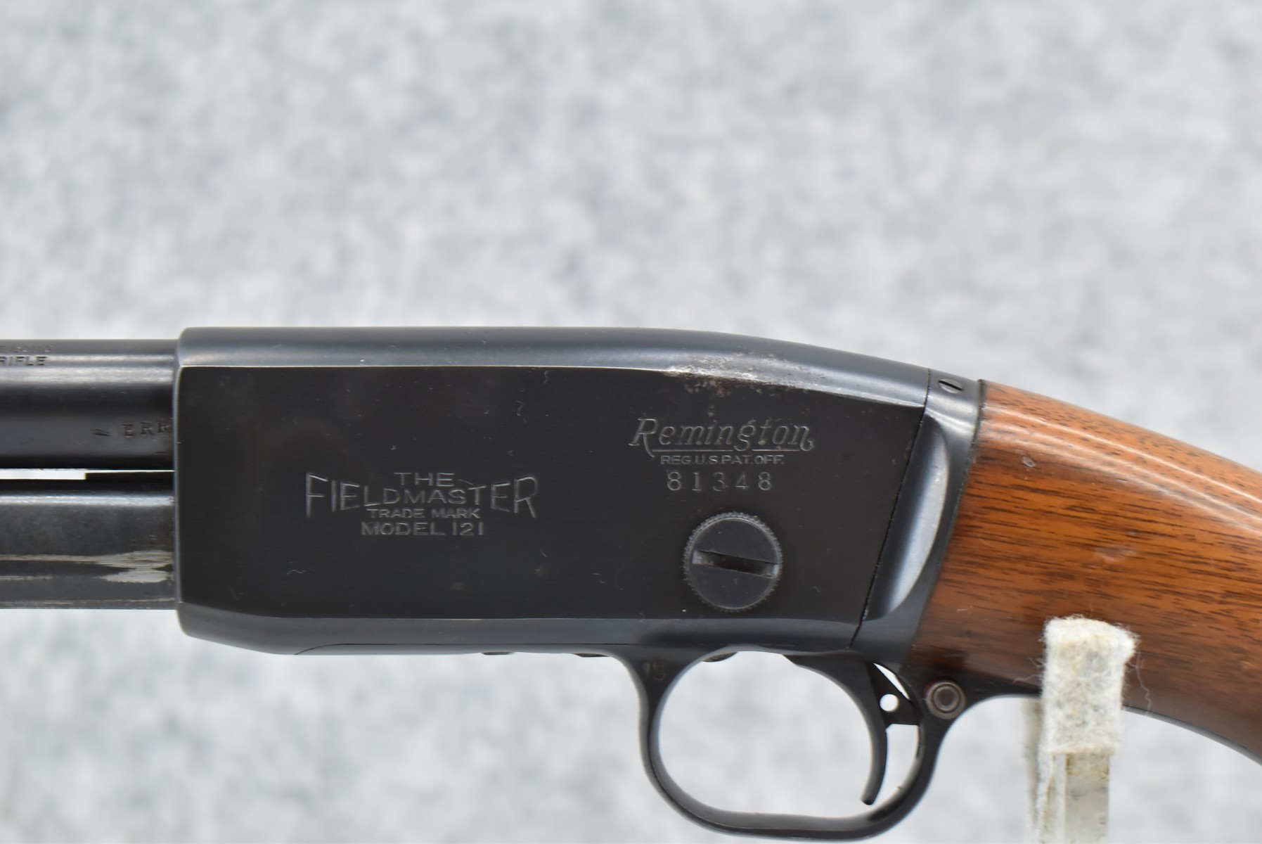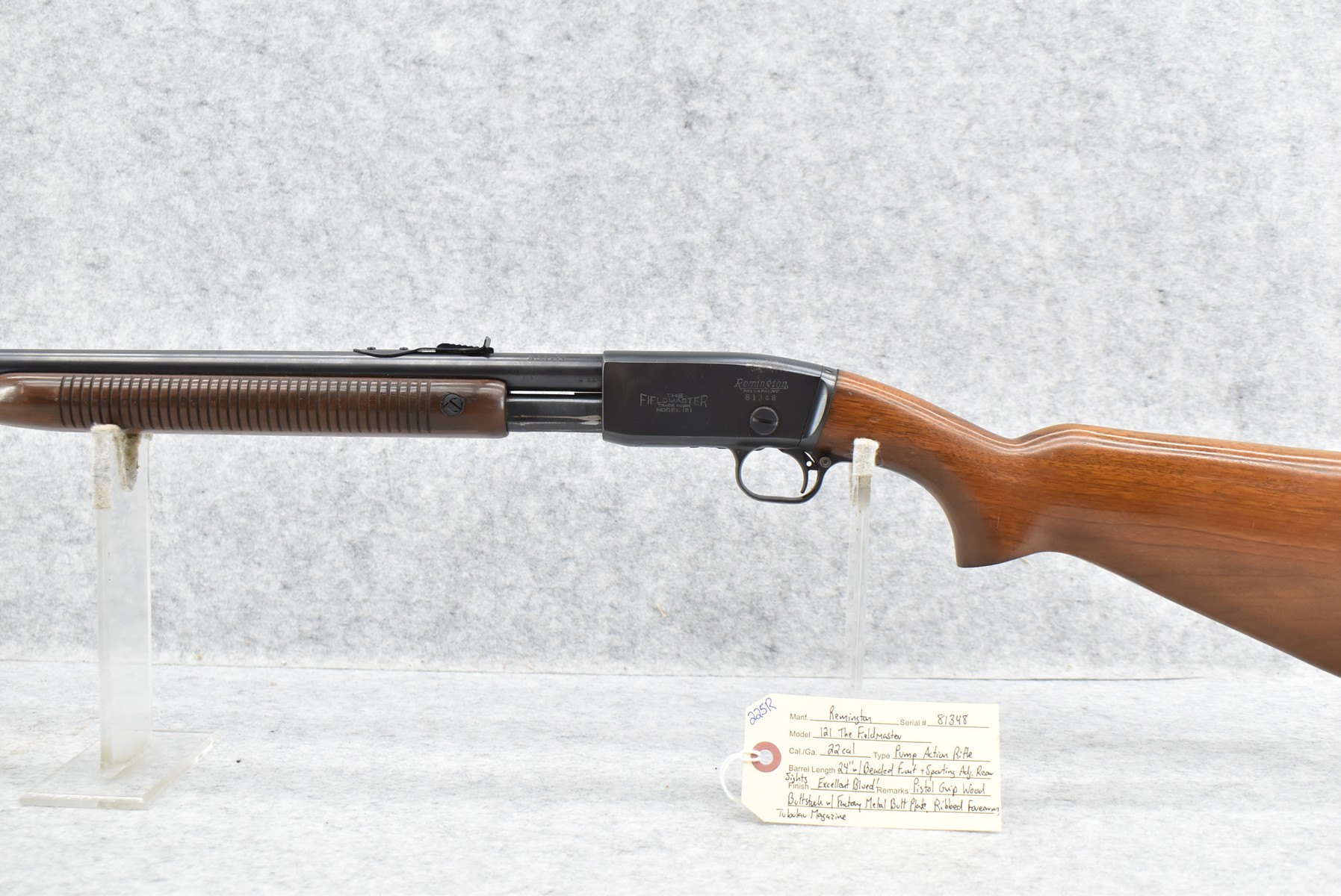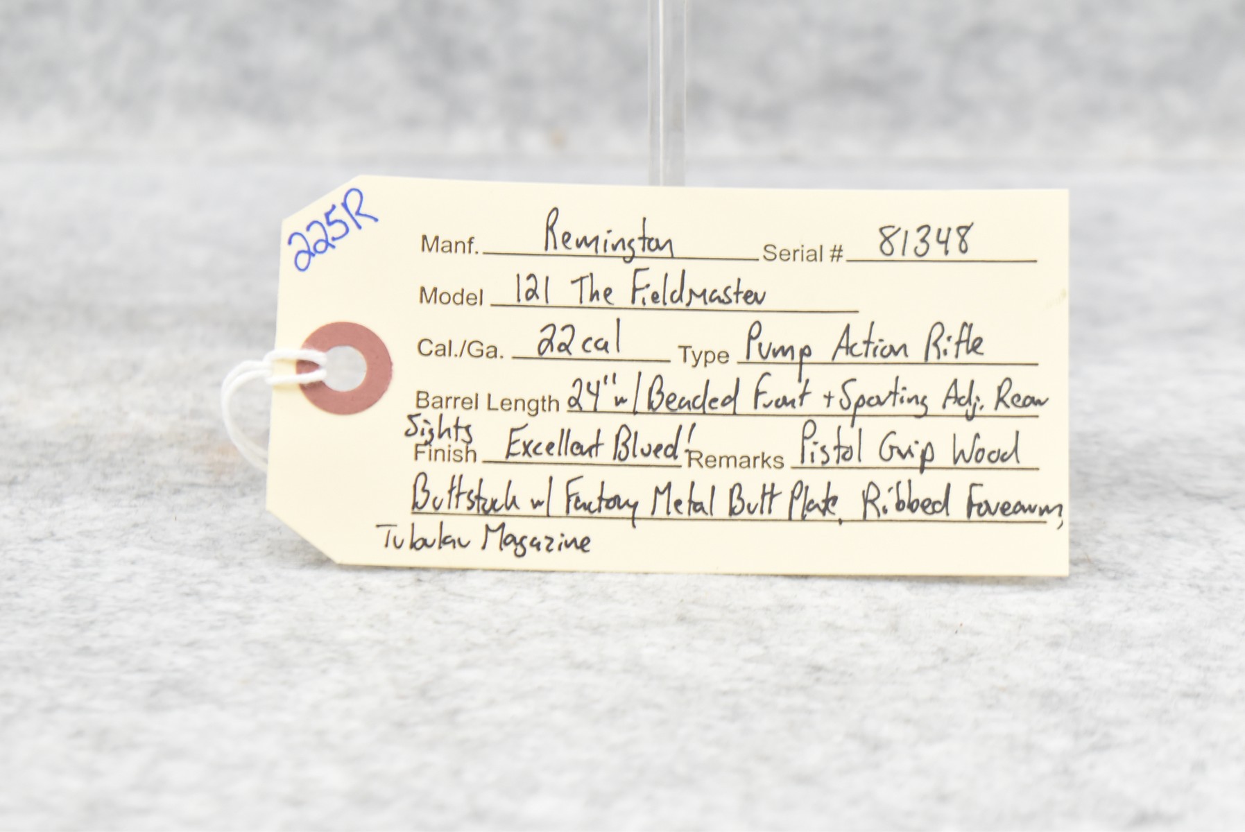225R. Remington – Mod. 121 The Fieldmaster – 22 Cal. Pump Action Rifle – w/24” Barrel w/Beaded Front & Sporting Adj. Rear Sights – Excellent Blued Finish! – w/Pistol Grip Wood Butt Stock w/Ribbed Forearm w/Factory Metal Butt Plate – w/Tubular Magazine