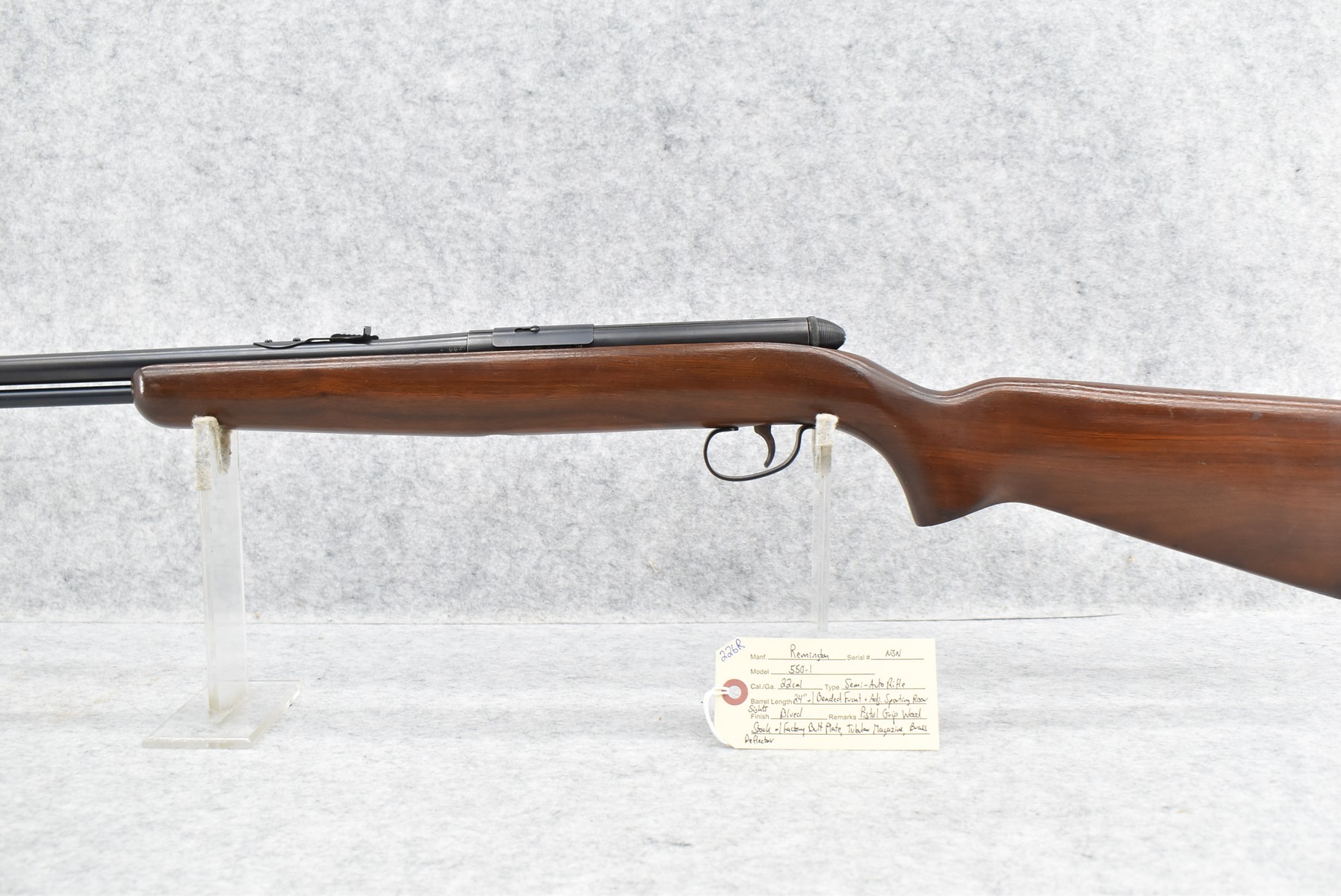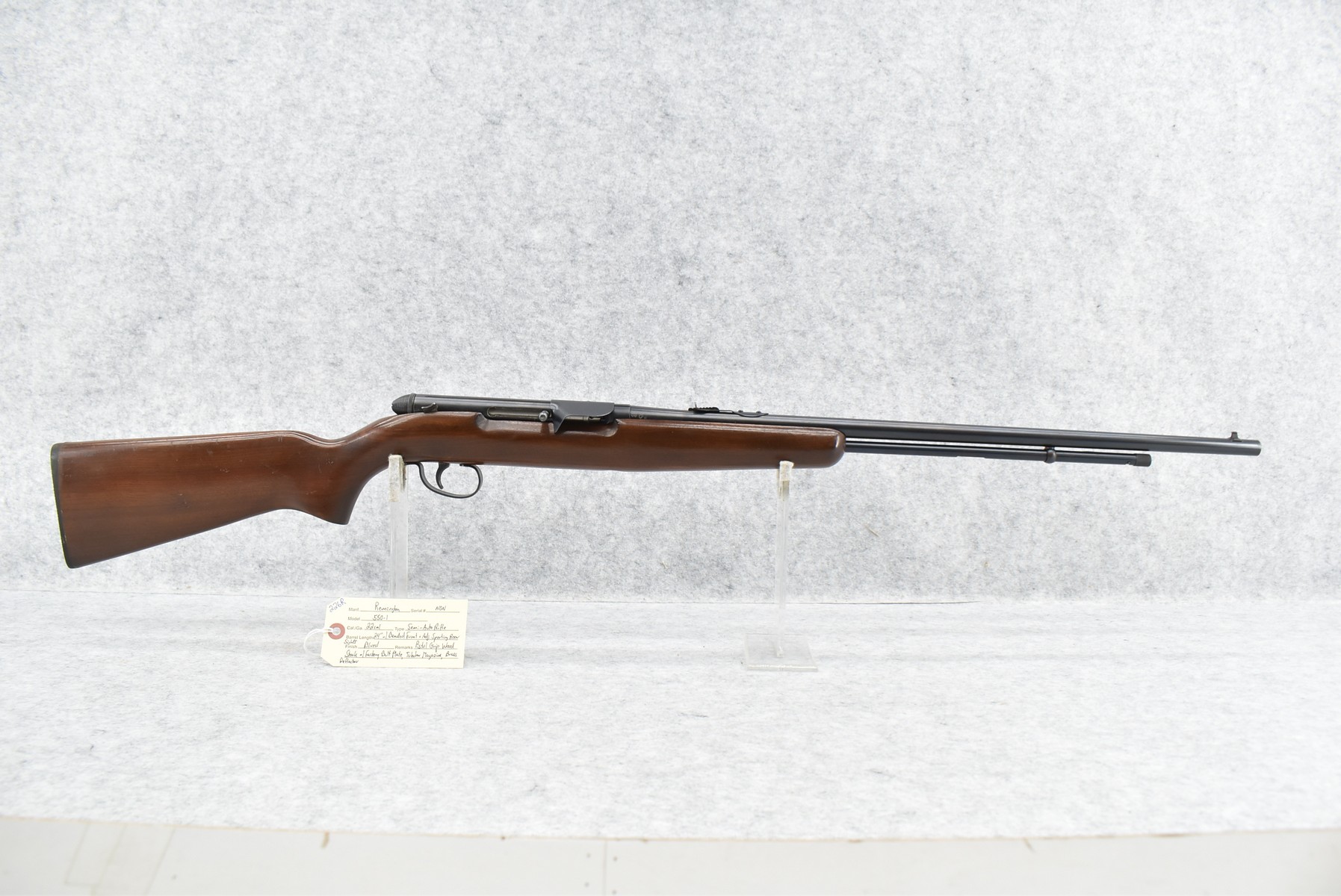 226R. Remington – Mod. 550-1 – 22 Cal. Semi-Auto Rifle – w/24” Barrel w/Beaded Front & Adj. Sporting Rear Sights – Blued Finish – w/Pistol Grip Wood Stock w/Factory Butt Plate – w/Brass Deflector – w/Tubular Magazine