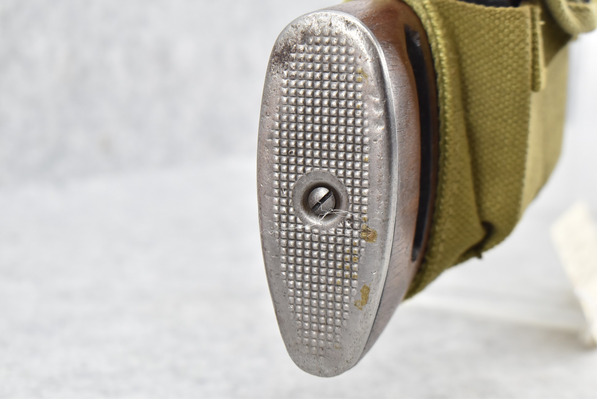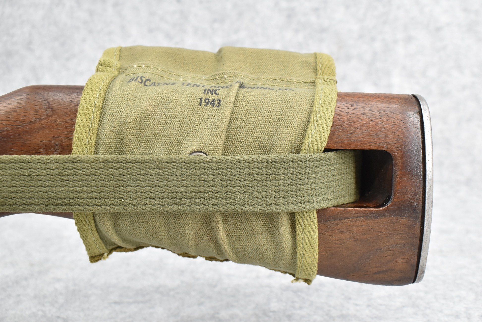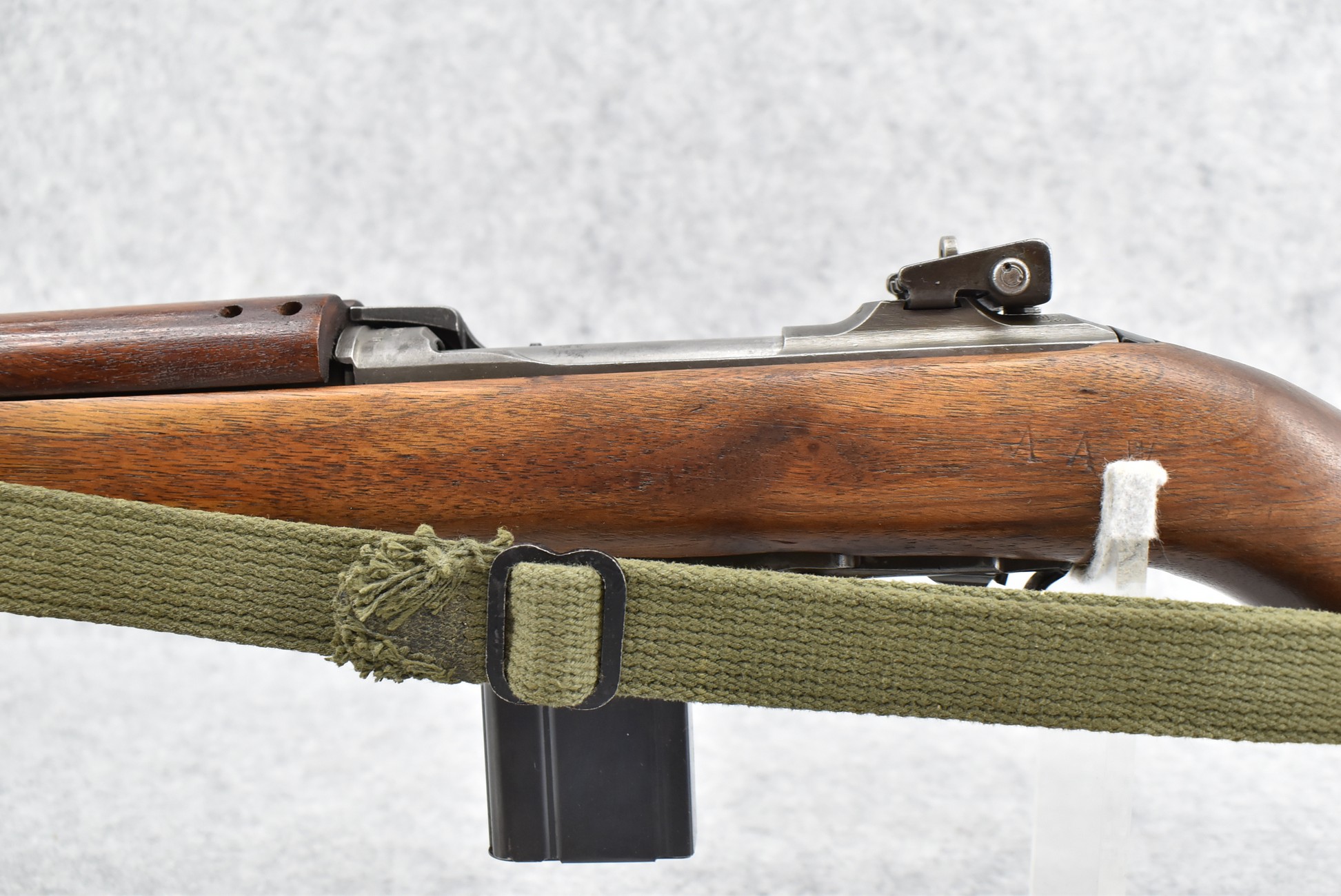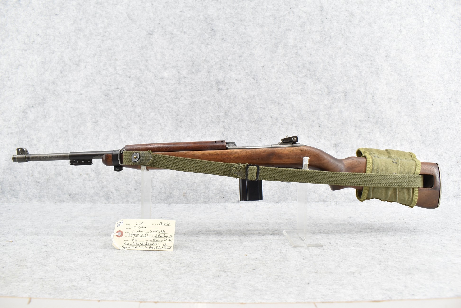 227R. I.B.M. – Mod. M1 Carbine – 30 Carbine Cal. Semi-Auto Rifle – w/18” I.B.M. Corp Barrel w/Blade Front & Adj. Rear Peep Sights – Gray Finish – w/Pistol Grip Full Wood Stock w/Factory Metal Butt Plate – w/Sling & Oiler – w/Three 15Rd Magazines w/U.S. Mag Pouch – Import Marked