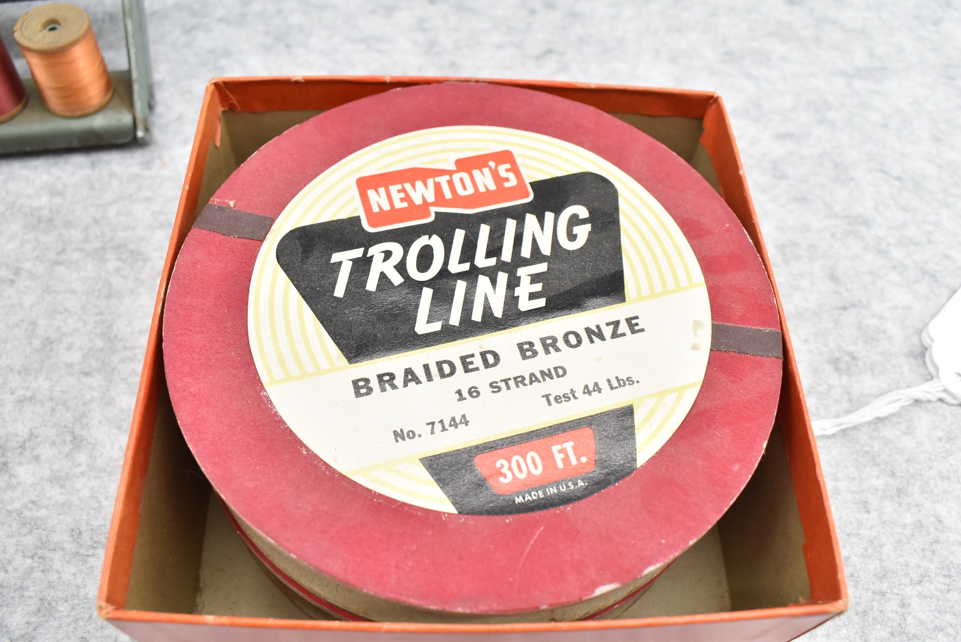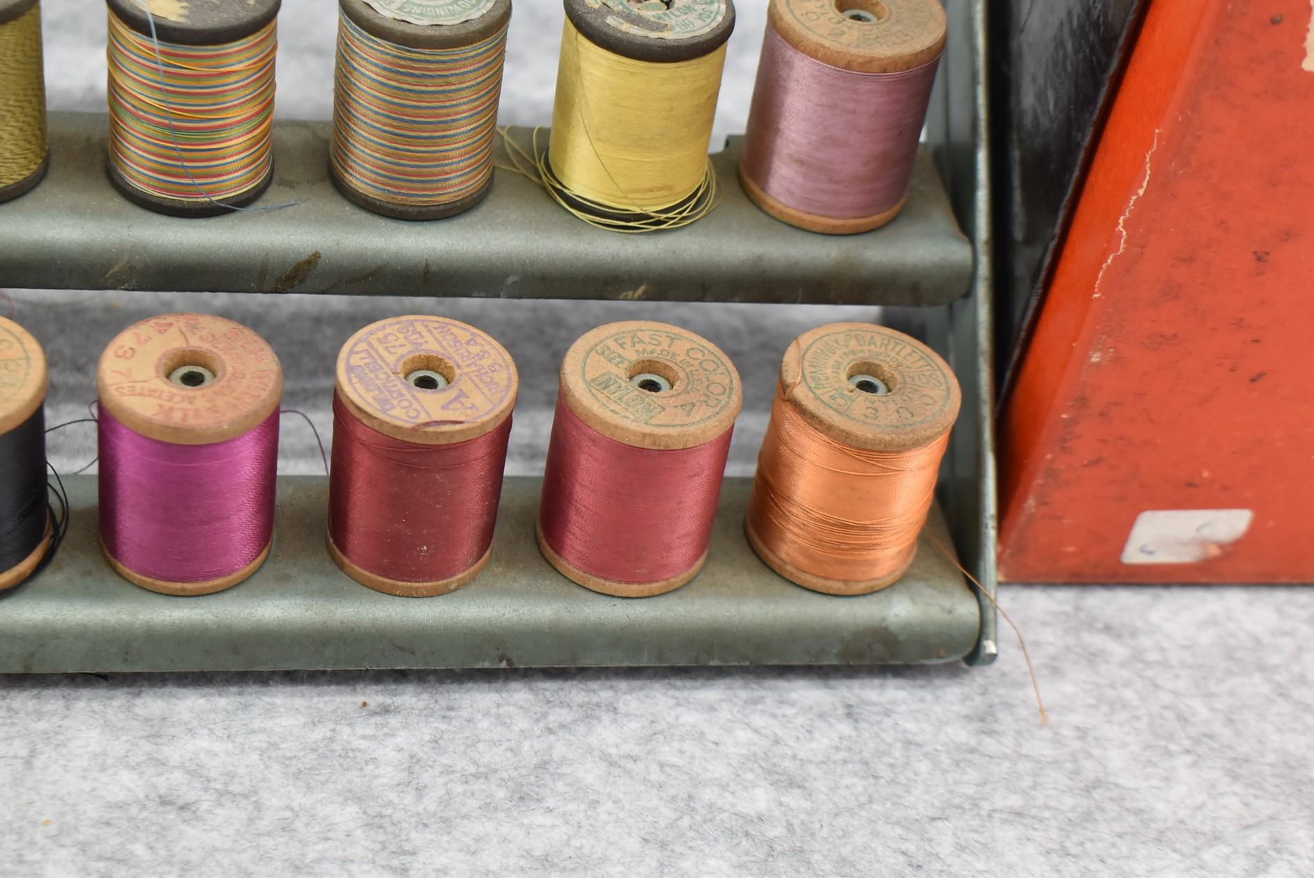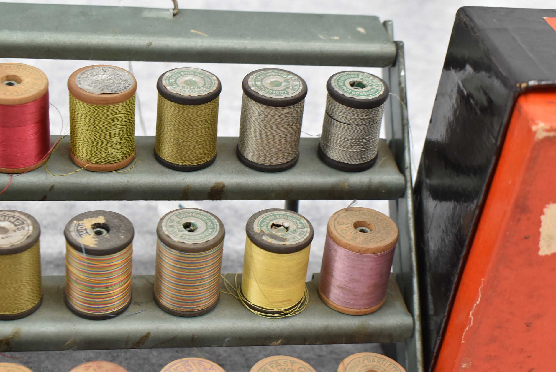 230. Metal 3-Tier Thread Holder w/24 Spools of Thread & Newton 44lb. Test Braided Trolling Line in Original Box