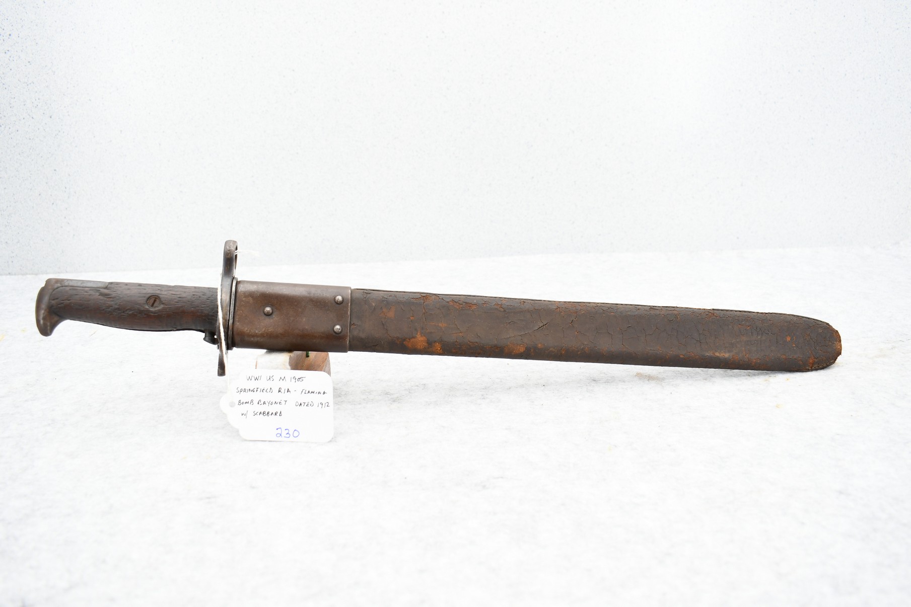 230. WWII U.S. R.I.A M1905 Bayonet w/Scabbard – Dated 1912