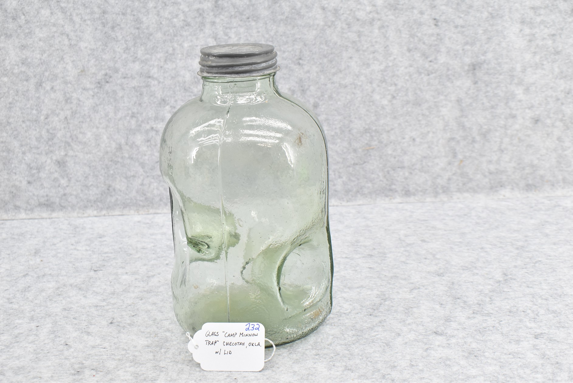 Glass “Camp Minnow Trap” Checotah, Okla. – w/Lid