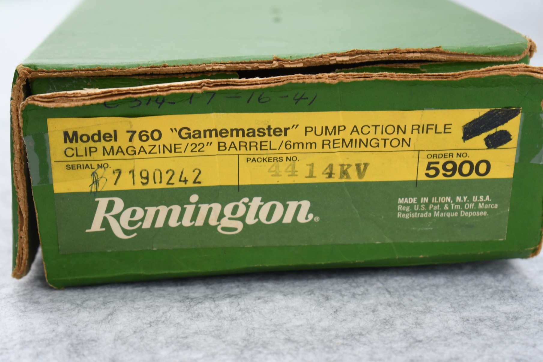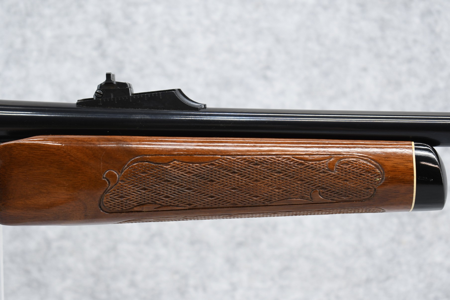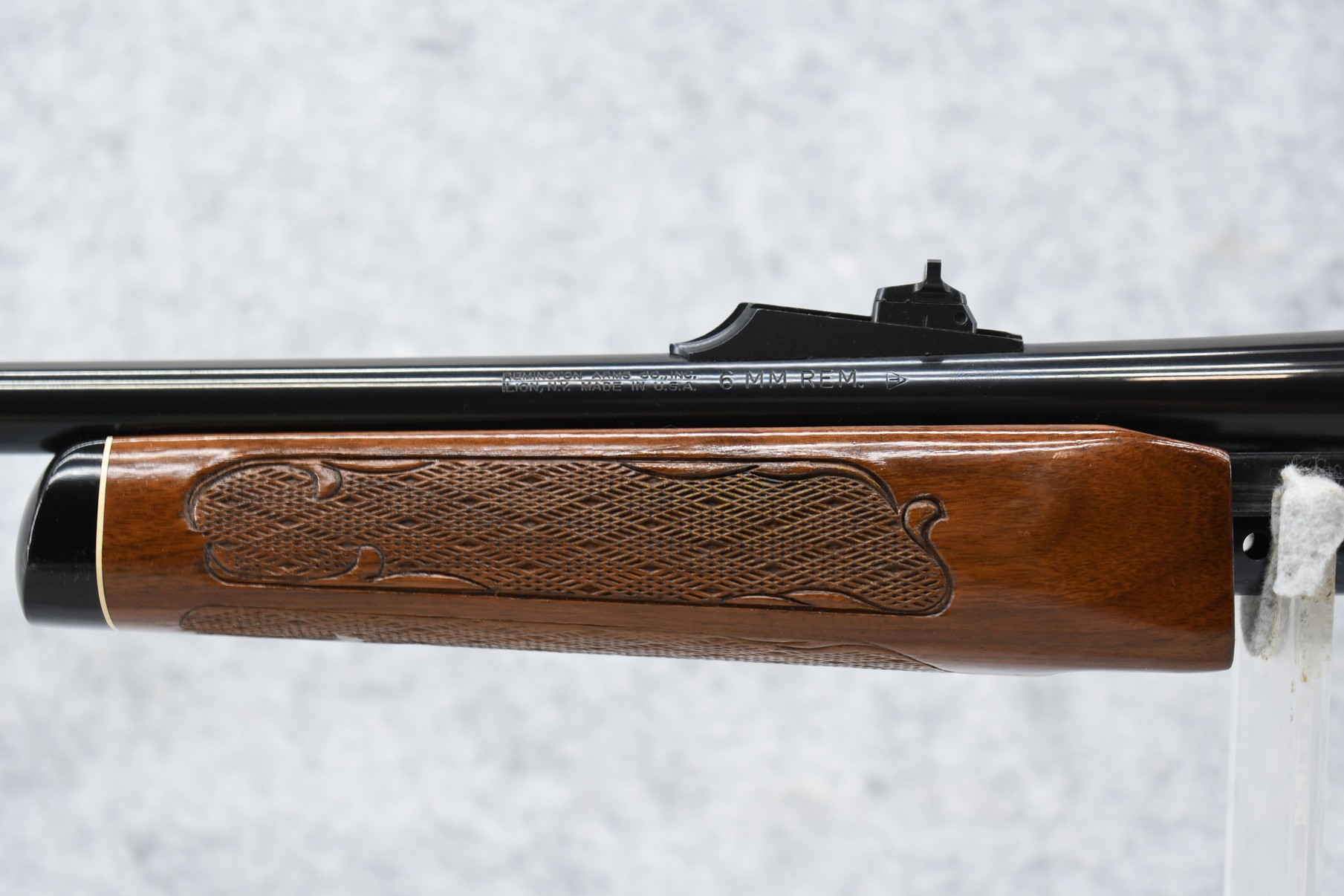 232R. Remington – Mod. 760 Gamemaster (Press Checkered) – 6mm Rem. Cal. Pump Action Rifle – w/22” Barrel w/Beaded Front & Adj. Rear Ramp Sights – Blued Finish – w/Checkered Capped Pistol Grip Wood Stocks w/Factory Butt Plate – w/Factory Mag – Unfired w/Factory Box, Manual & Hang Tag