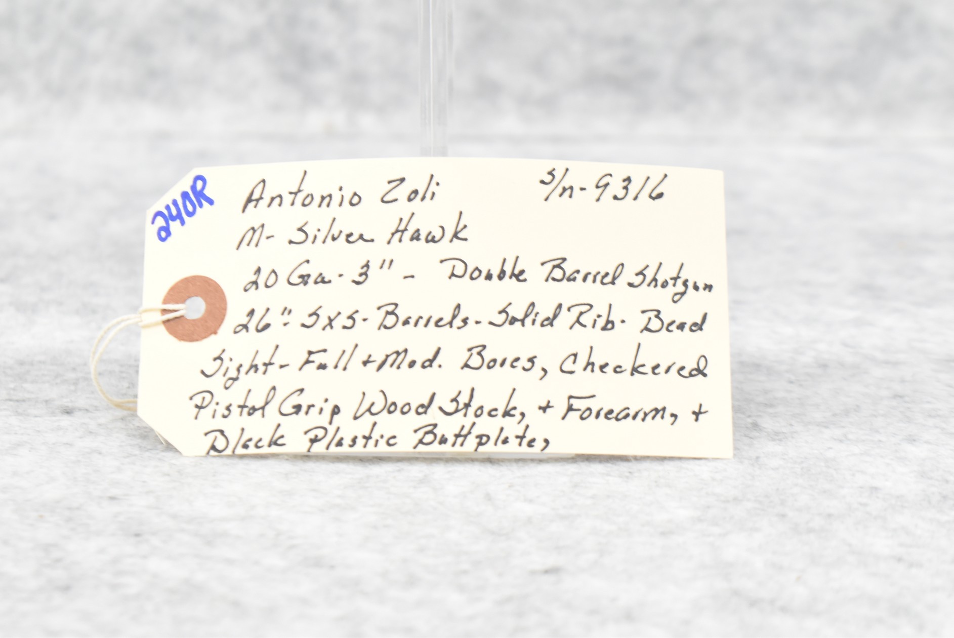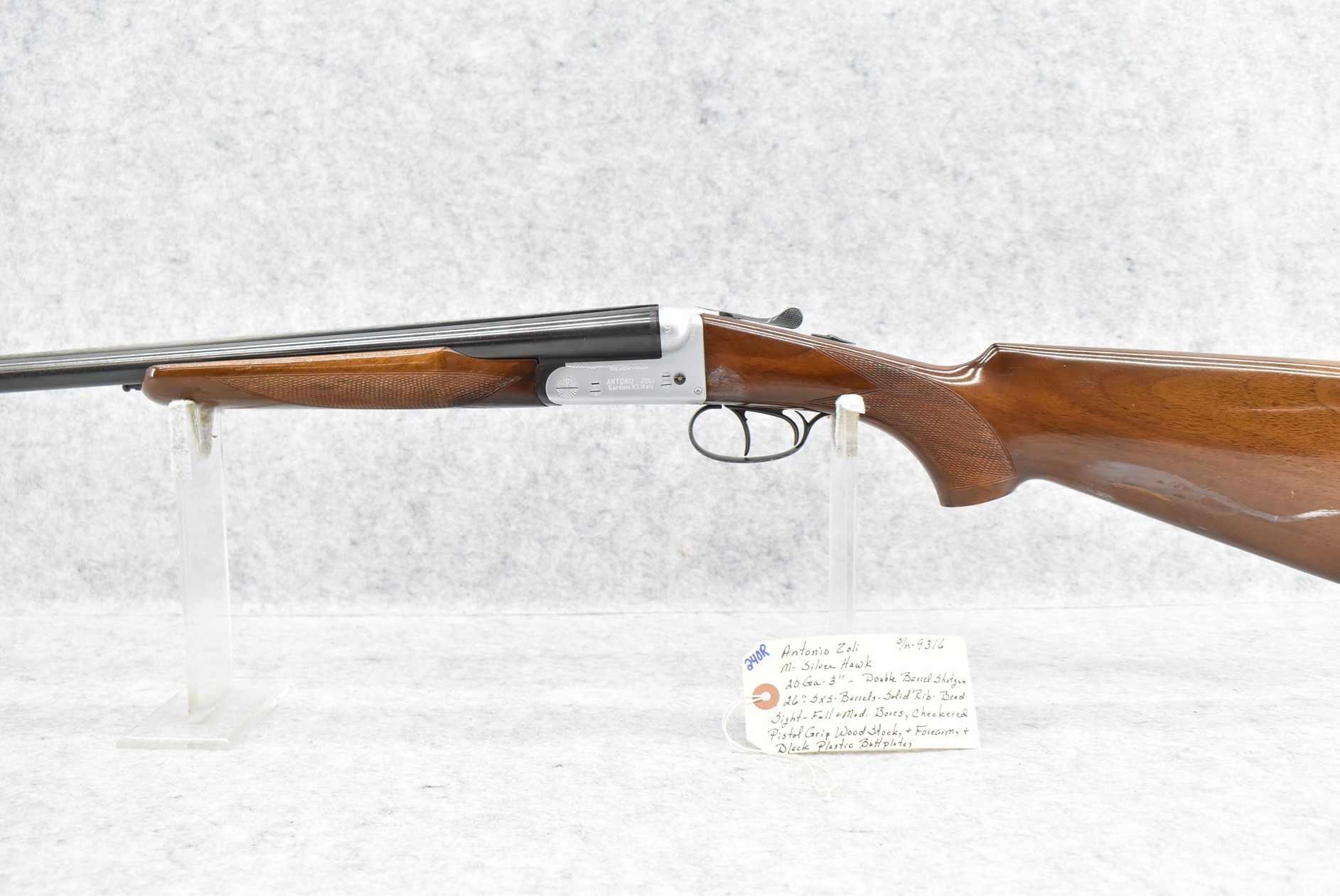 240R. Antonio Zoli – Mod. Silver Hawk – 20ga. 3” Double Barrel Shotgun – w/26” Full & Mod. Choked, Solid Rib Barrels w/Bead Sight – w/Checkered Pistol Grip Wood Stocks w/Butt Plate