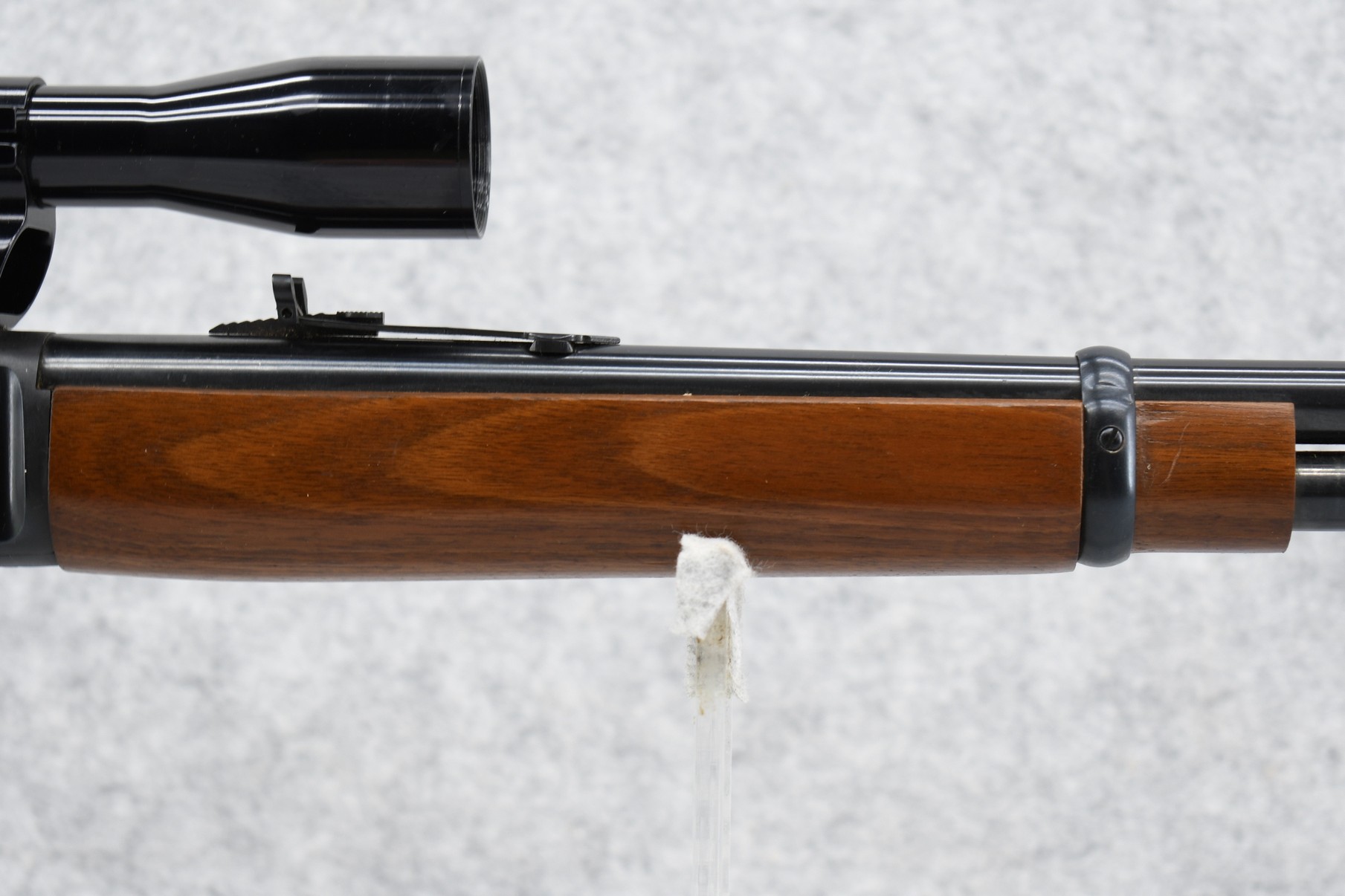 242R. Marlin – Mod. 336 – 30-30 Win. Cal. Lever Action Rifle – w/20” JM Stamped Barrel w/Hooded Front Blade & Rear Adj. Semi-Buckhorn Sights w/Full Length Tubular Mag – Blued Finish – w/Factory Straight Grip Wood Stocks w/Factory Butt Plate – w/Kmart All-Pro 4×32 Scope – w/See Through Mounts