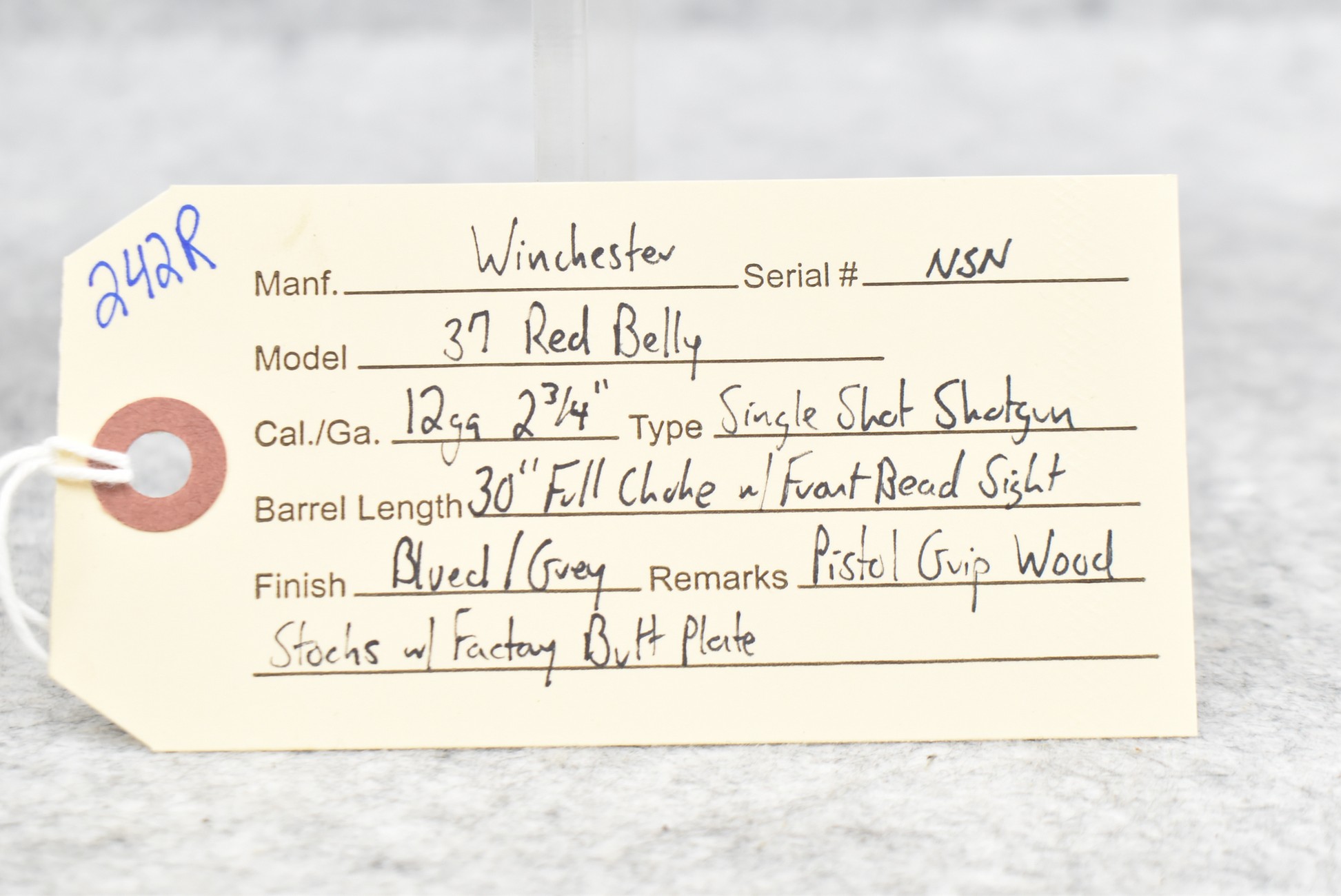 242R. Winchester – Mod. 37 Red Belly – 12ga. 2 ¾” Single Shot Shotgun – w/30” Full Choke Barrel w/Front Bead Sight – Blued/Gray Finish – w/Pistol Grip Wood Stocks w/Factory Butt Plate