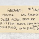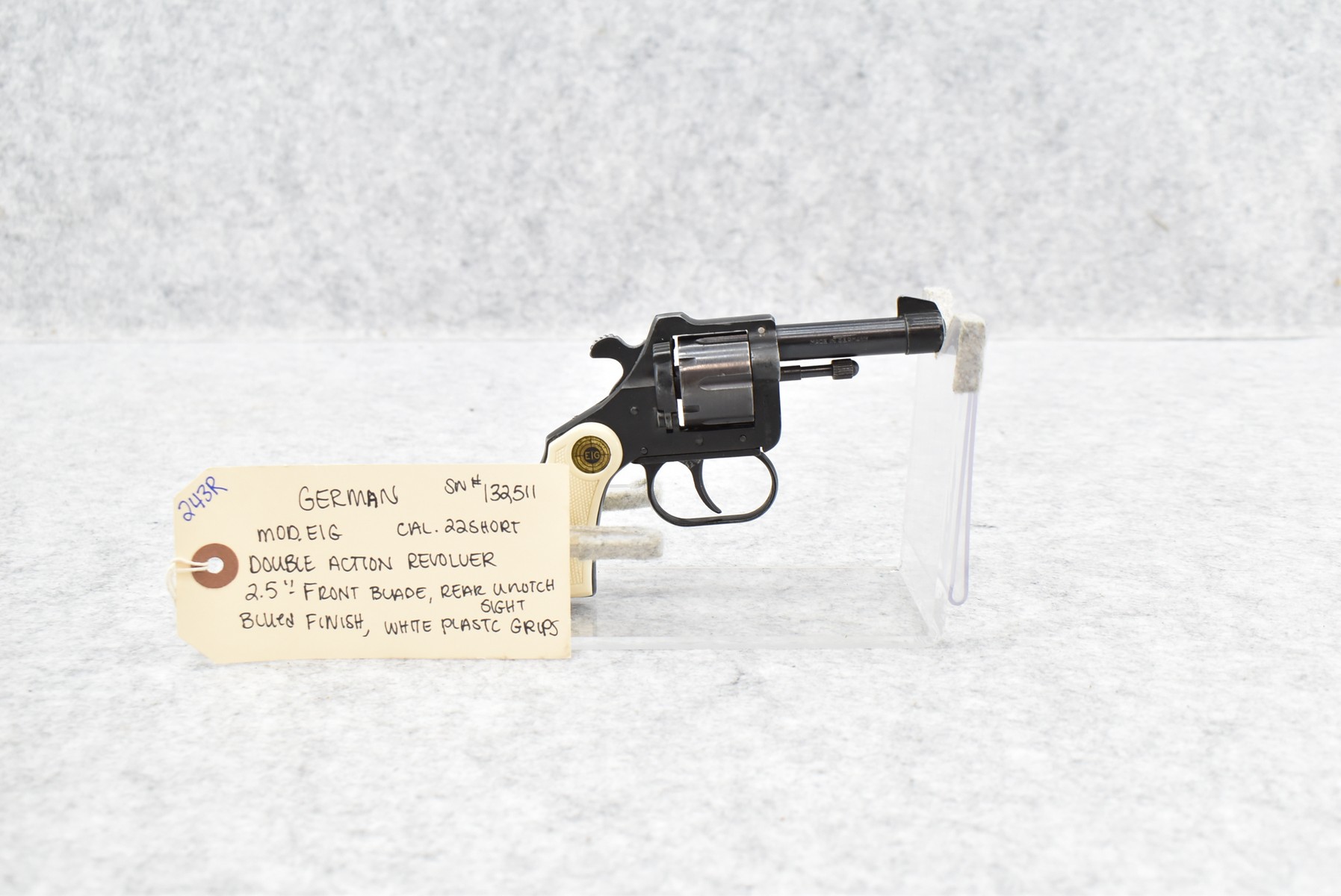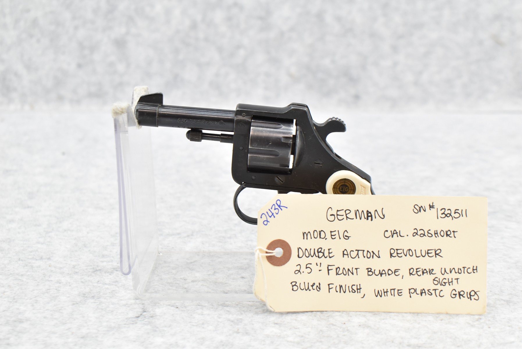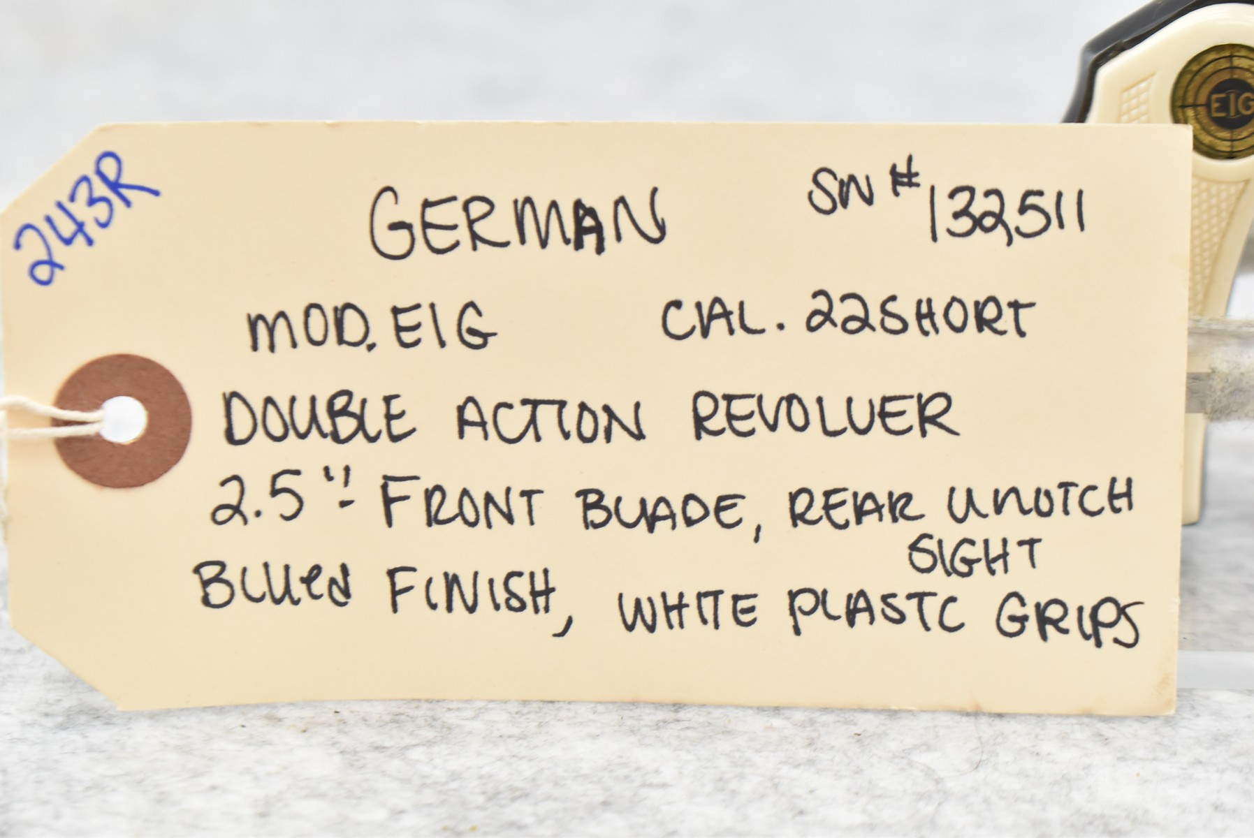 243R. German – Mod. EIG – 22 Short Cal. Double Action Revolver – w/2½” Barrel w/Front Blade and Rear Notch Sights – Blued Finish – w/White Plastic Grips