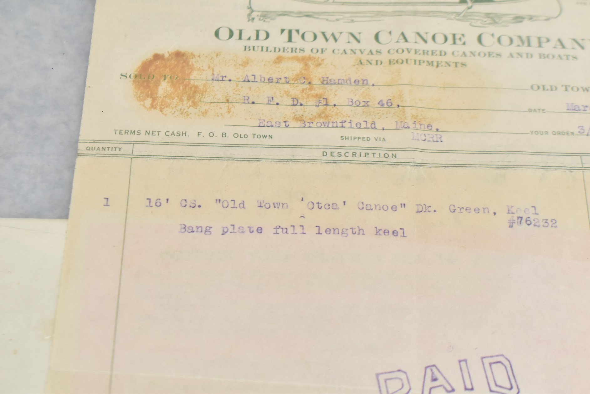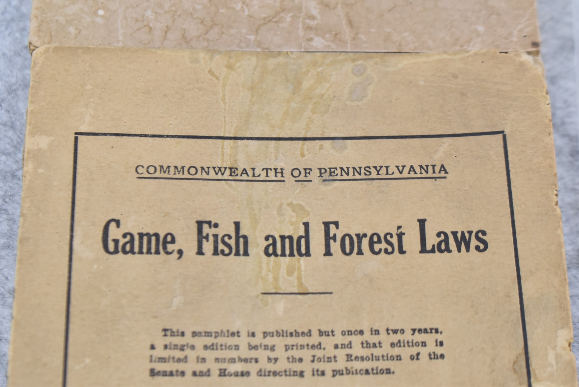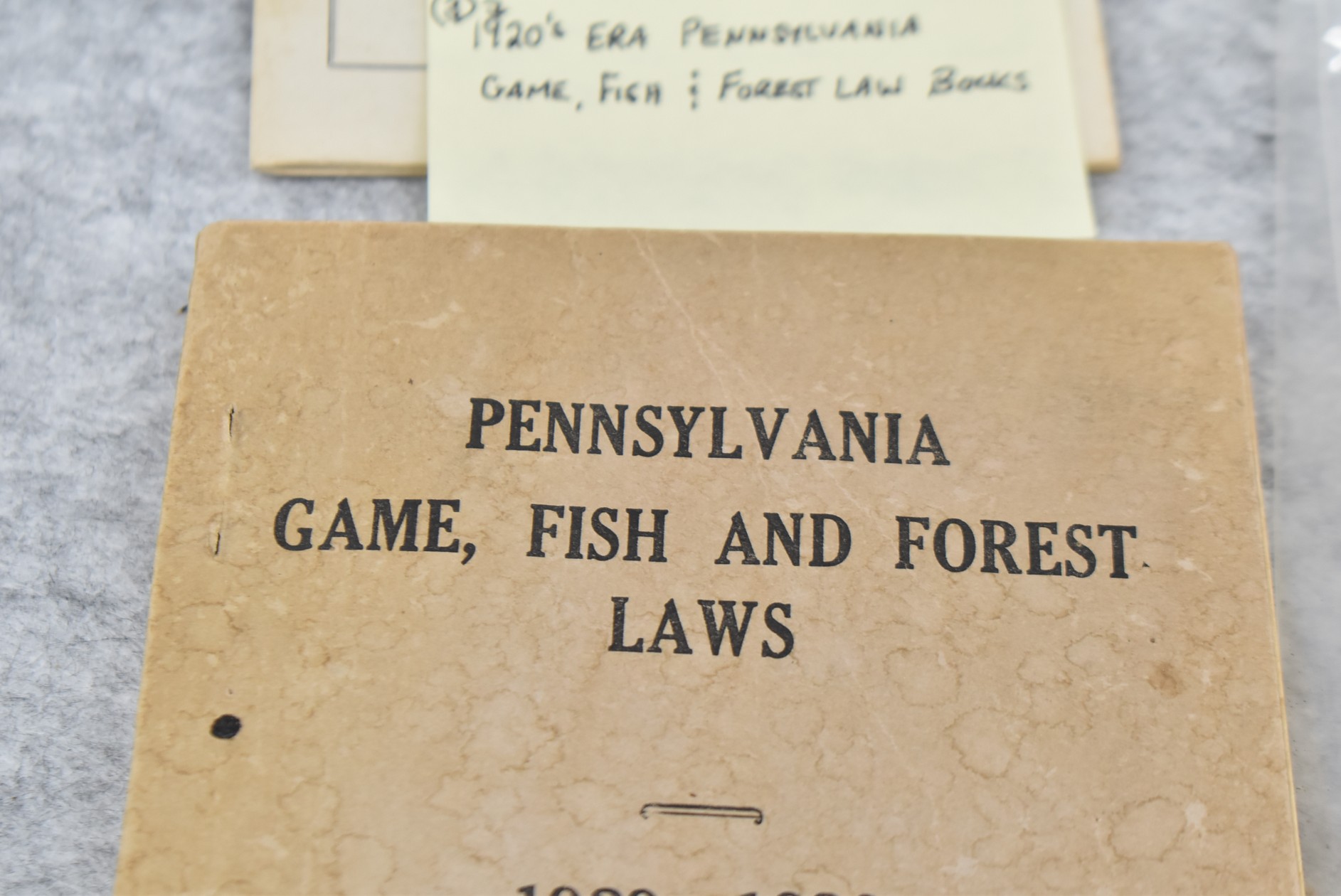 244. Lot Including: 1) Old Town Canoe Co. Original Purchase Receipt Dated March 22, 1923 for a 16’ Canoe. 2) Three 1920’s Era PA Game, Fish & Forest Law Books