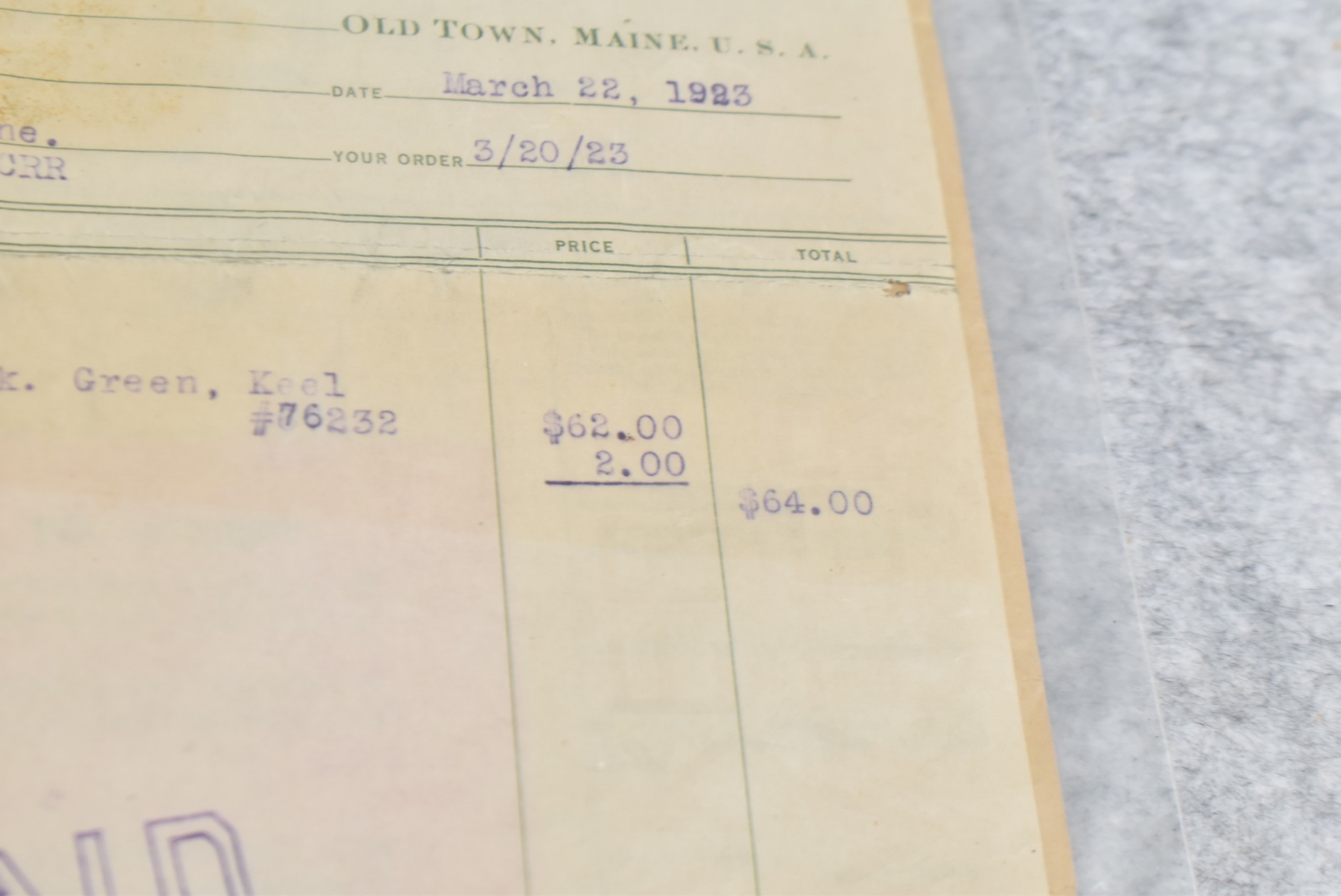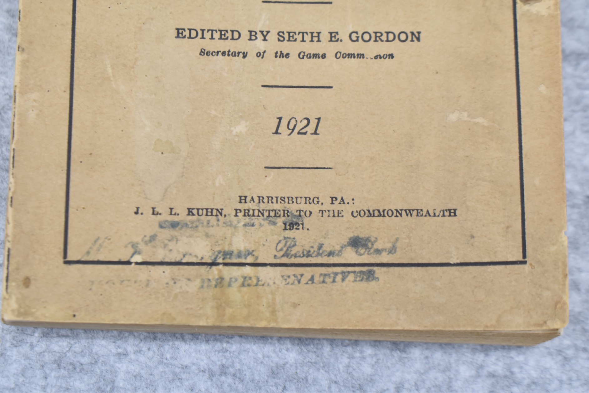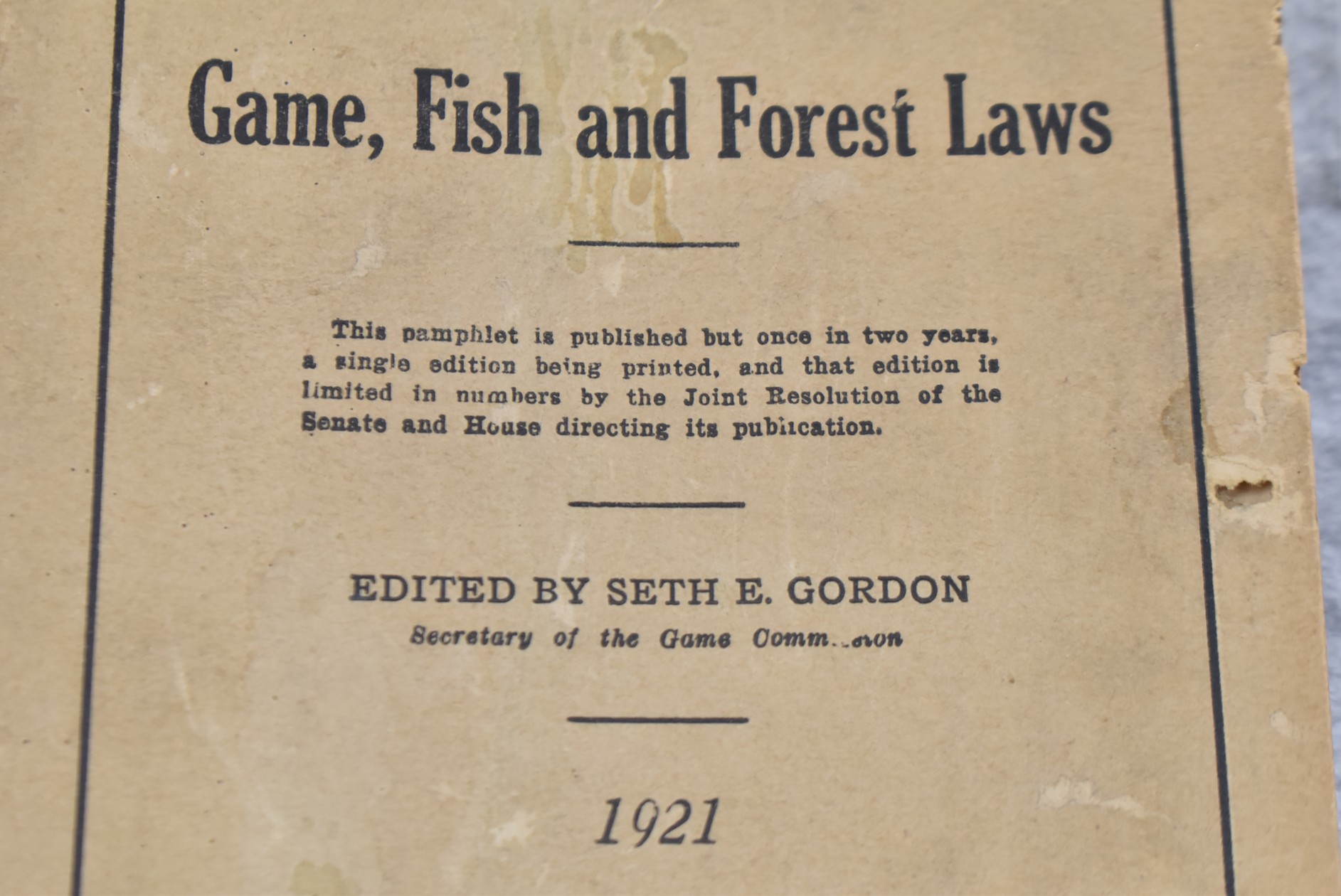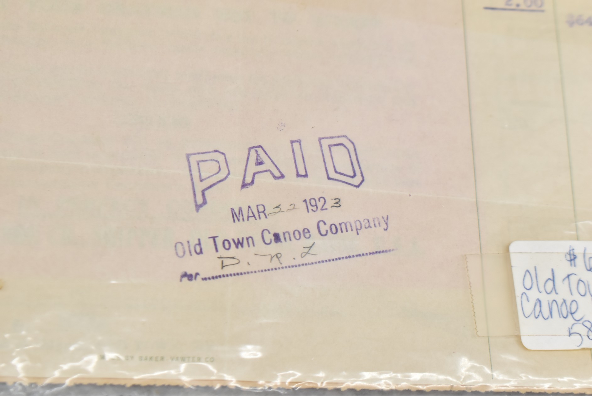 244. Lot Including: 1) Old Town Canoe Co. Original Purchase Receipt Dated March 22, 1923 for a 16’ Canoe. 2) Three 1920’s Era PA Game, Fish & Forest Law Books