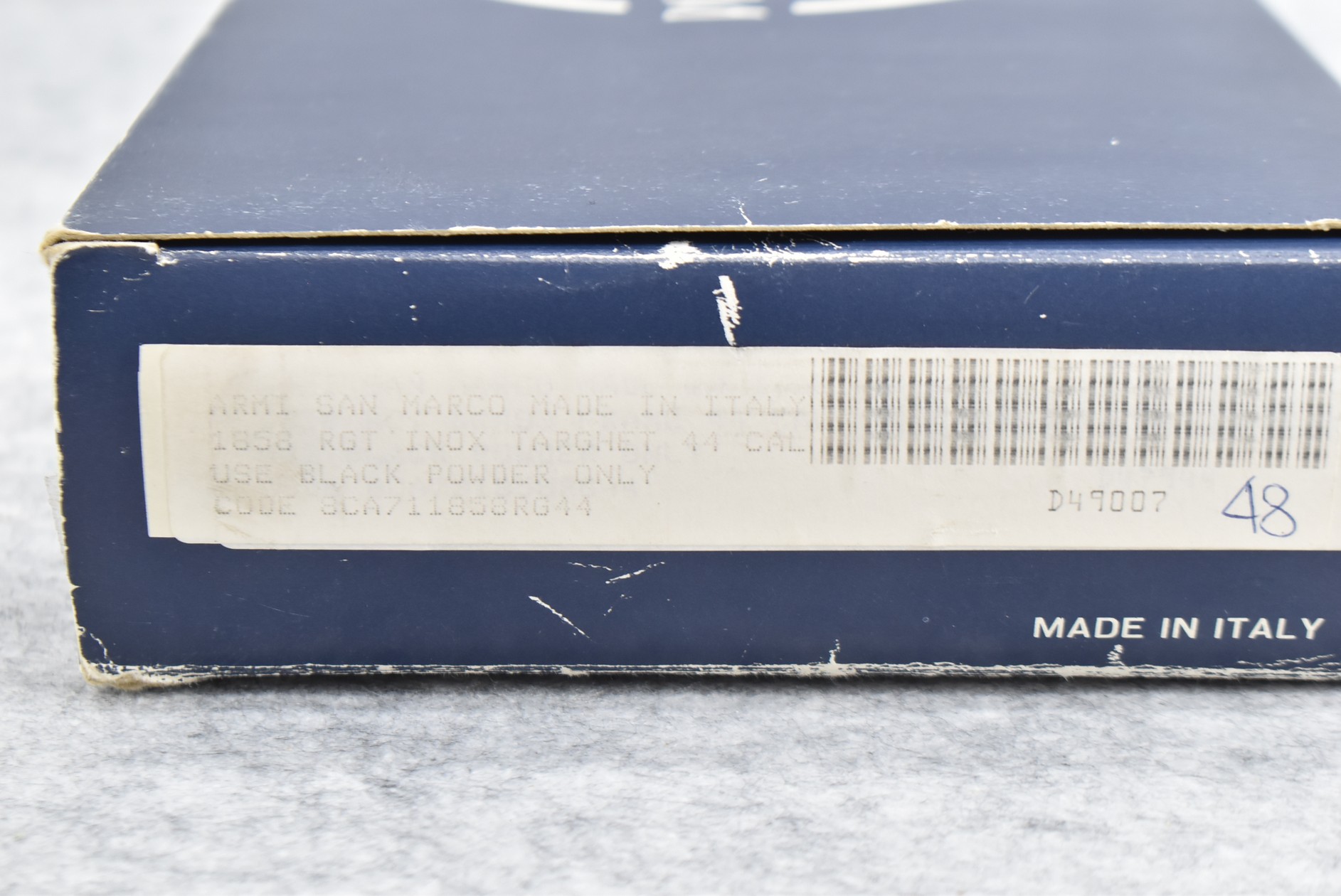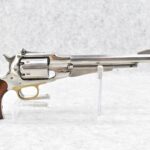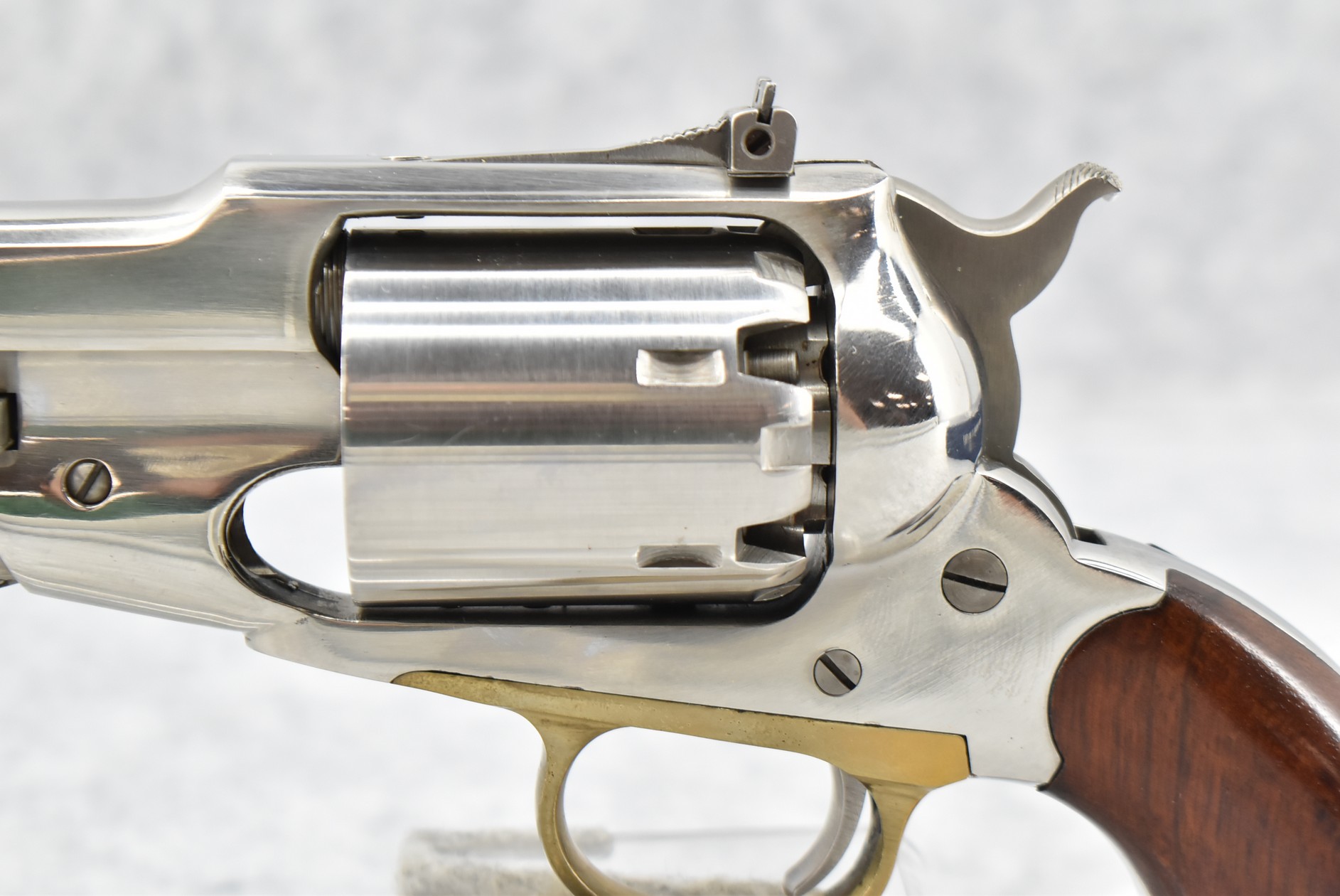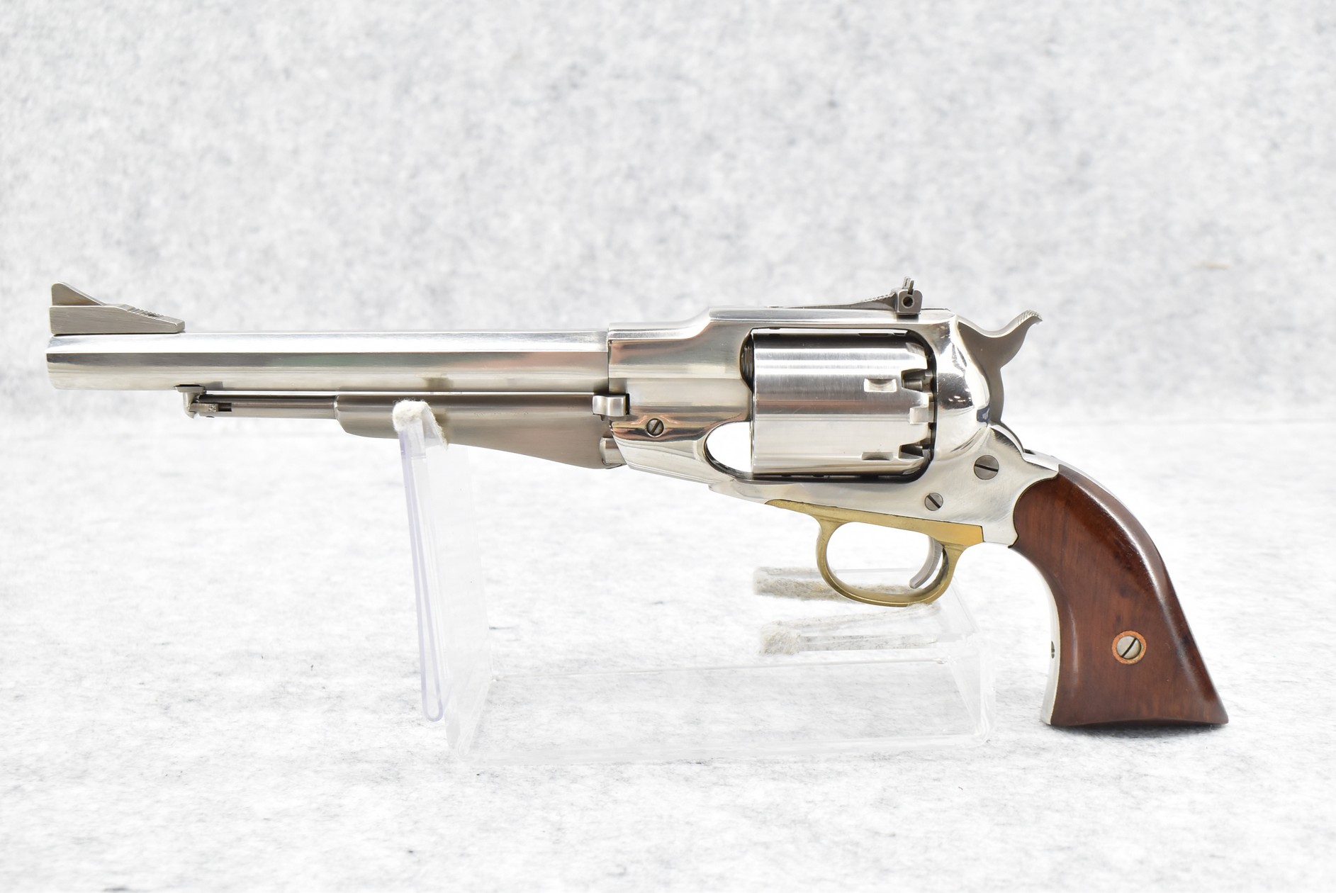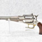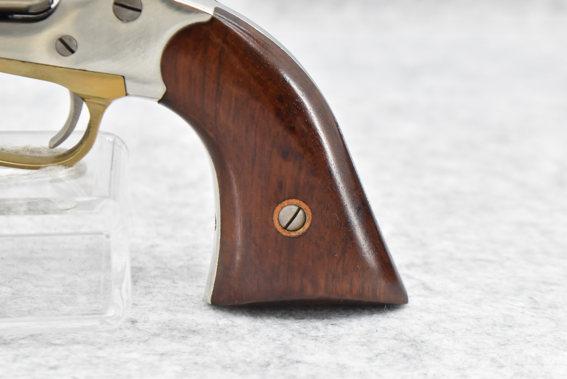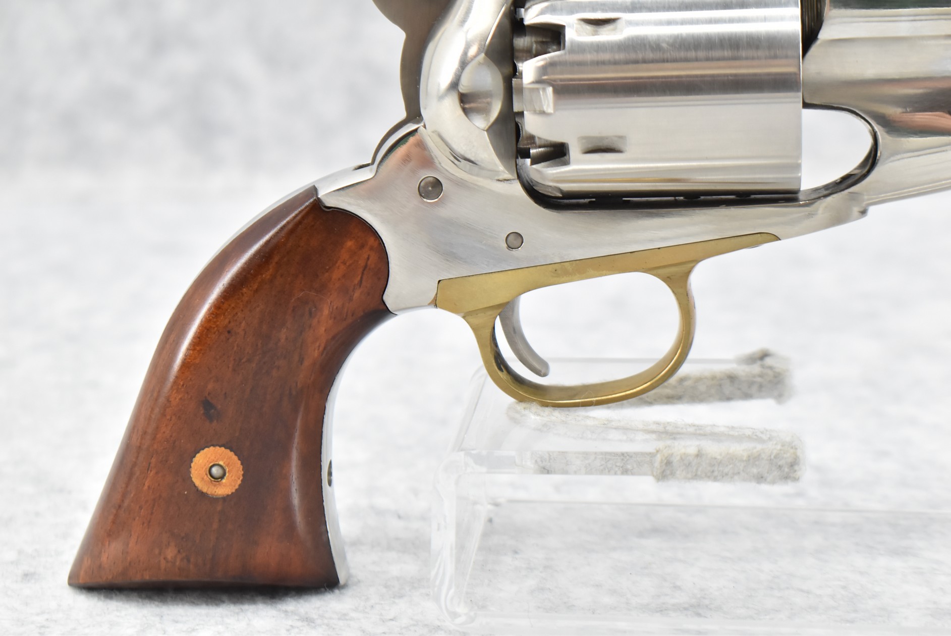 244. Uberti – Mod. 1858 Remington Army – 44 Cal. Black Powder Percussion Revolver – w/8” Octagon Barrel w/Ramp Blade Front & Adj. Rear Notch Sights – Stainless Finish – w/Brass Trigger Guard – w/Smooth Wood Grips – New w/Factory Box & Manual