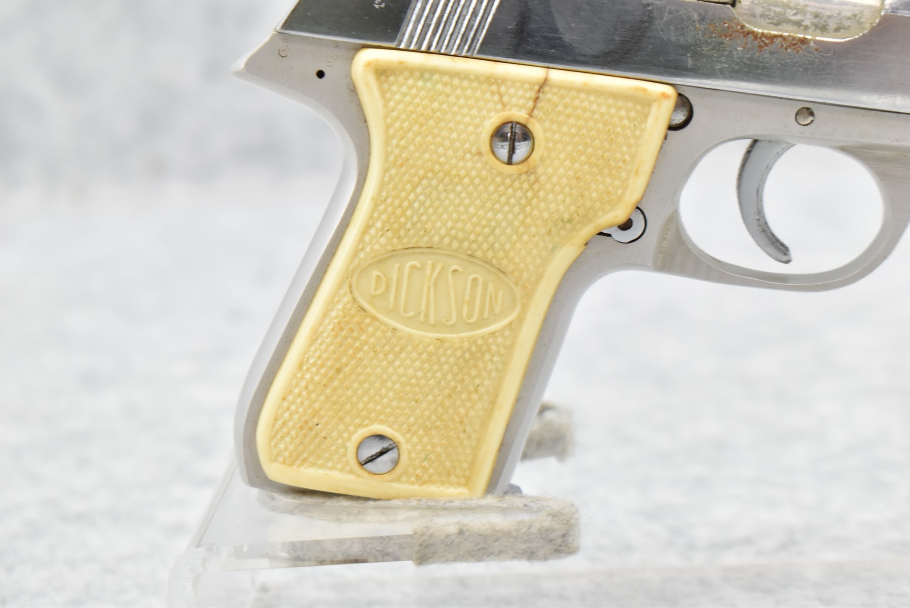 244R. Dickson – Mod. Special Agent – 32 Cal. Semi-Auto Pistol – w/3” Barrel w/Iron Front and Rear Sights – Two-Toned Matte and Polished Stainless Finish – w/Plastic Grips and Factory Magazine