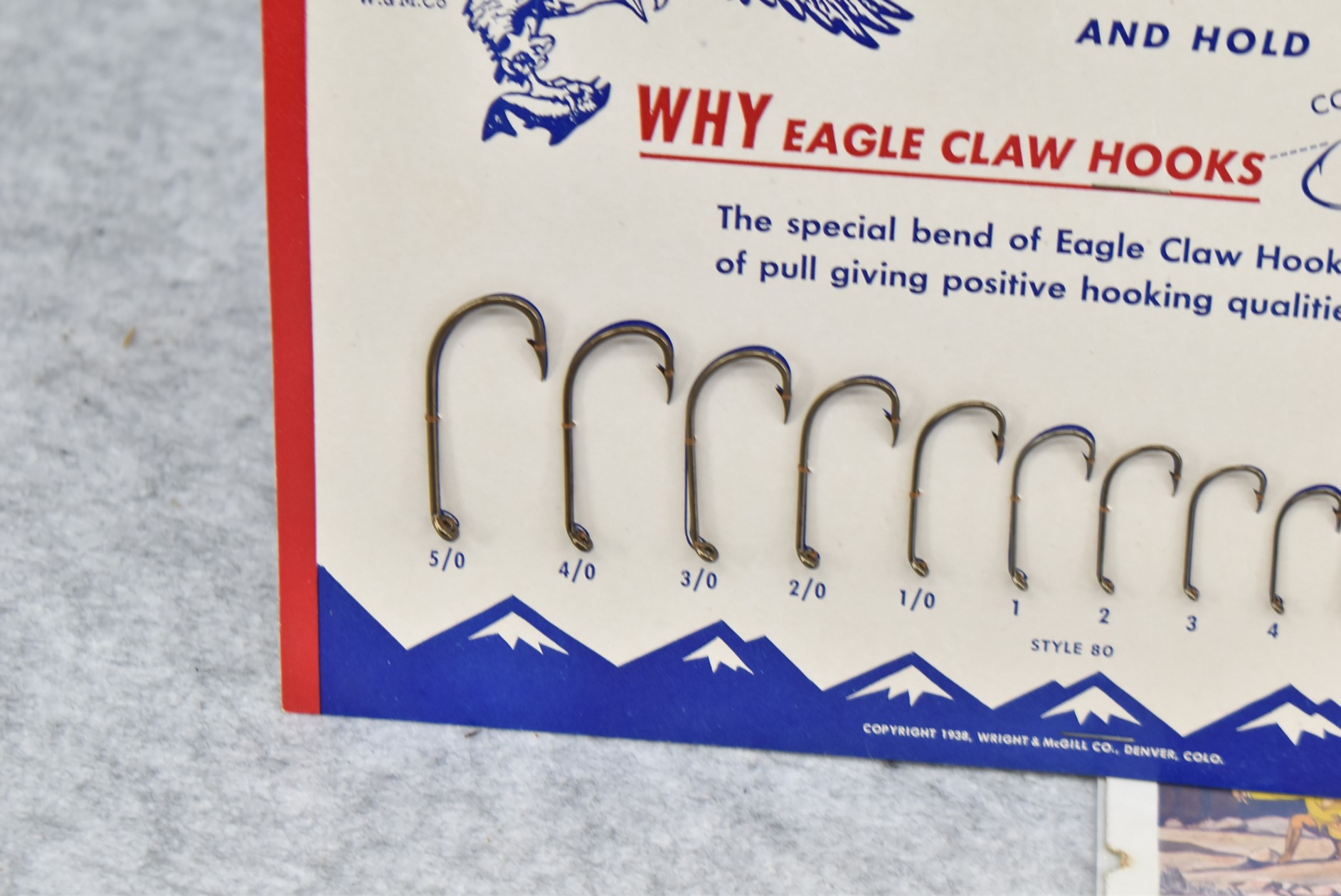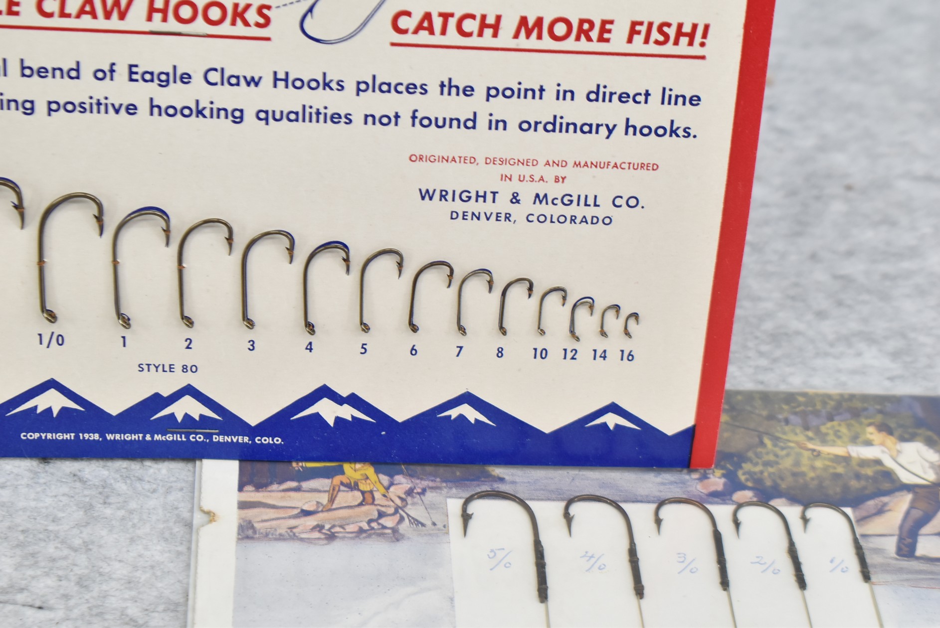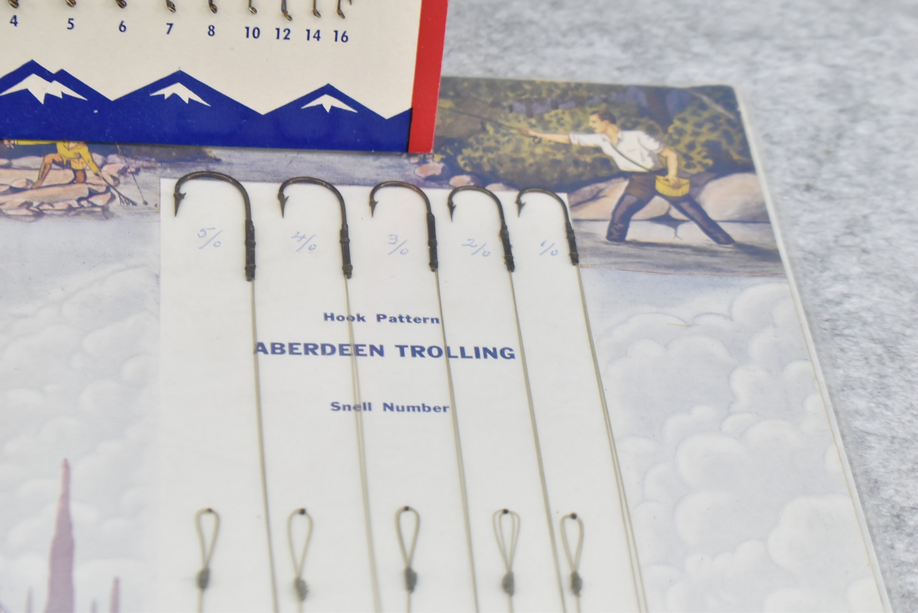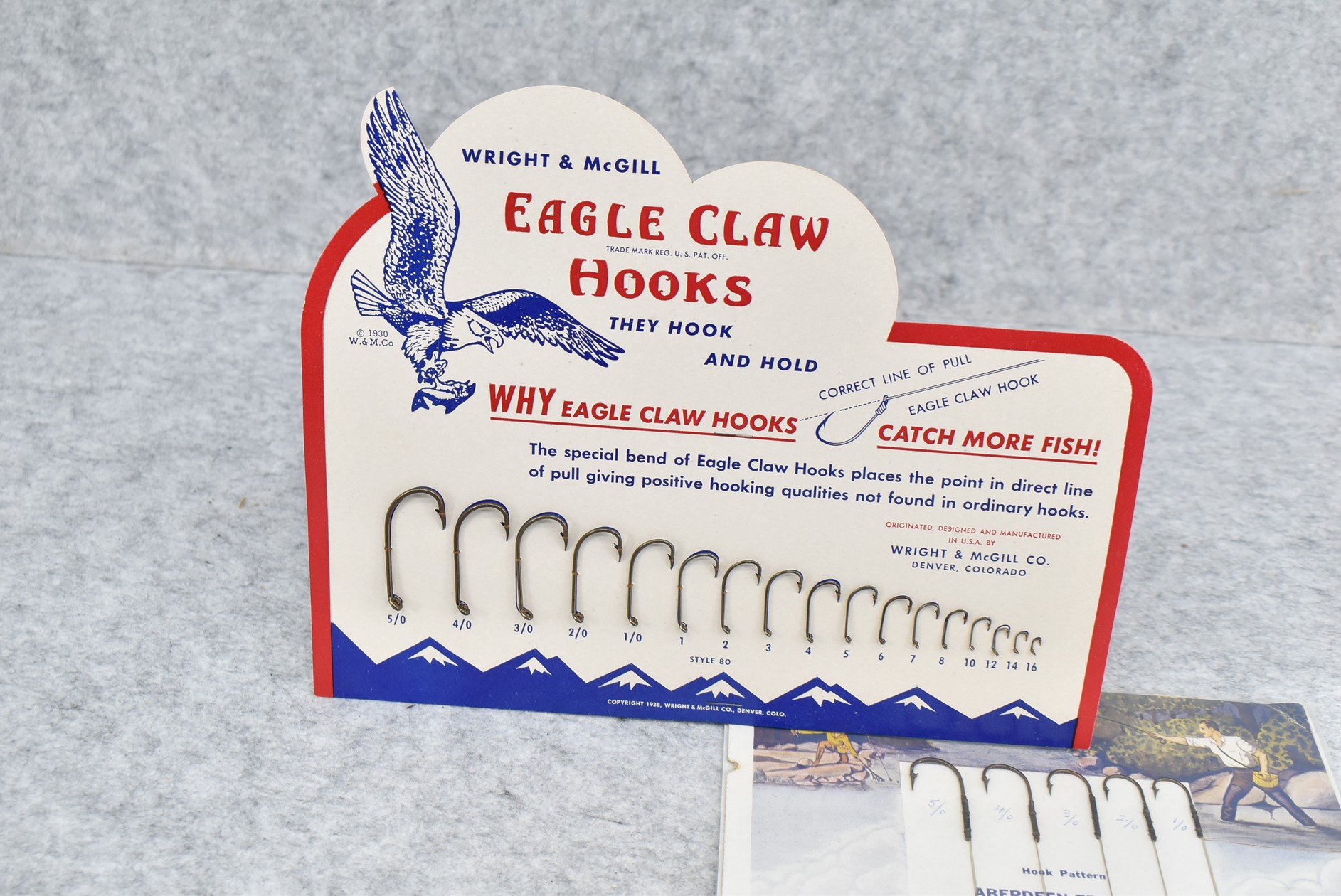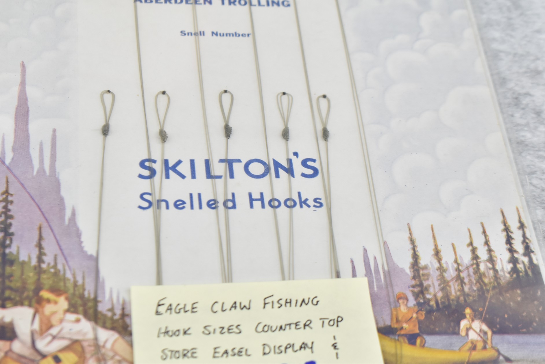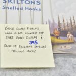 245. Lot Including: 1) Eagle Claw Fishing Hook Sized Countertop Store Easel Display. 2) Pack of Skilton’s Trolling Hooks
