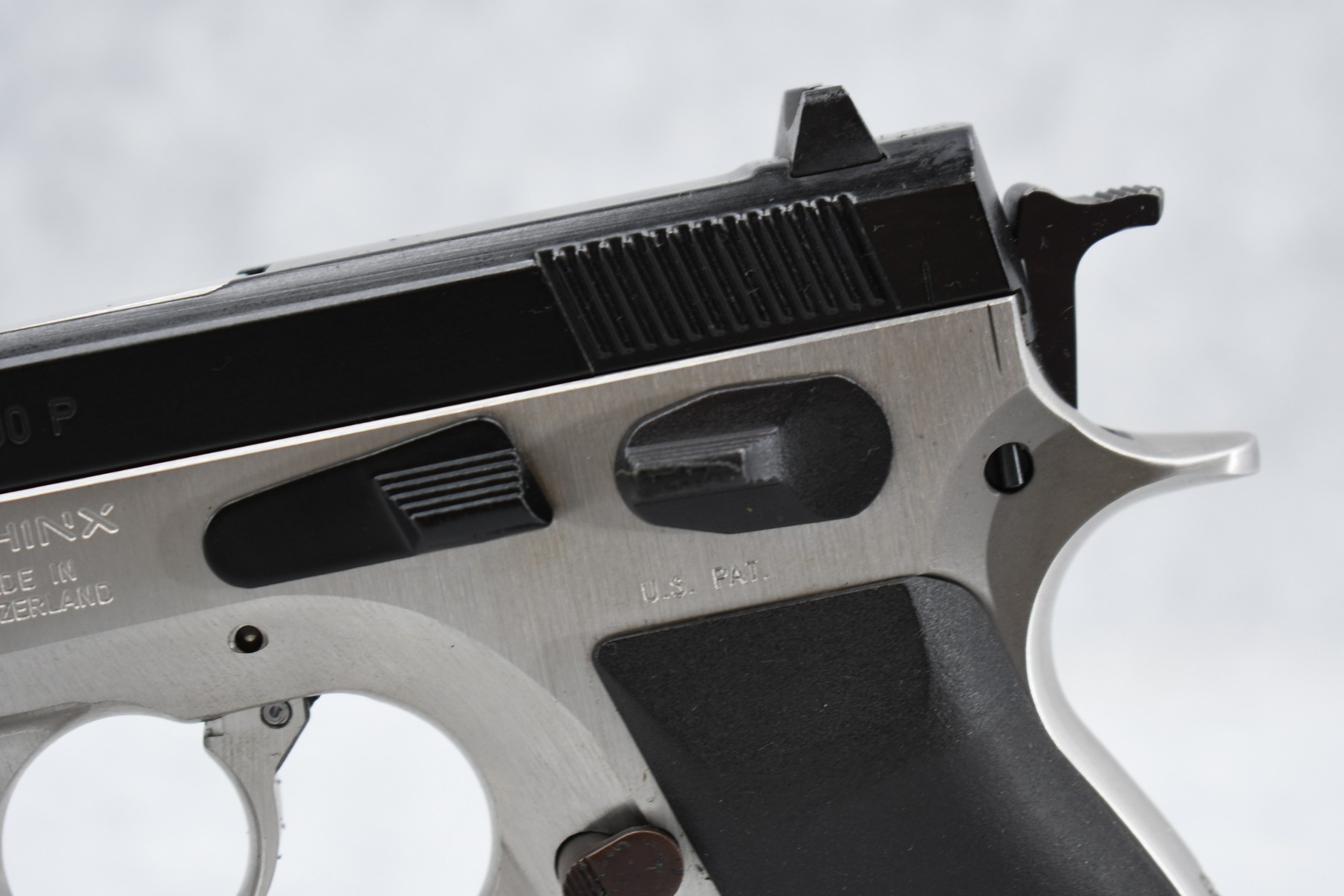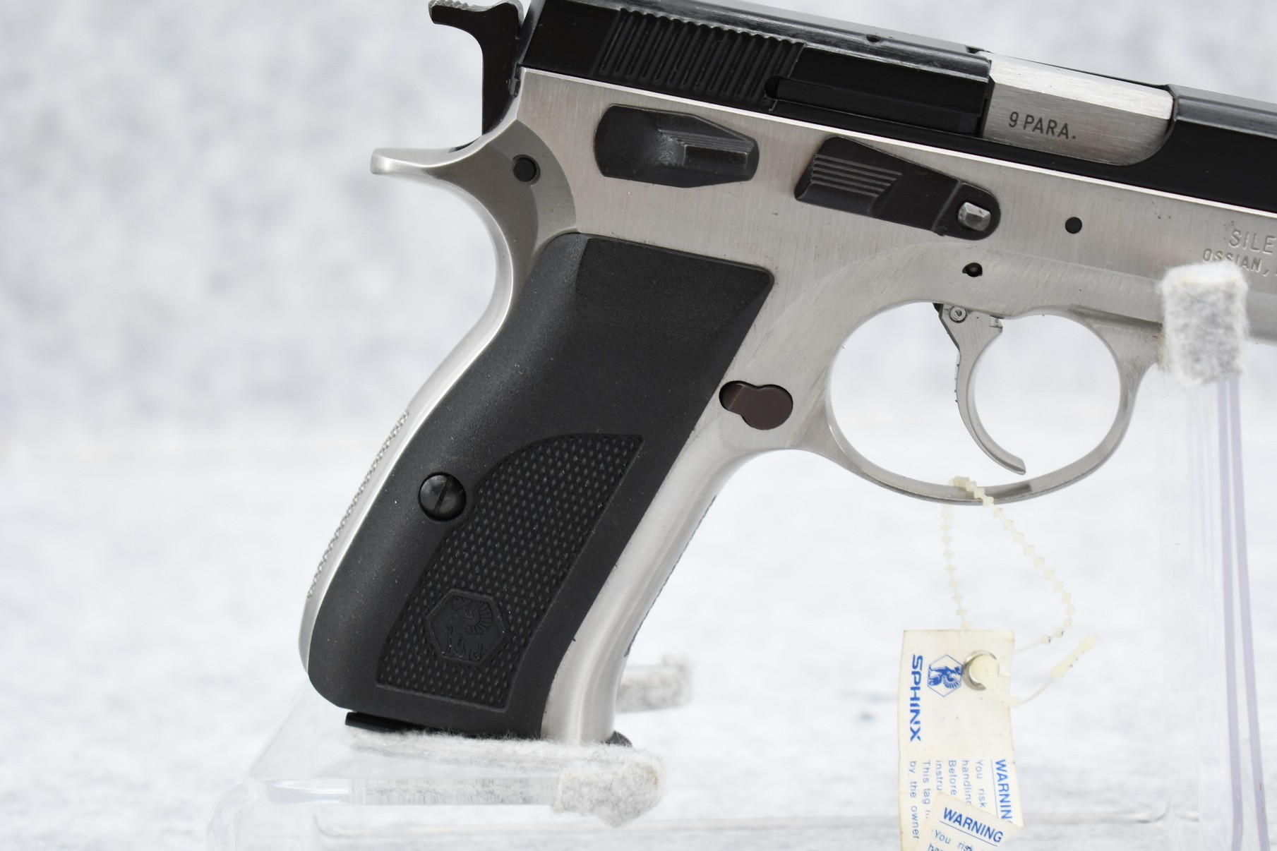 248R. Sphinx – Mod. AI 2000 P – 9mm Cal. Semi-Auto Pistol – w/3.5” Barrel w/Front & Rear Iron 3-Dot Sights – Stainless/Blued Two-Tone Finish – w/Factory Checkered Black Grip – Appears Unfired w/Factory Box, Magazine, Manual & Cleaning Kt – Only Mfg. Between 2004-2005