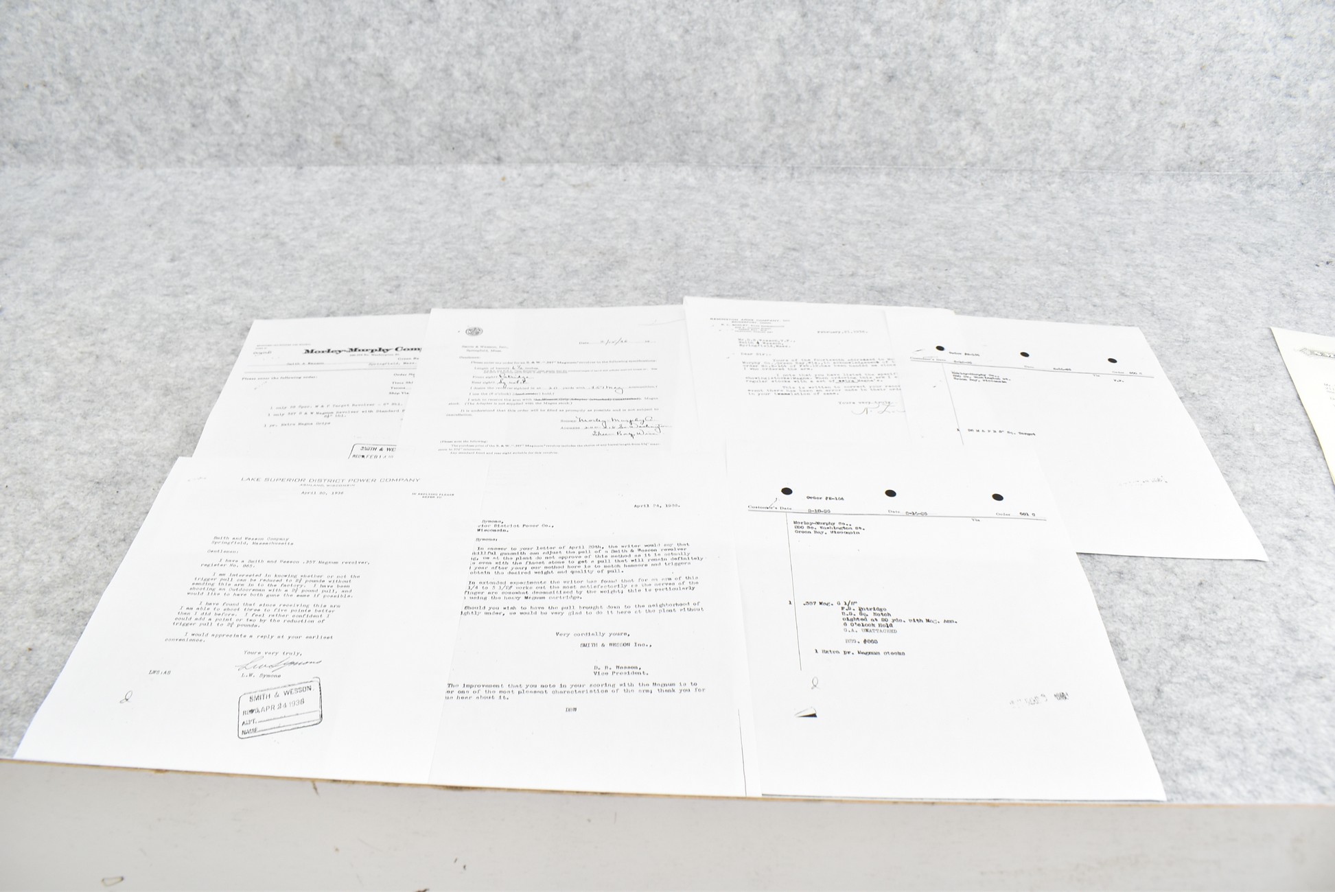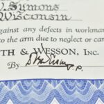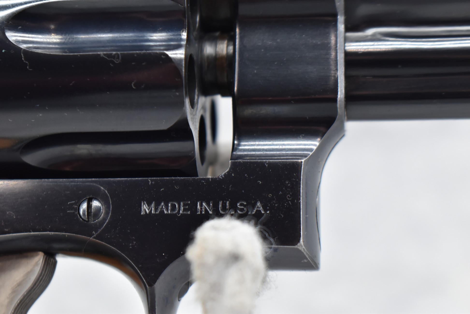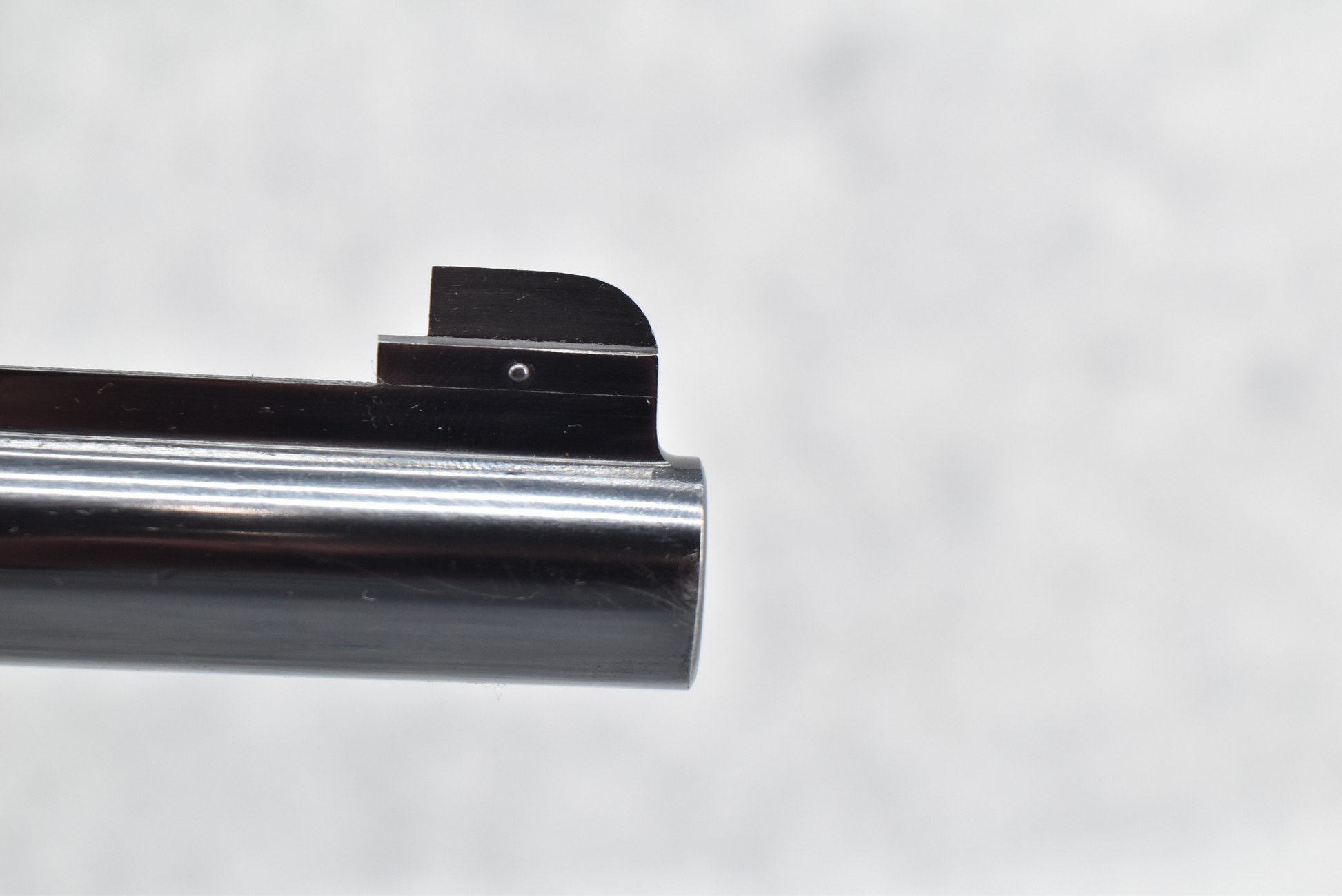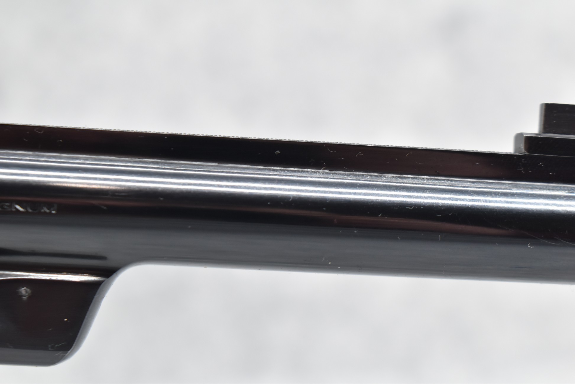 250R. Outstanding! Smith & Wesson .357 Registered Magnum Double Action Revolver – Chambered in .357 Magnum Cal. – Serial #47754 & Registered No. 865 – Gun Has a 6 ½” Barrel w/Finely Checkered Top Strap w/Pinned Partridge Front Sight & Adjustable Square Notch Rear Sights – This Revolver Retains an Excellent Amount of Original Blued Finish as Well as Vivid Case Colors on the Hammer & Trigger – Gun is Stocked w/Factory Diamond Checkered Square Butt Walnut Grips w/Silver S&W Medallion – Serial Numbers Match on Butt, Inside of Ejector Rod Shroud & on the Back of the Cylinder! – Registration Number is Stamped on the Yoke as “REG. 865” – These .357 Registered Magnums Were Introduced in 1935 & Temporarily Ceased in 1939 to Allow Smith & Wesson to Turn Their Attention to the War Effort. Every Revolver Was Manufactured to the Individuals Specifications & A Card Was Enclosed w/Each Gun. Once the Registration Card Was Filled Out & Returned, the Owner Received a Registration Certificate w/Their Name & Their Specific Gun’s Specifications. Accompanying This Gun is the Original Registration Certificate Stating the Original Owners Name, the Registration Number, Serial Number, Barrel Length, Front & Rear Sights, Single & Double Action Trigger Pulls, What Yardage it Was Sighted in at, Hold & Ammo Used – Even Scarcer Than Having the Certificate is Having the Original Shipping Tube the Certificate Was Shipped in, Which This Gun Does! This Gun is Also Accompanied by a Smith & Wesson Factory Letter Confirming its Features as Well as Copies from Smith & Wesson of the Original Correspondence Between the Original Purchaser & Smith & Wesson! This is Truly a Rare Ensemble & a Must for Any Smith & Wesson Collector!!