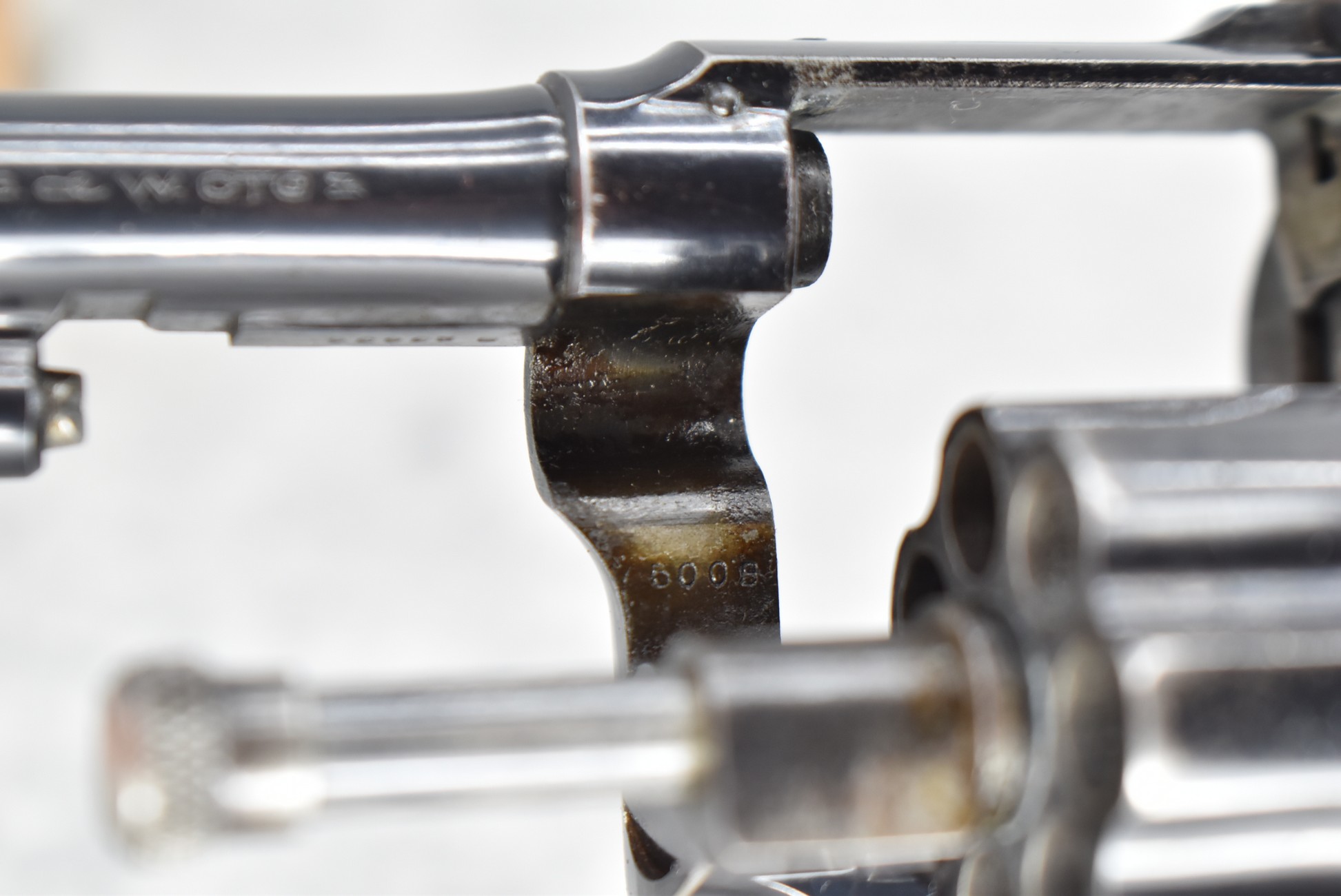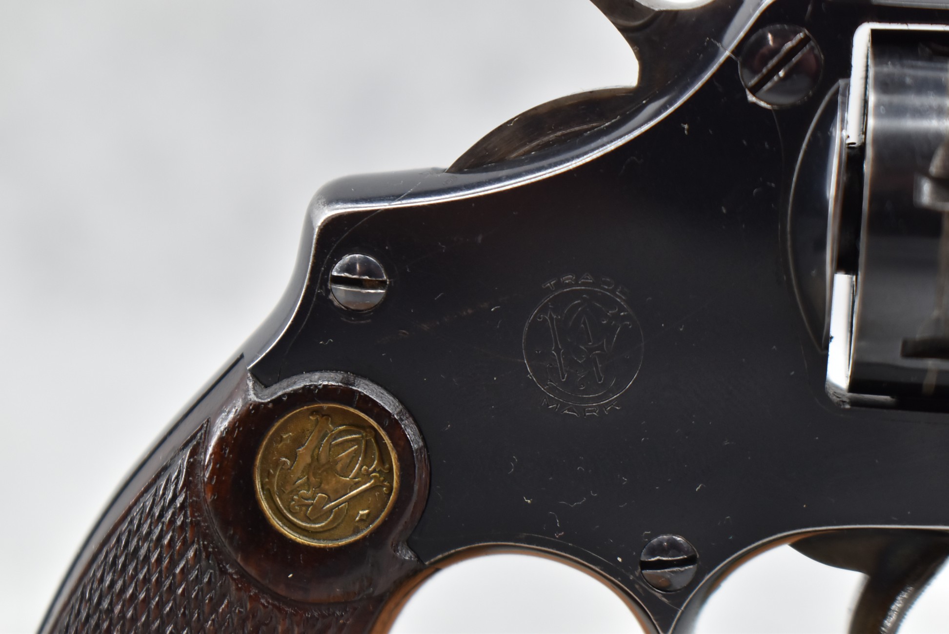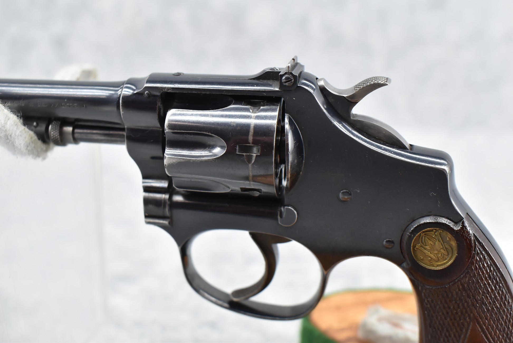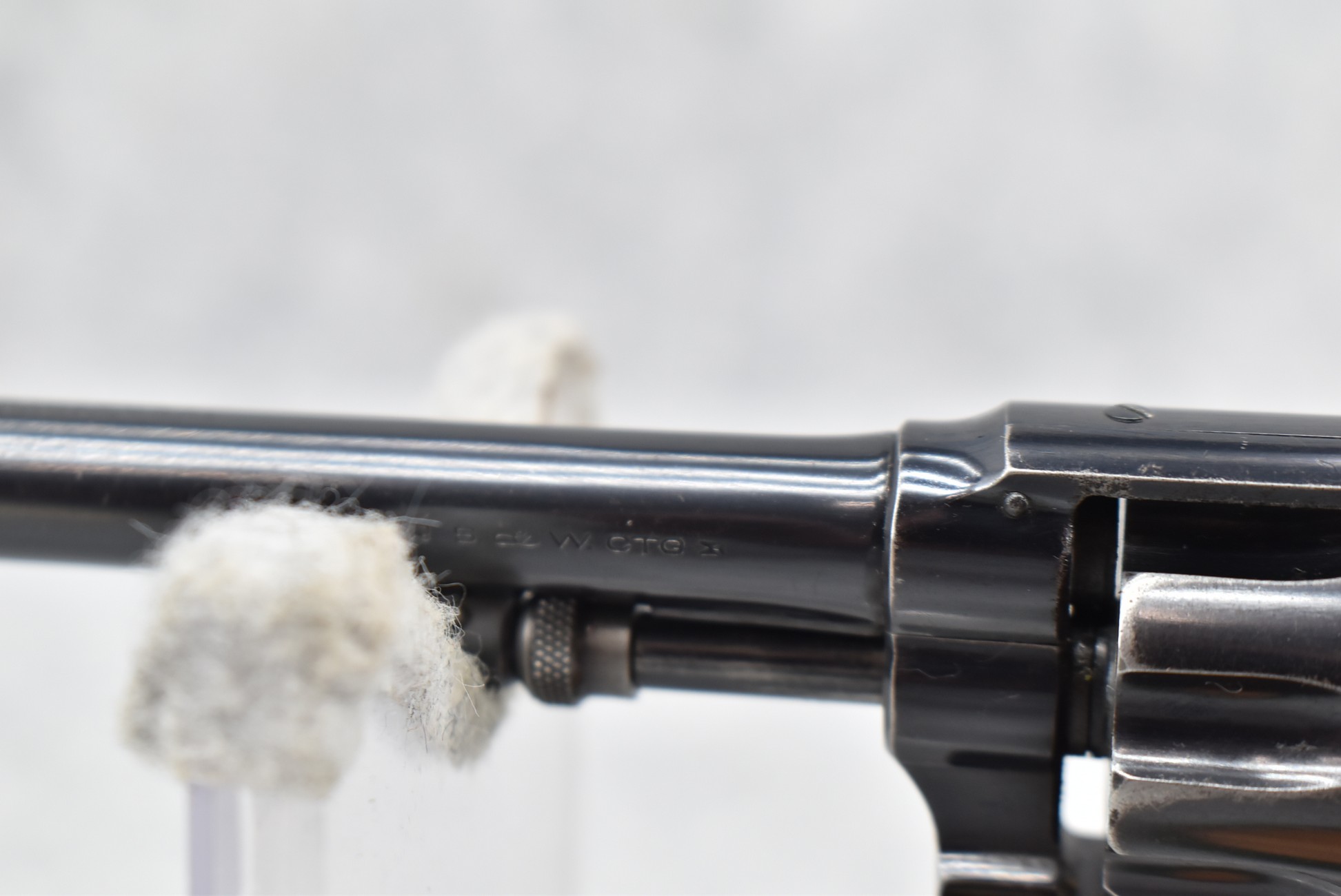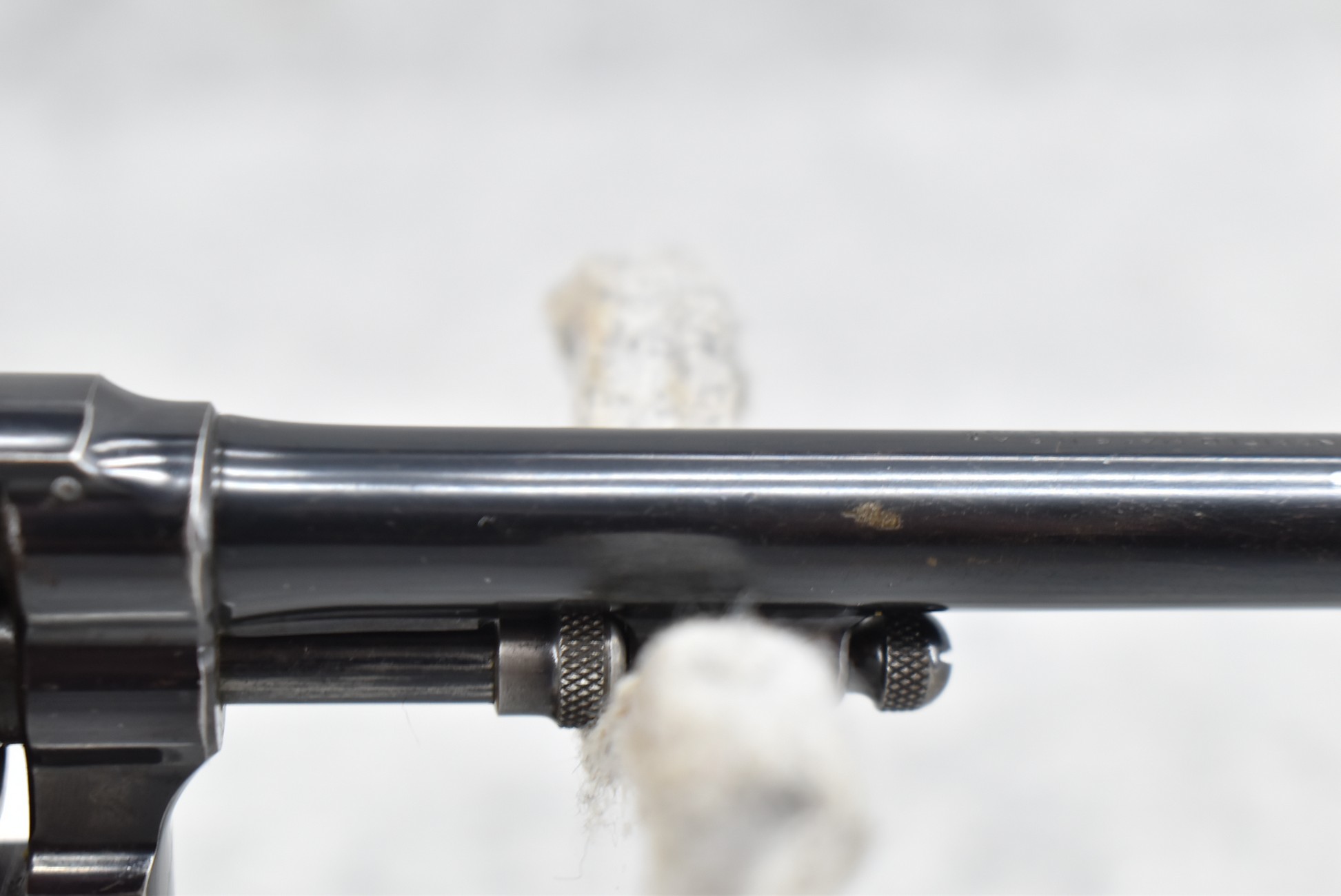 252R. Smith & Wesson – Mod. .22 Ladysmith 3rd Model “Target” (5-Screw) – 22 Long Cal. Double Action Revolver – w/6” Barrel w/Pinned Pained Front Sight & Adj. Rear Sight – Blued Finish – w/Factory Diamond Checkered Walnut Grips w/S&W Medallion – Serial Numbers Match on the Butt, Underside of Barrel & Back of Cylinder – Gun is Accompanied by a Smith & Wesson Factory Letter Confirming the Gun’s Features Including the Factory Special Order Checkered Trigger! – Only 12,203 Mfg. Between Circa 1910-1921