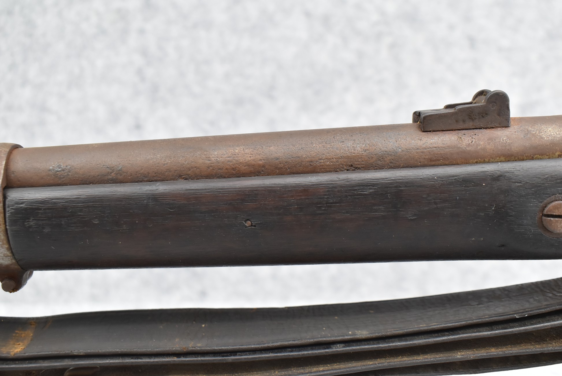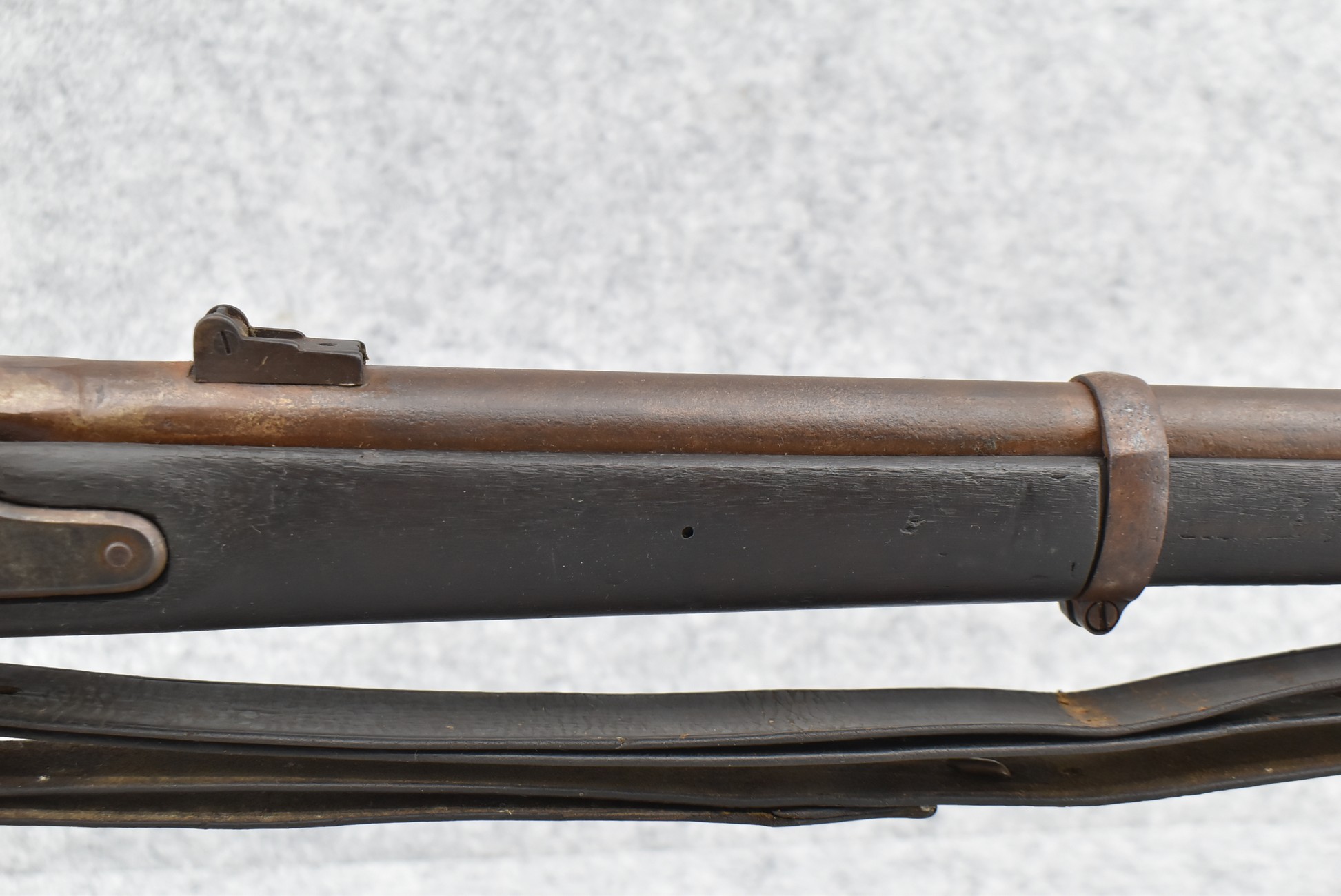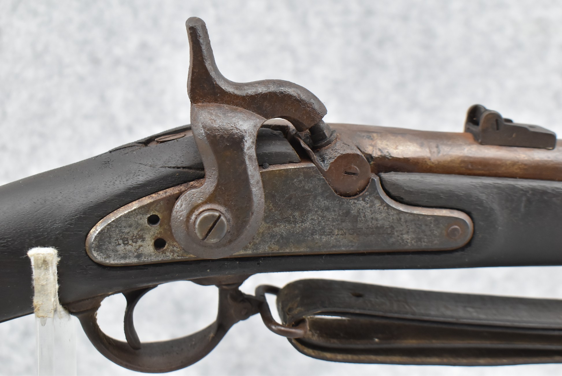 253. U.S. Springfield – Mod. 1863 Rifle-Musket Type II – 58 Cal. Percussion Rifled Musket – w/40” Round Barrel w/Blade Front & Leaf Rear Sights – Brown Finish – w/Straight Grip Full Wood Military Stock Secured by 3 Barrel Bands w/Metal Butt Plate – w/Leather Sling – w/Ram Rod – Mfg. Between 1864-1865 w/255,040 Being Mfg