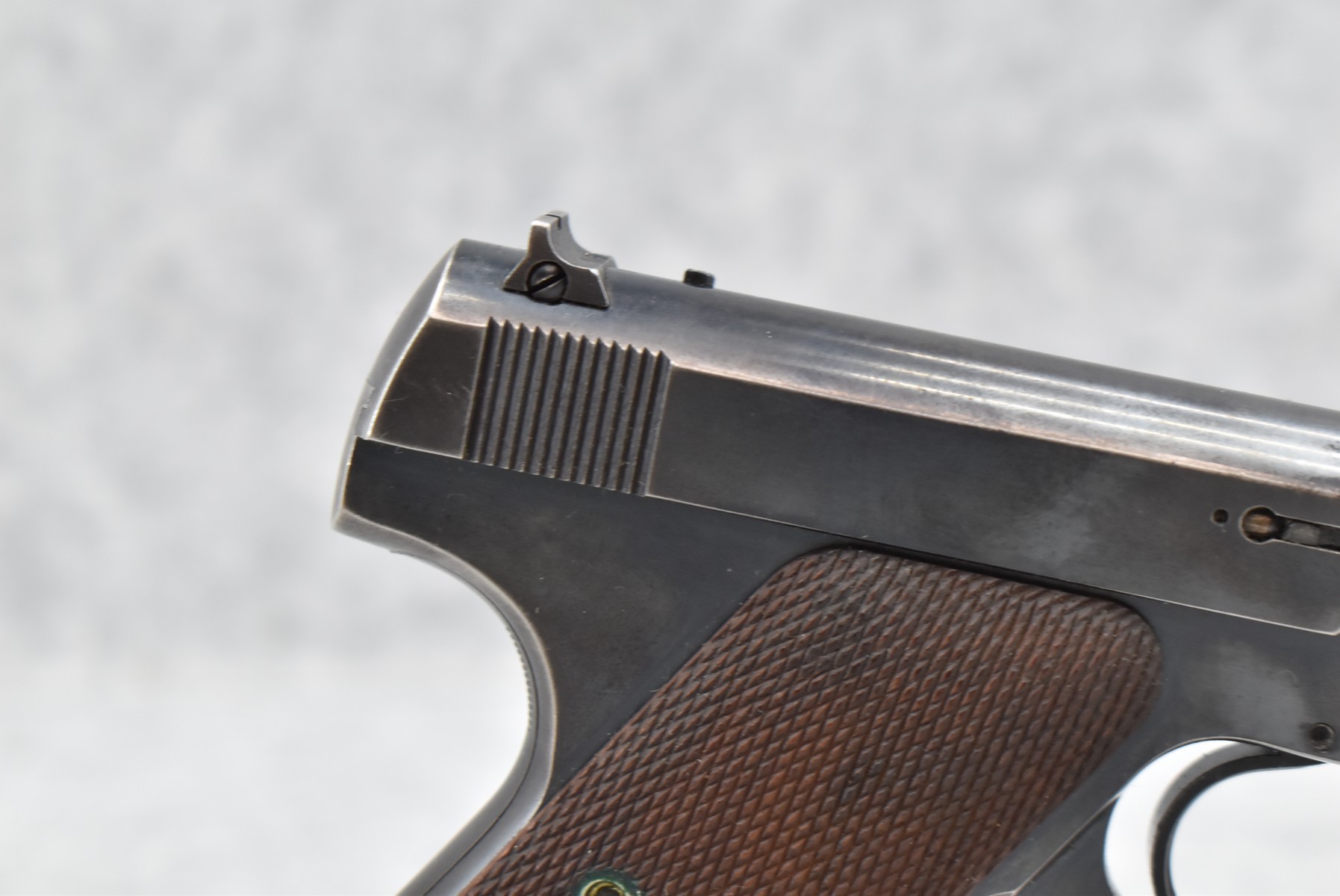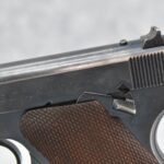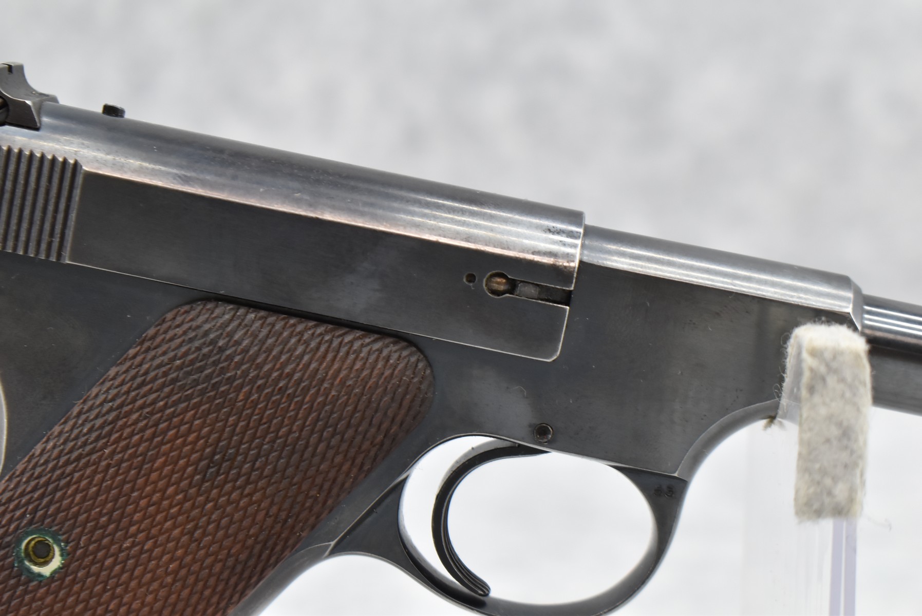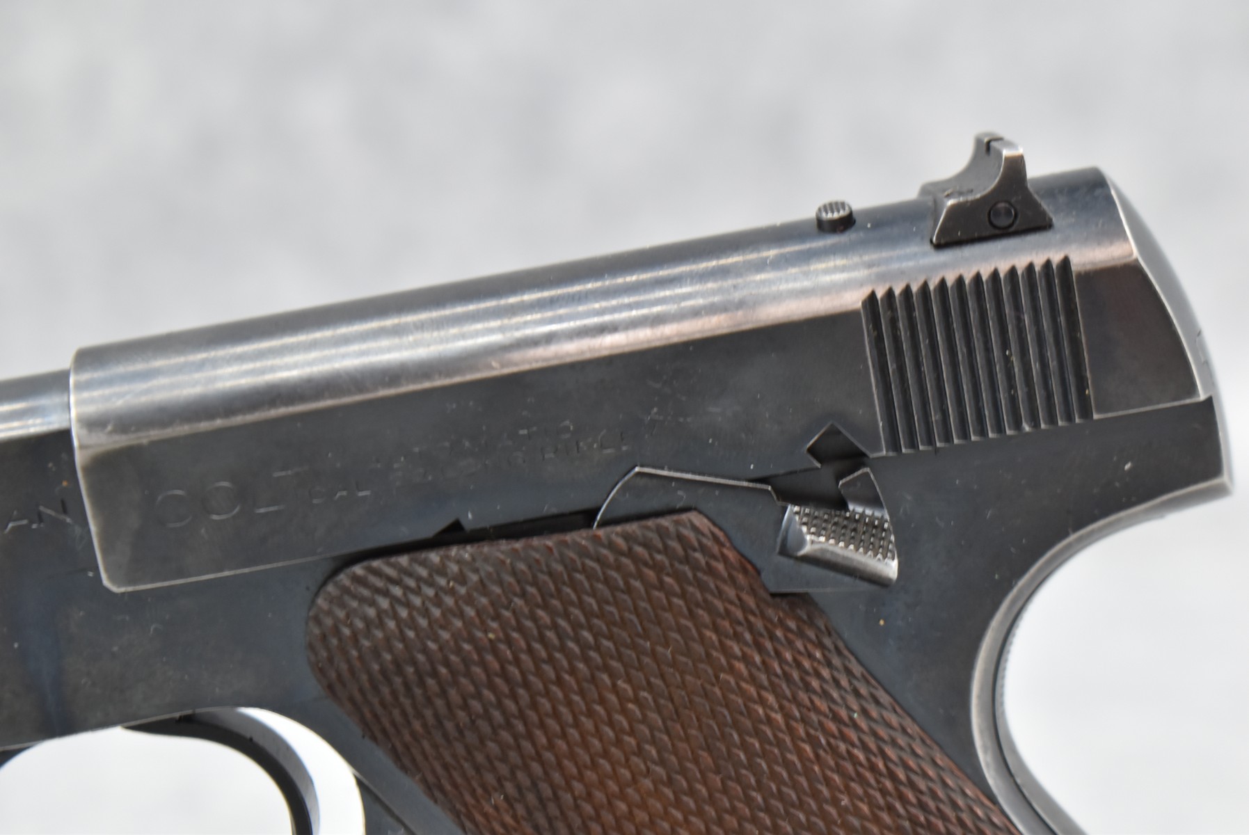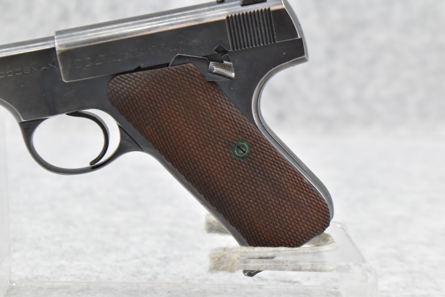 254R. Colt – Mod. The Woodsman – 22LR Cal. Semi-Auto Pistol – w/4½” Barrel w/Front Blade and Rear Square Notch Iron Sights – Blued Finish – w/Factory Checkered Wood Grips – w/Factory Two-Toned Colt Magazine