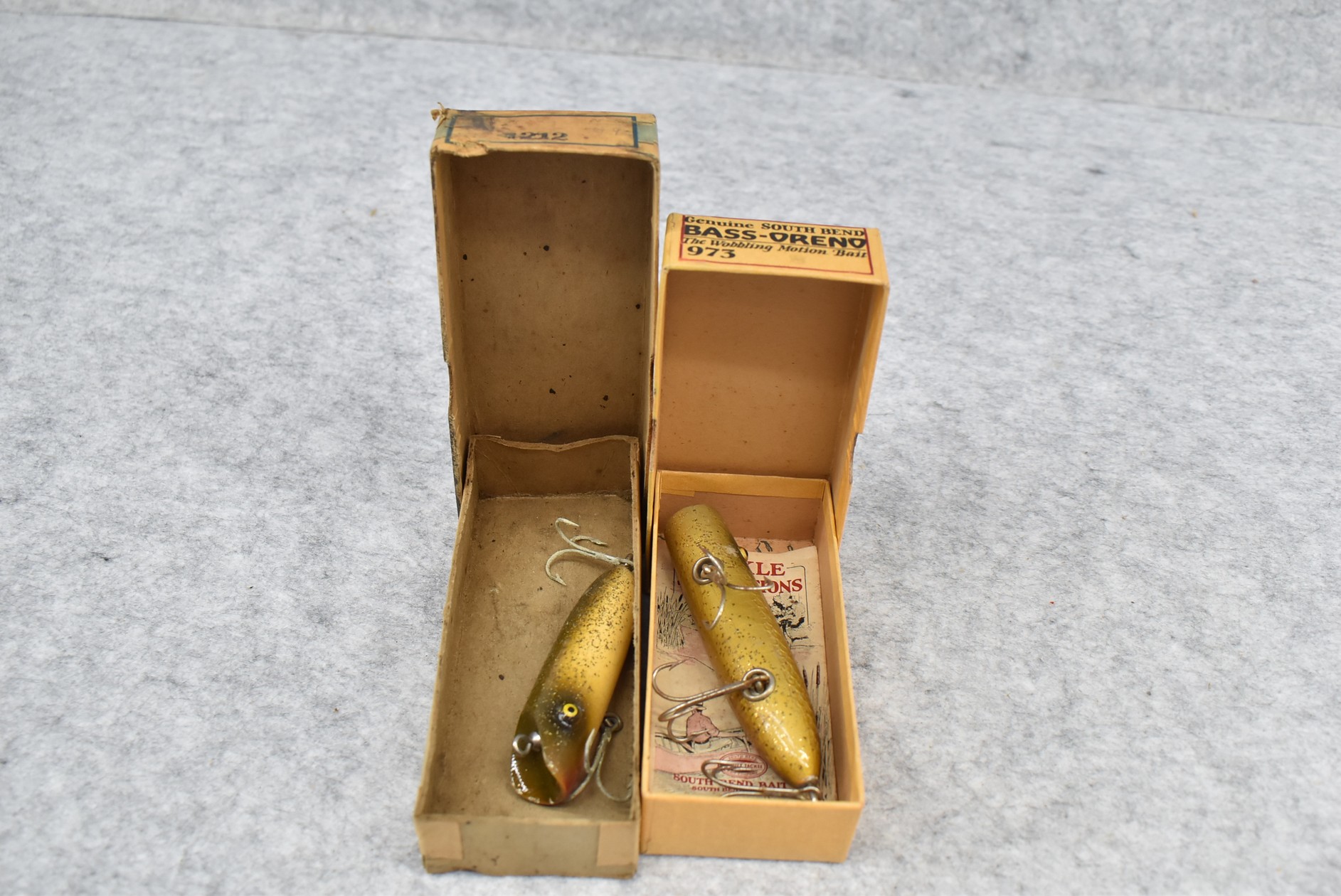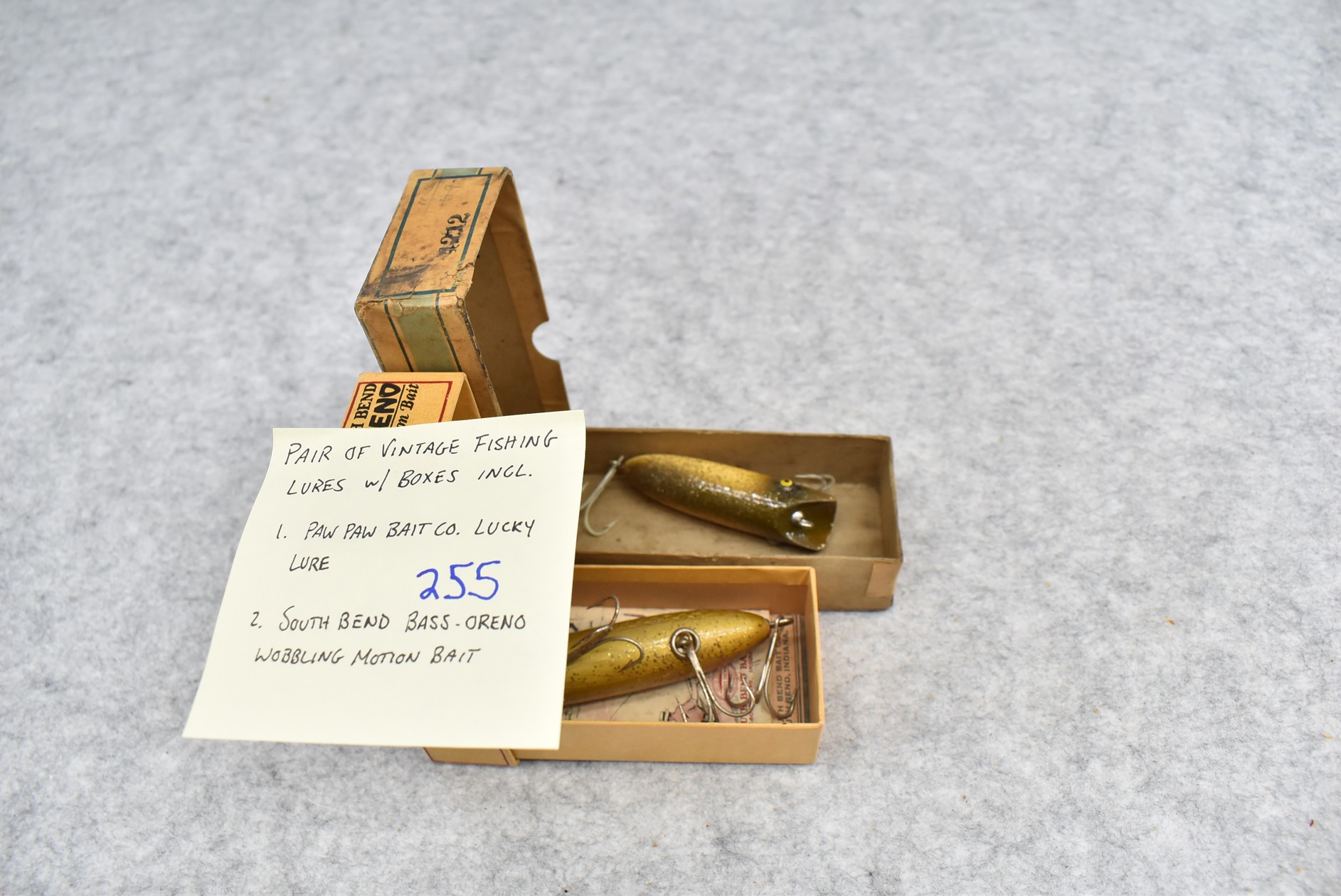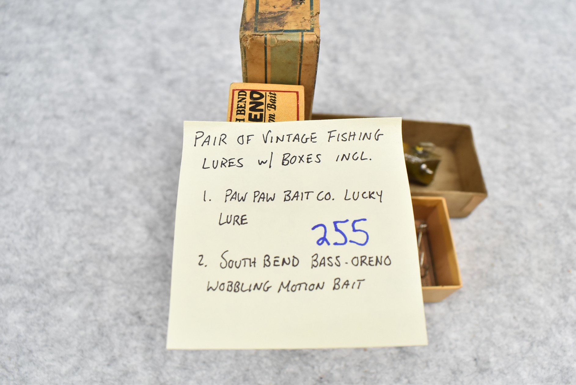 255. Pair of Vintage Fishing Lures w/Boxes Including: 1) Paw Paw Bait Co. Lucky Lure. 2) South Bend Bass-Oreno Wobbling Motion Bait