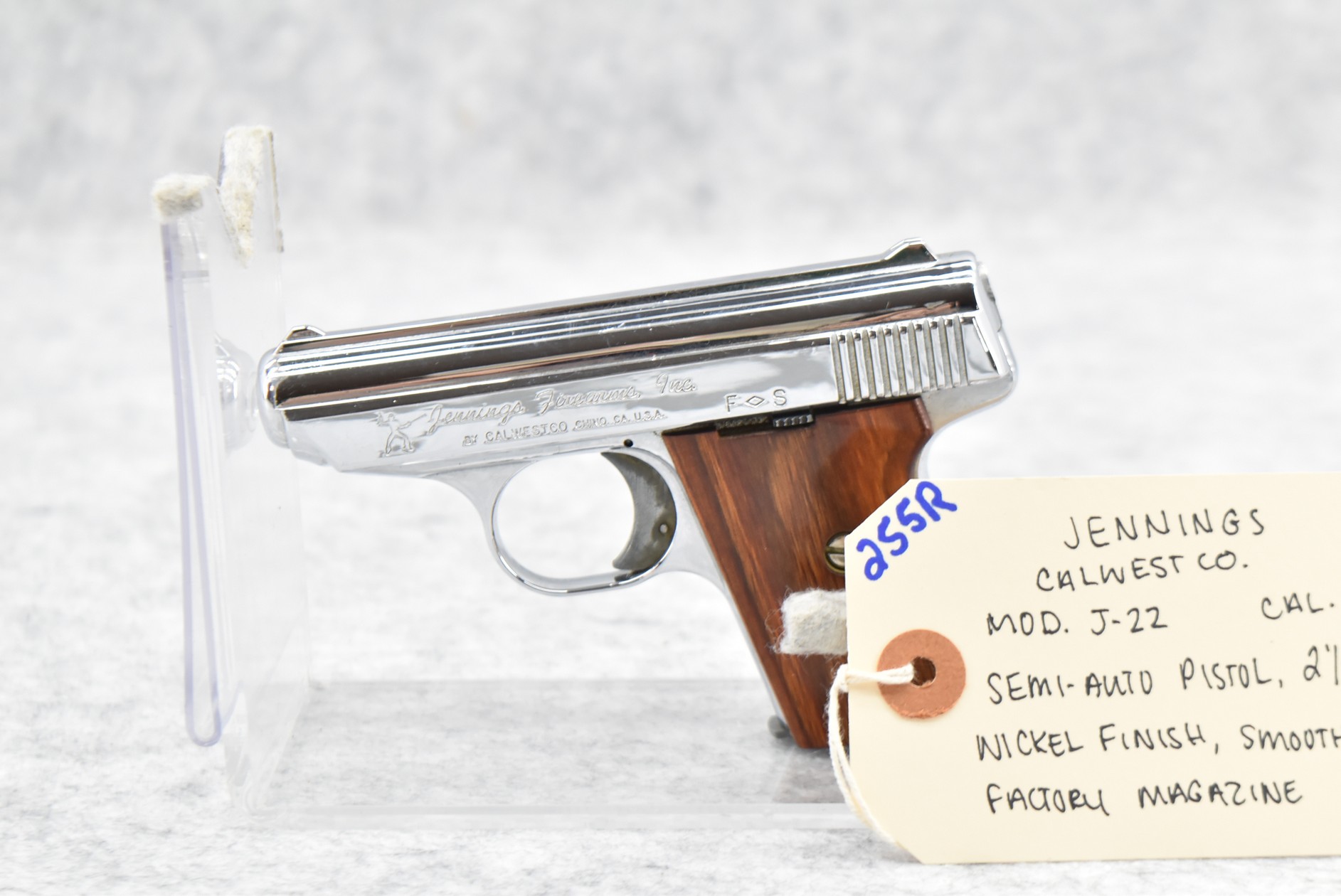 255R. Jennings Calwest Co. – Mod. J-22 – 22LR Cal. Semi-Auto Pistol – w/2 ¼” Barrel w/Iron Sights – w/Smooth Wood Grip – w/Factory Mag (CANNOT GO TO MARYLAND!)