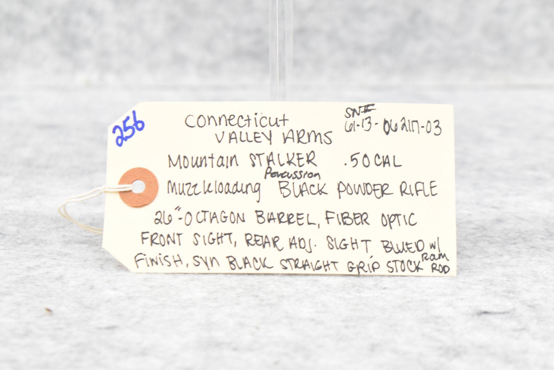 256. Connecticut Valley Arms – Mod. Mountain Stalker – 50 Cal. Muzzleloading Percussion Black Powder Rifle – w/26” Octagon Barrel w/Fiber Optic Front Sight & Rear Adj. Sight – Blued Finish – w/Synthetic Black Straight Grip Stock – w/Ram Ro