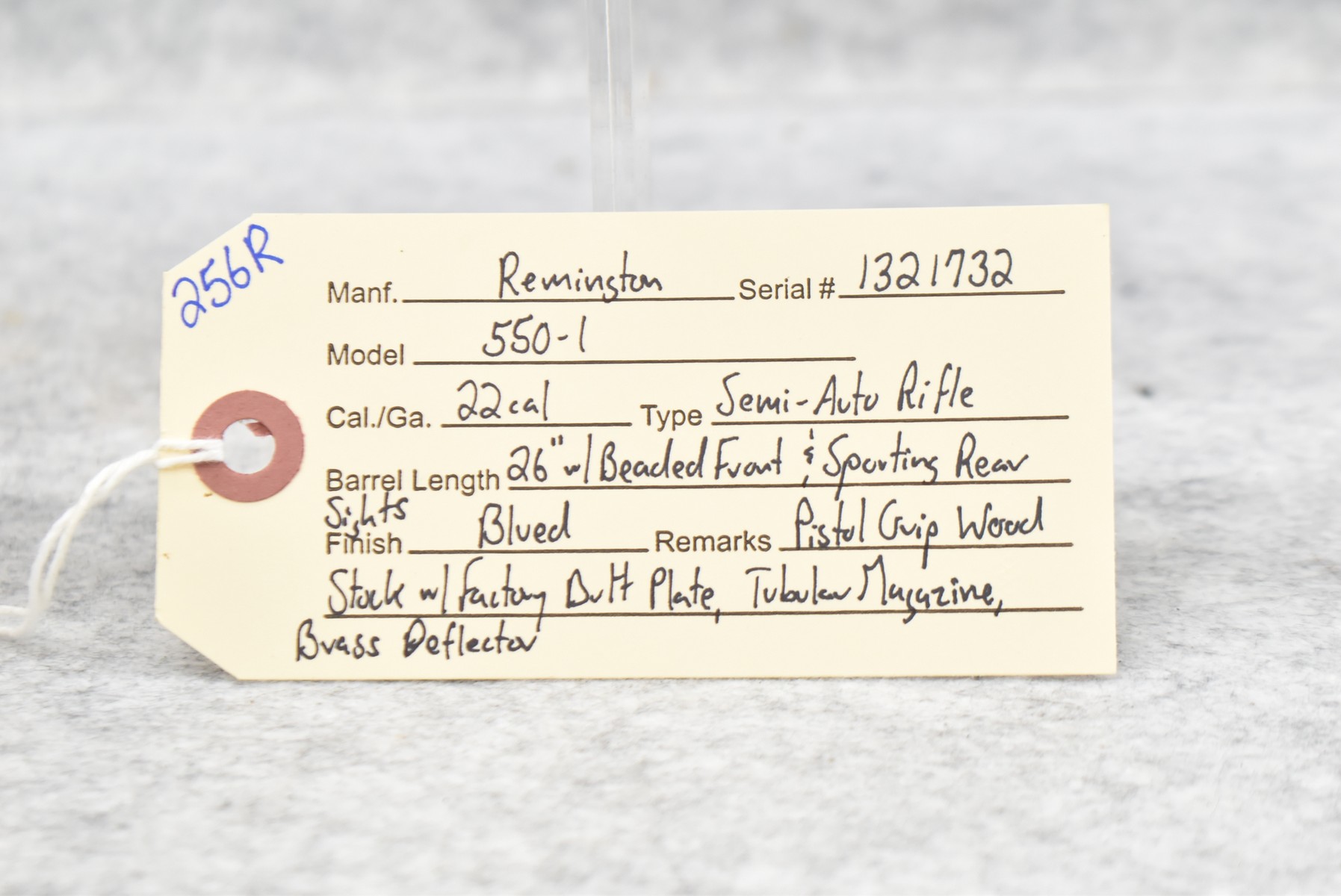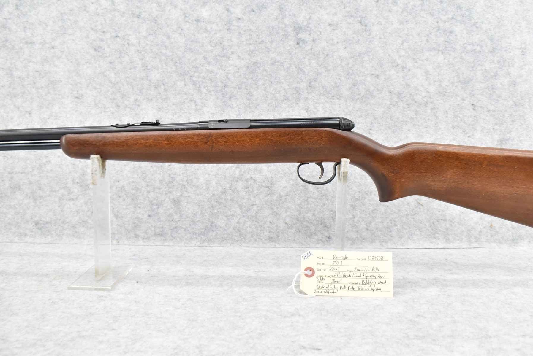 256R.     Remington – Mod. 550-1 – 22 Cal. Semi-Auto Rifle – w/26” Barrel w/Beaded Front & Sporting Rear Sights – Blued Finish – w/Pistol Grip Wood Stock w/Factory Butt Plate – w/Tubular Magazine – w/Brass Shell Deflector