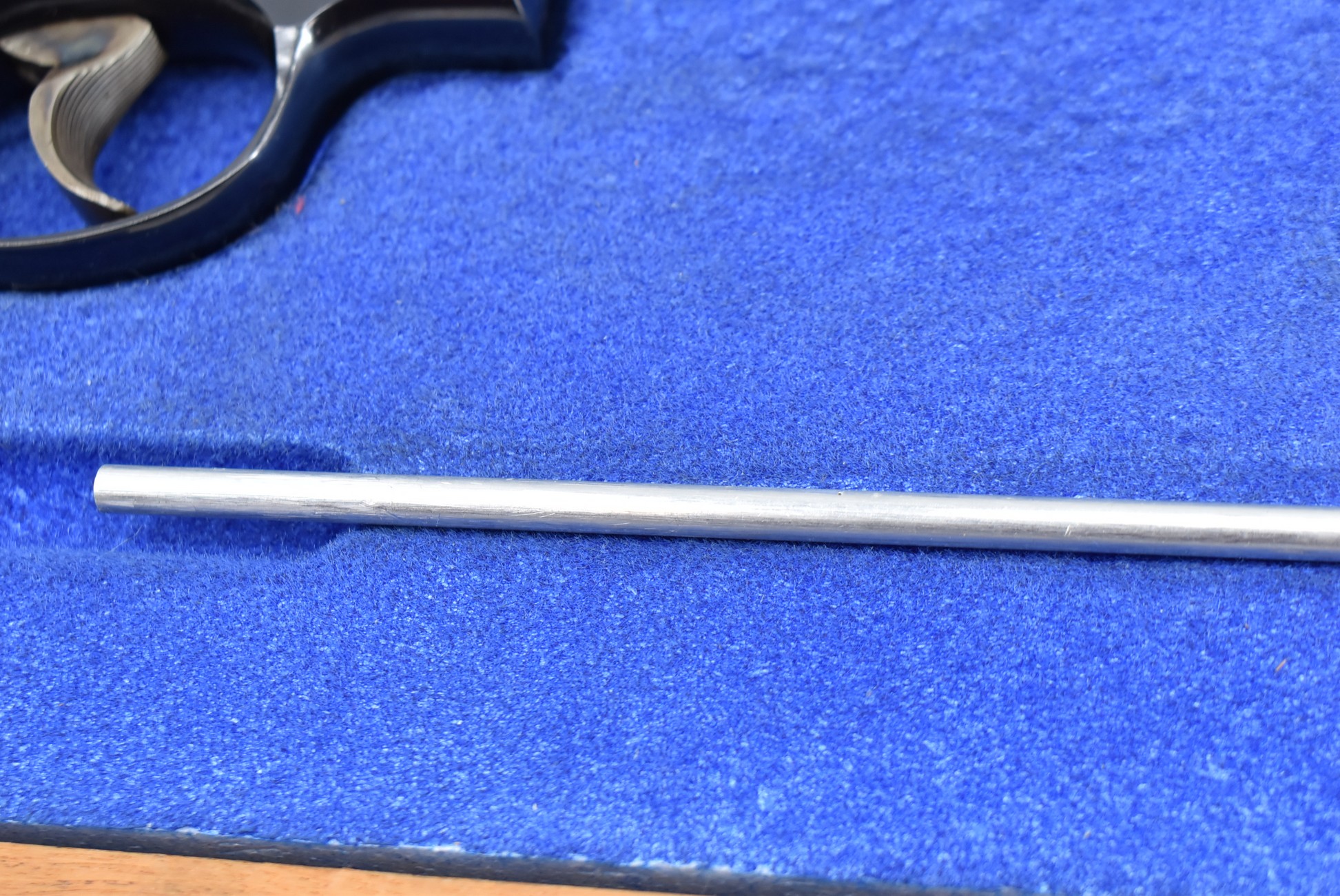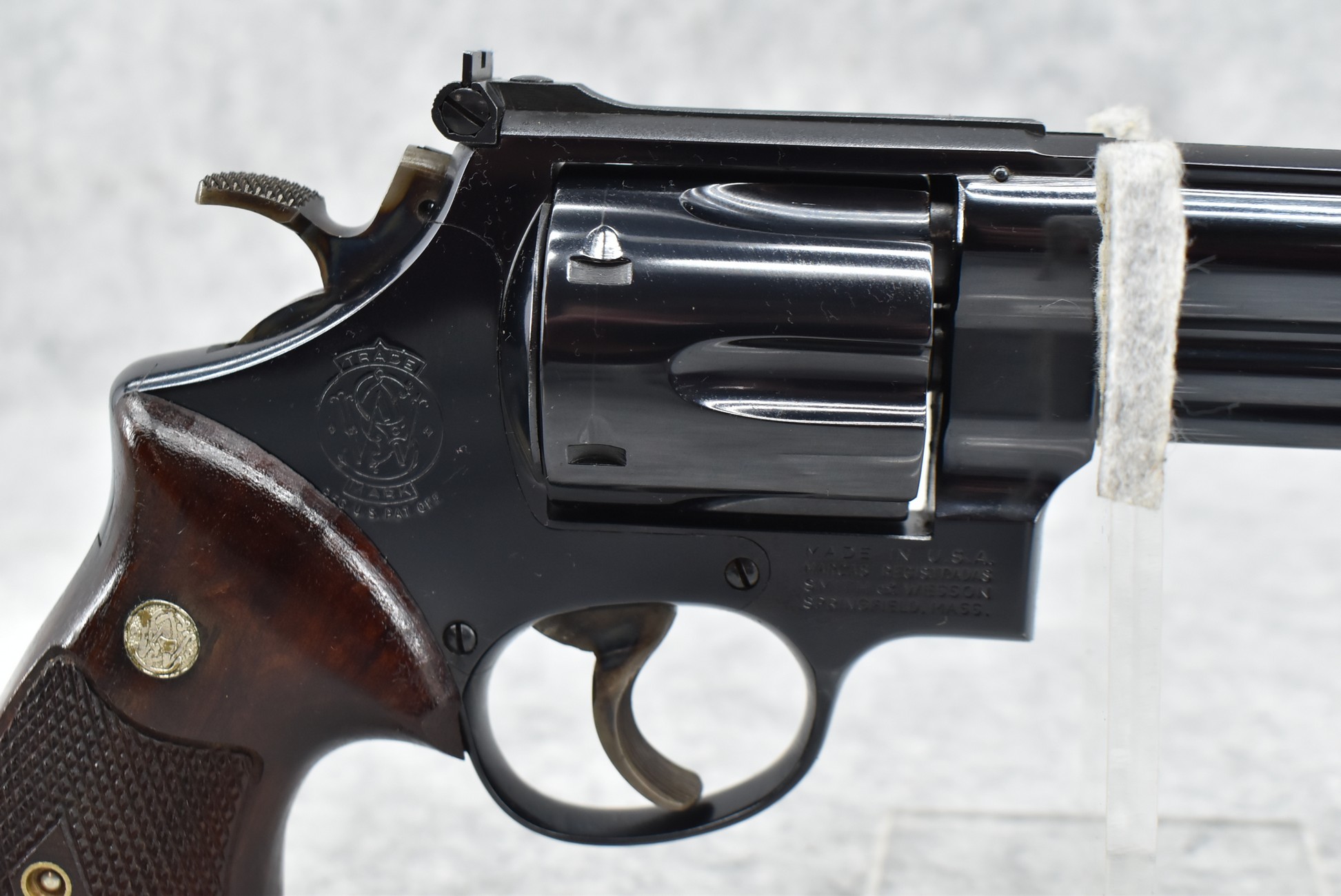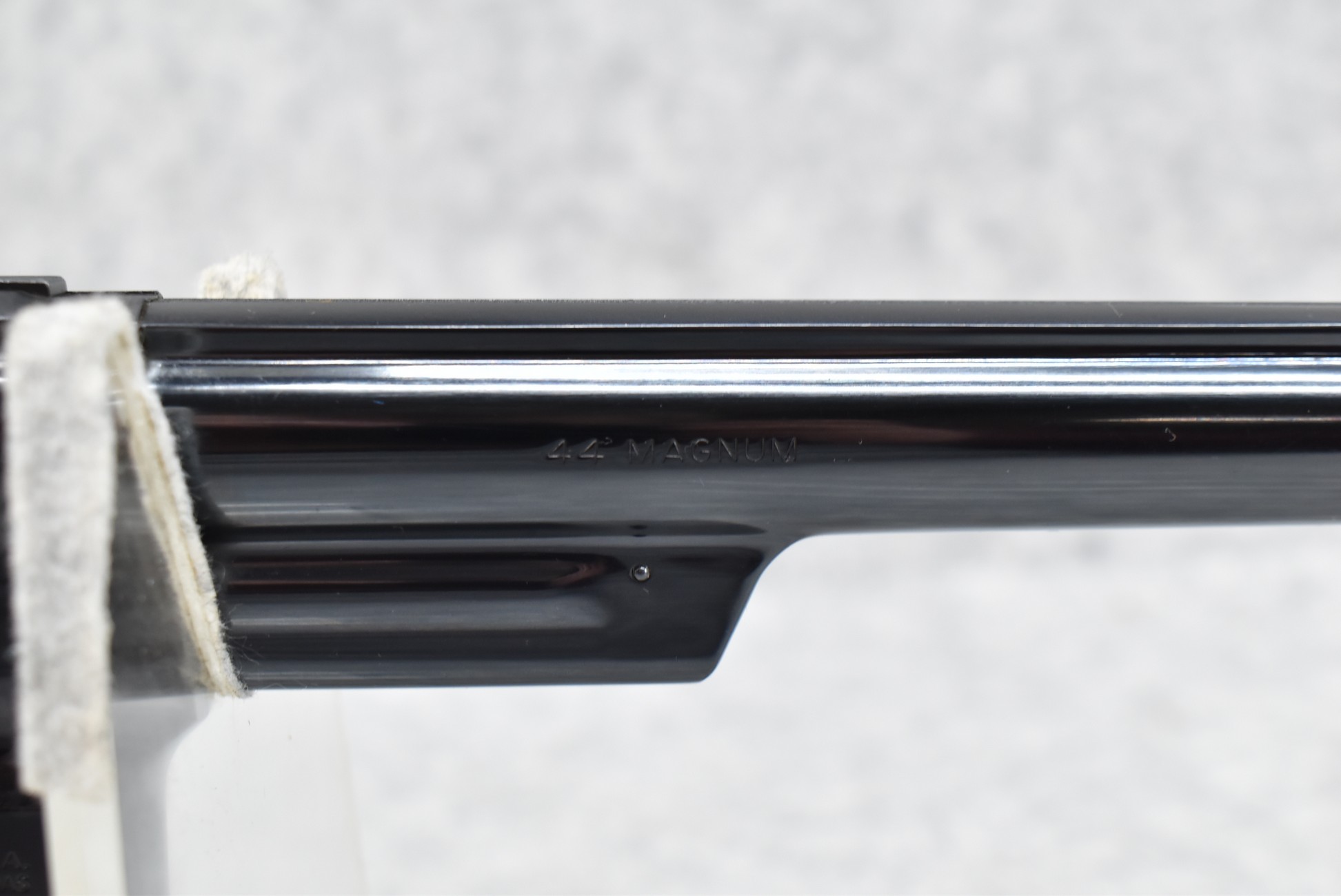 257R. Smith & Wesson – Mod. 29-2 (3-Screw) – 44 Mag. Cal. Double Action Revolver – w/8 3/8” Barrel w/Red Blade Front & Rear Adj. White Outlined Target Sights – Blued Finish – w/Factory Checkered Wood Target Grip, Factory Target Trigger & Target Hammer – 3 T’s – w/Factory Wooden Presentation Box w/Blue Felt, Factory Manual, Cleaning Tools w/Rod & Swab & Screwdriver – Mfg. Around 1964-1965