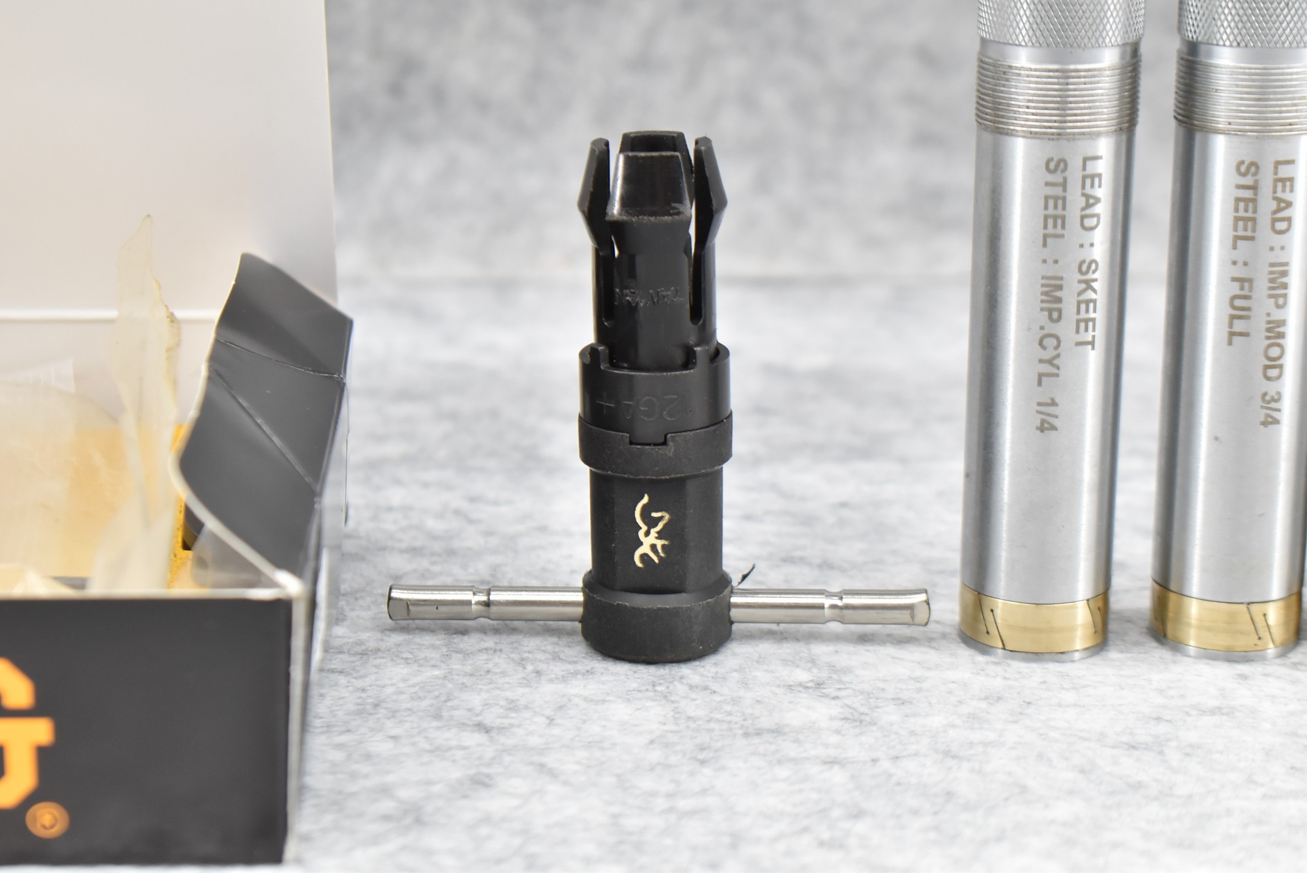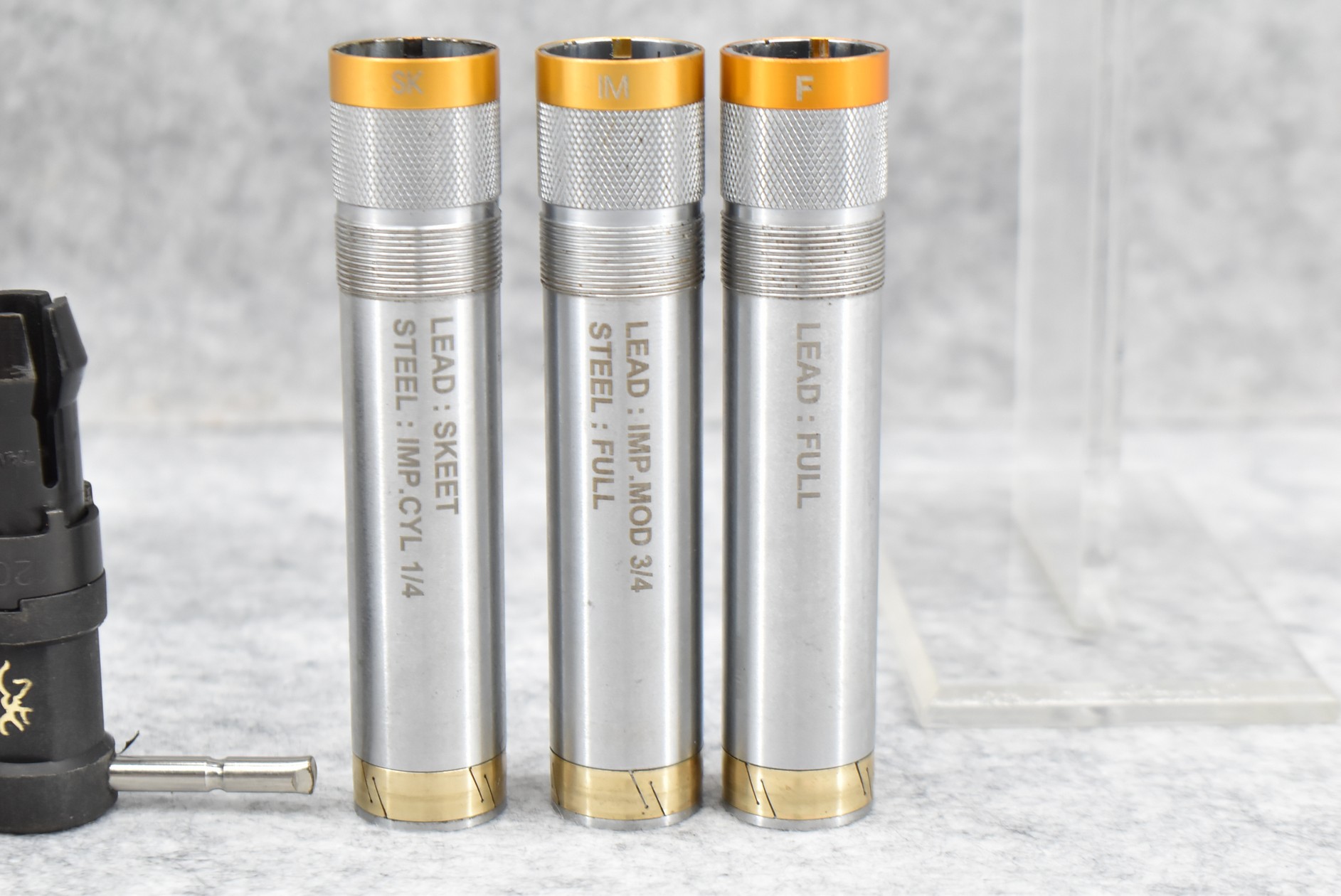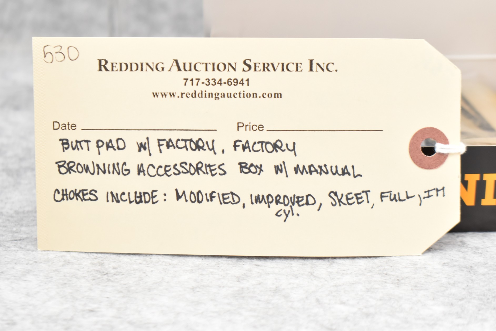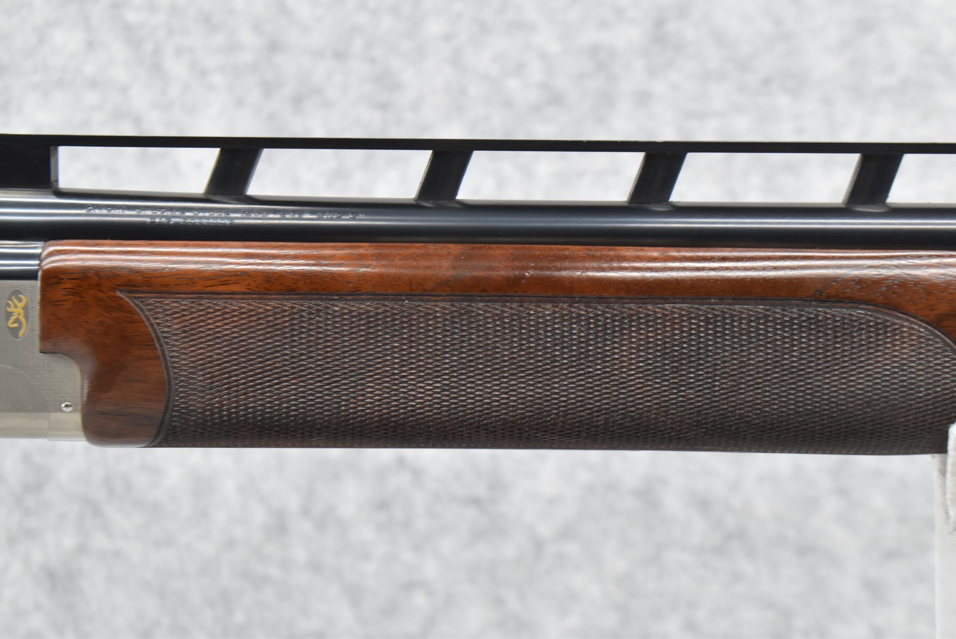25R. Browning – Mod. Citori 725 Sporting – 12ga. 3” Over-Under Shotgun – w/30” Invector Plus Extended Choked, High Vent-Rib, Vent Ported Blued Finish Barrels w/Hi-Viz Fiber Optic Front & Rear Bead Sights – Silver Finish Receiver – w/Checkered Wood Pistol Grip Stock w/Adj. Cheek Comb & Morgan Adj. Butt Pad – w/Factory Chokes, 5 Extra Long (Chokes Include: Modified, Improved Cyl., Skeet, Full, & IM) – w/Manual, Additional Butt Pad & Browning Accessories