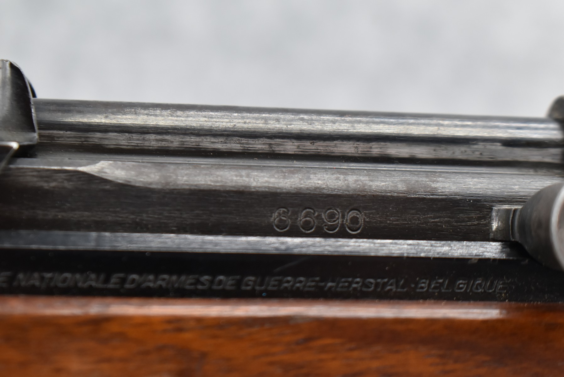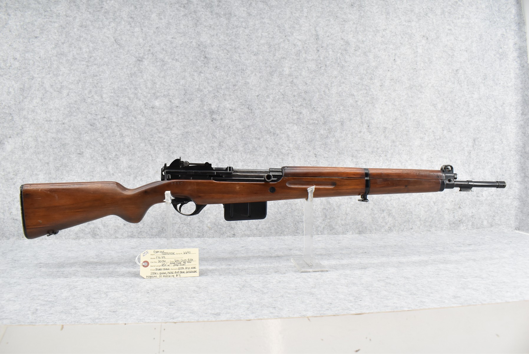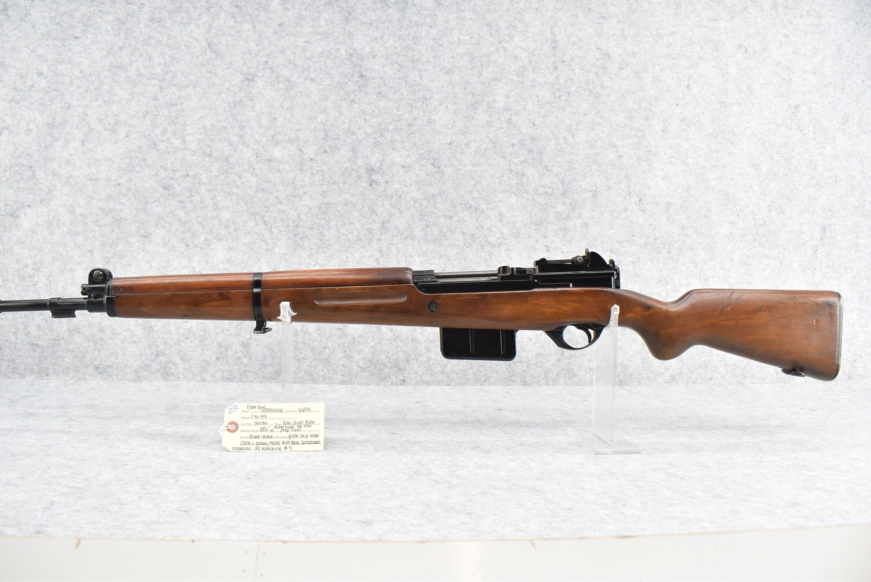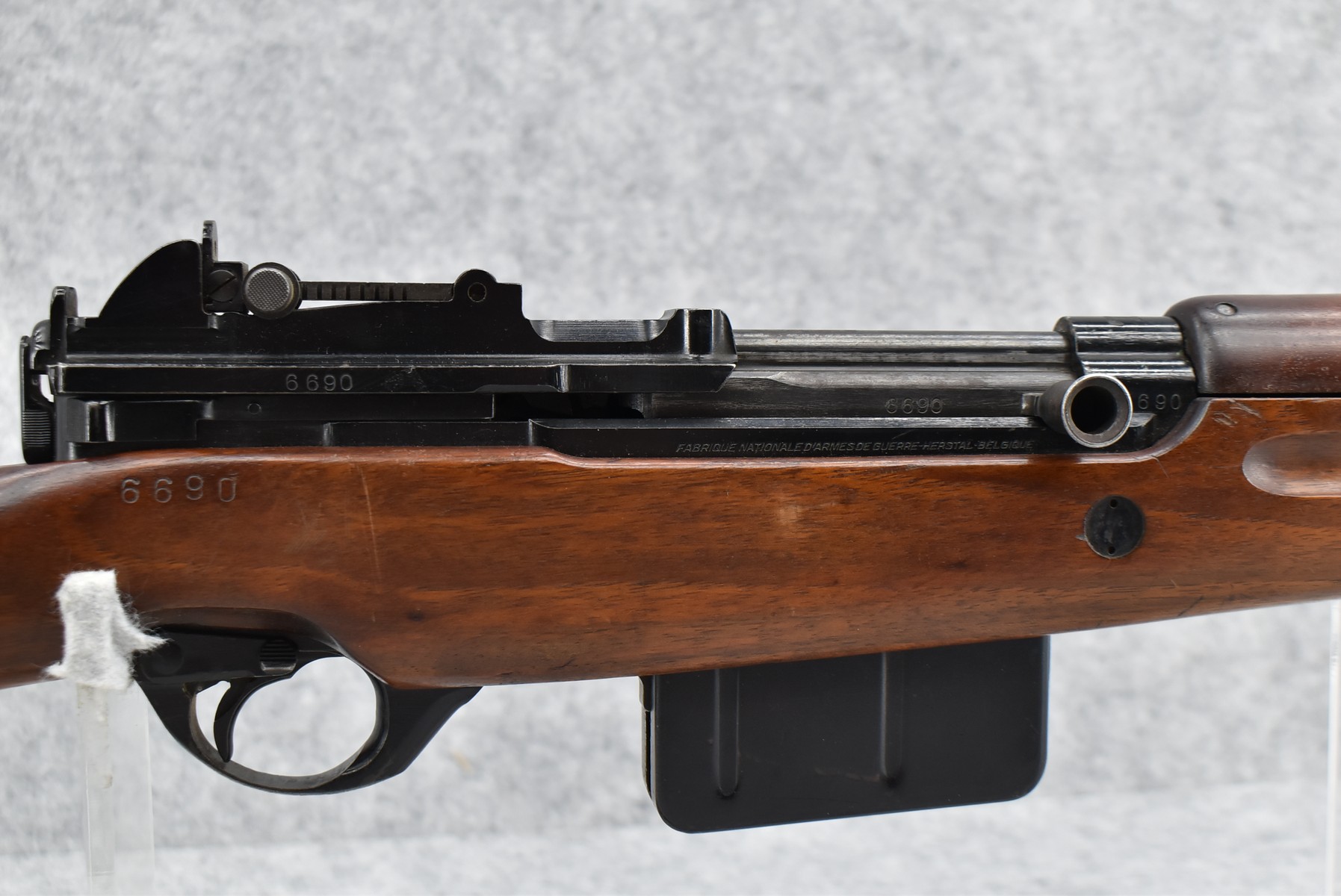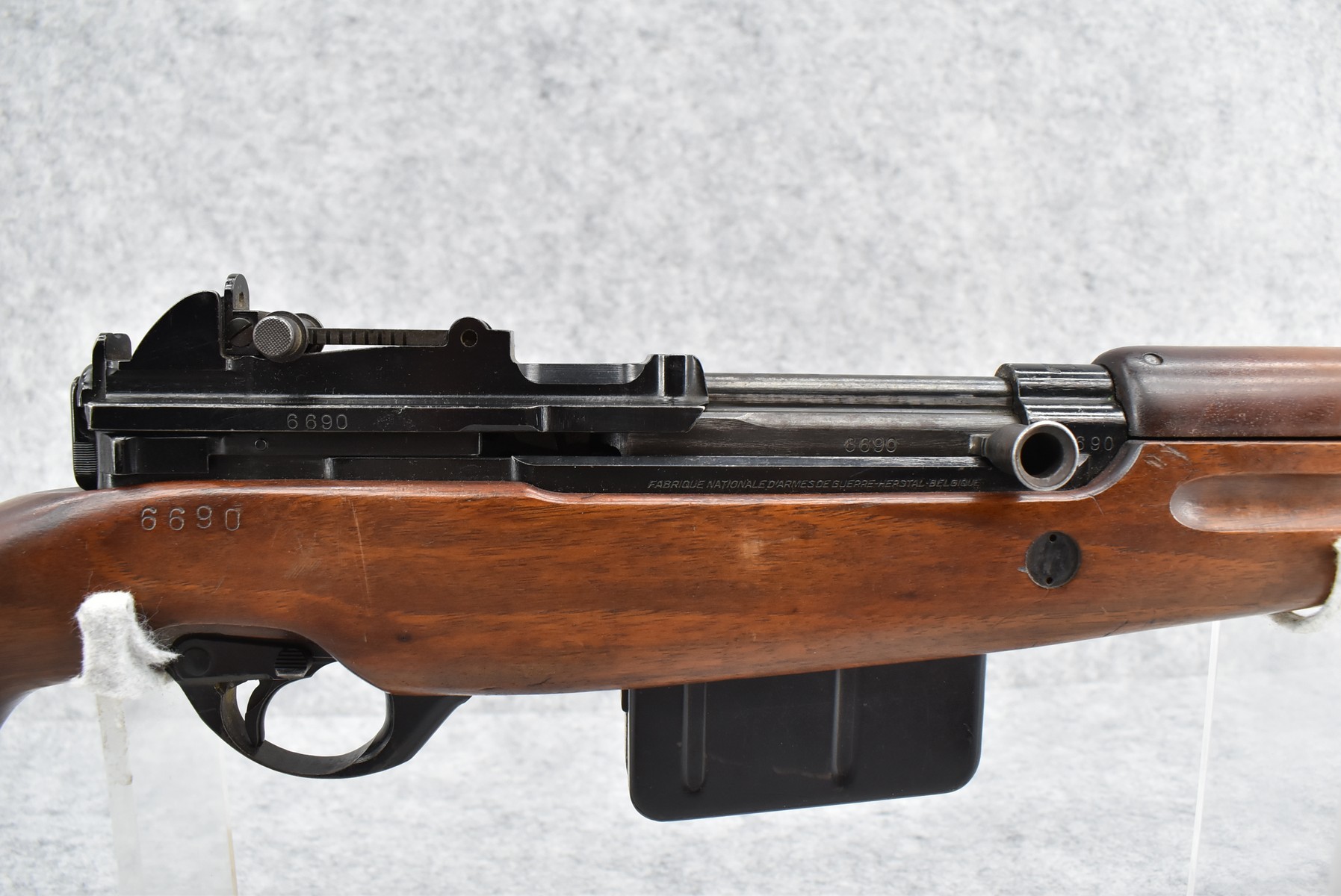 25R. Fabrique Nationale – Mod. FN-49 – 30-06 Cal. Semi-Auto Rifle – w/23 ¼” Barrel w/Blade Front & Adj. Rear Peep Sight – Blued/Black Finish – w/Pistol Grip Wood Stocks w/Metal Butt Plate – w/Detachable Magazine – All Matching Numbers