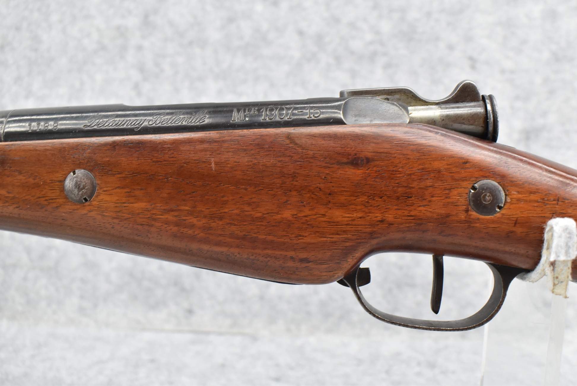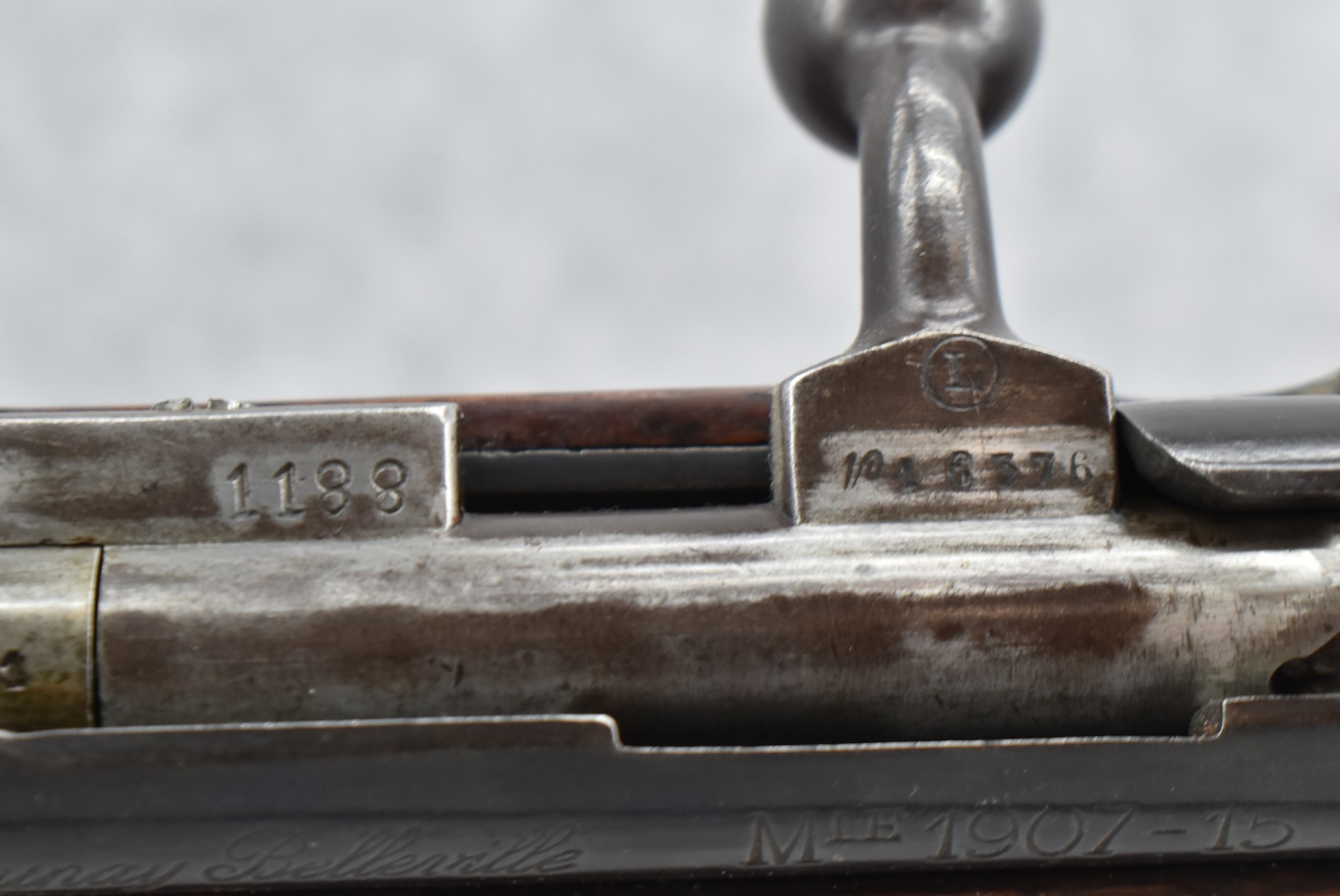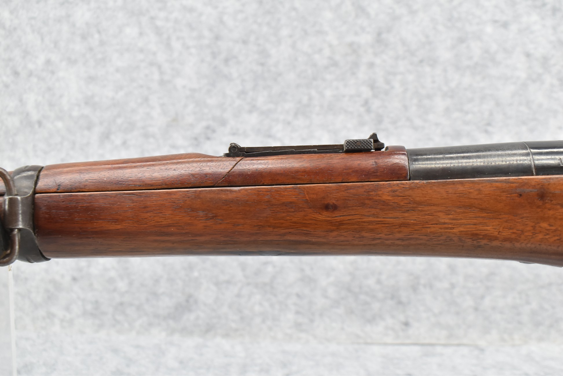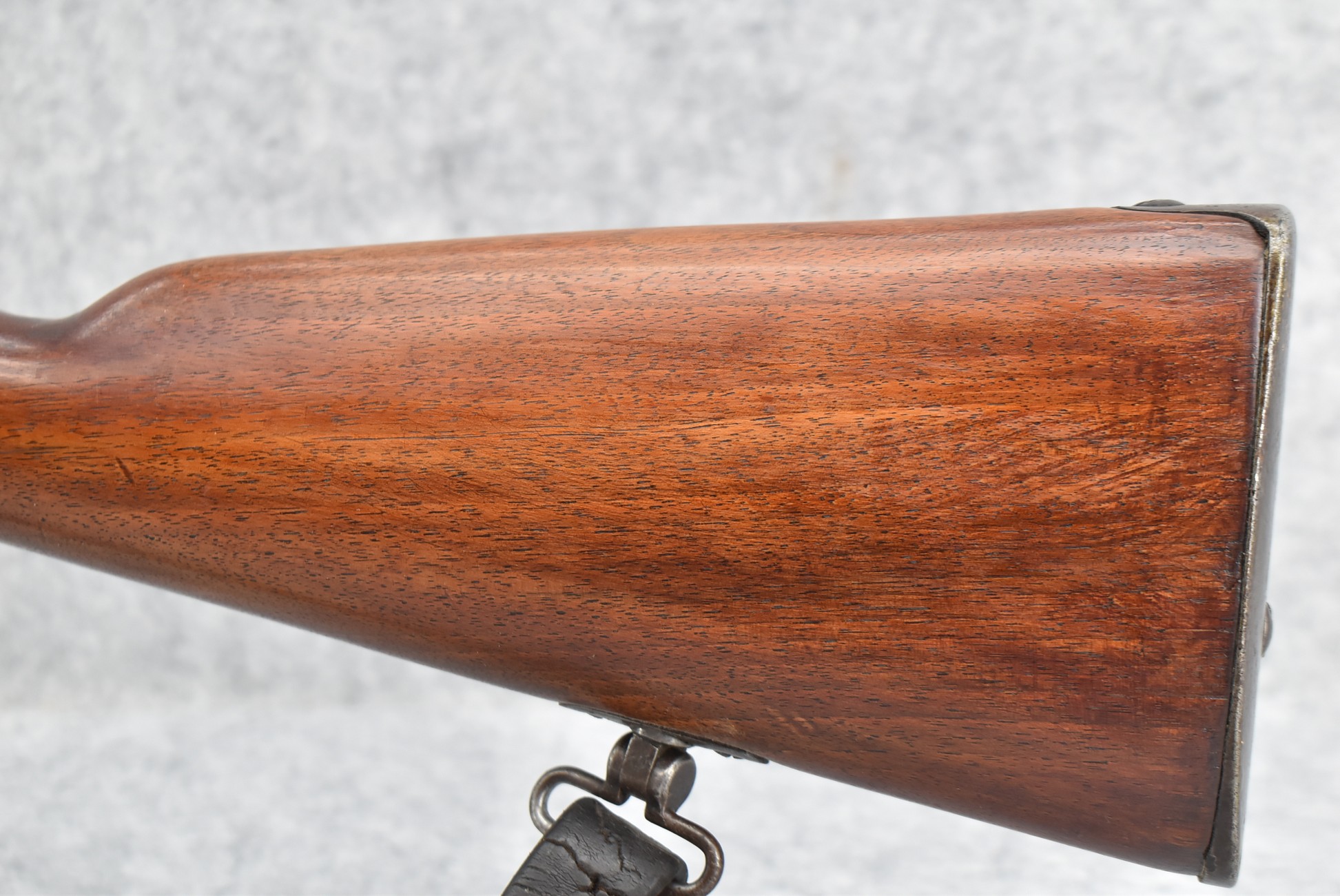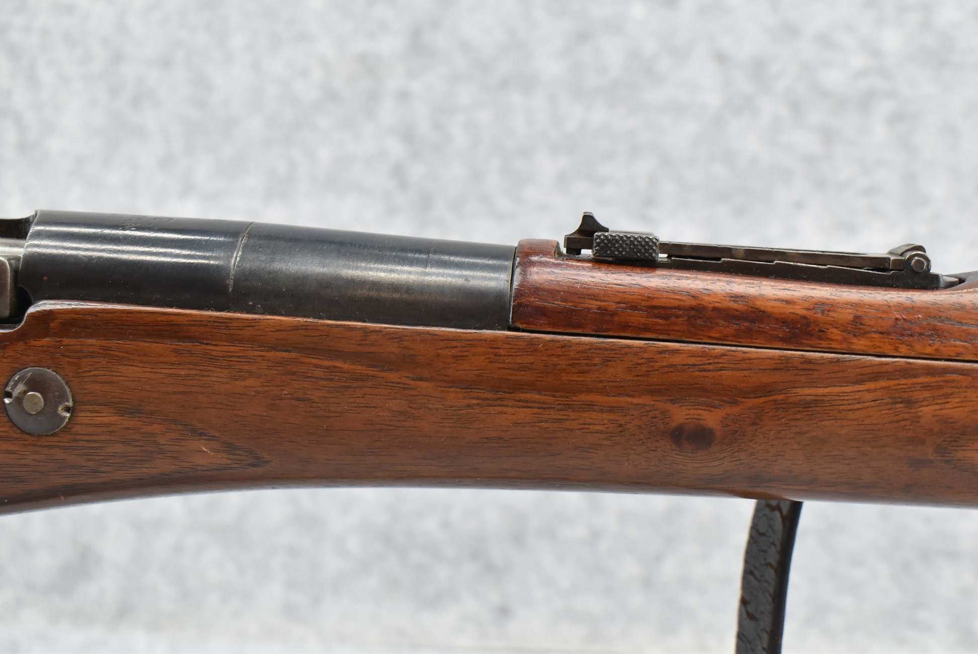 25R. French – Mod. 1907/15 – 8mm Lebel Cal. Bolt Action Rifle – w/22” Barrel w/Blade Front & Adj. Rear Ladder Sights – Blued Finish – w/Straight Grip Full Wood Mannlicher Style Stock w/Metal Butt Plate – w/Period Leather Sling – Dated 1948