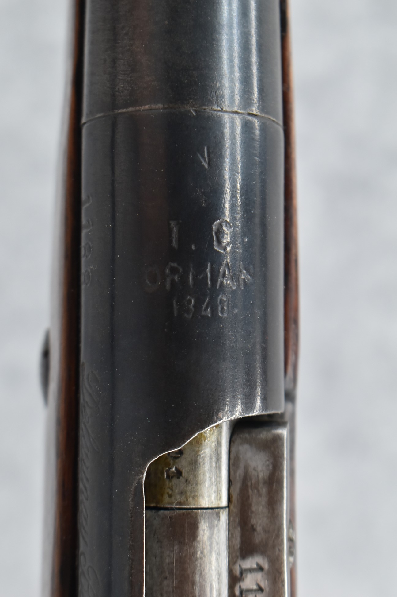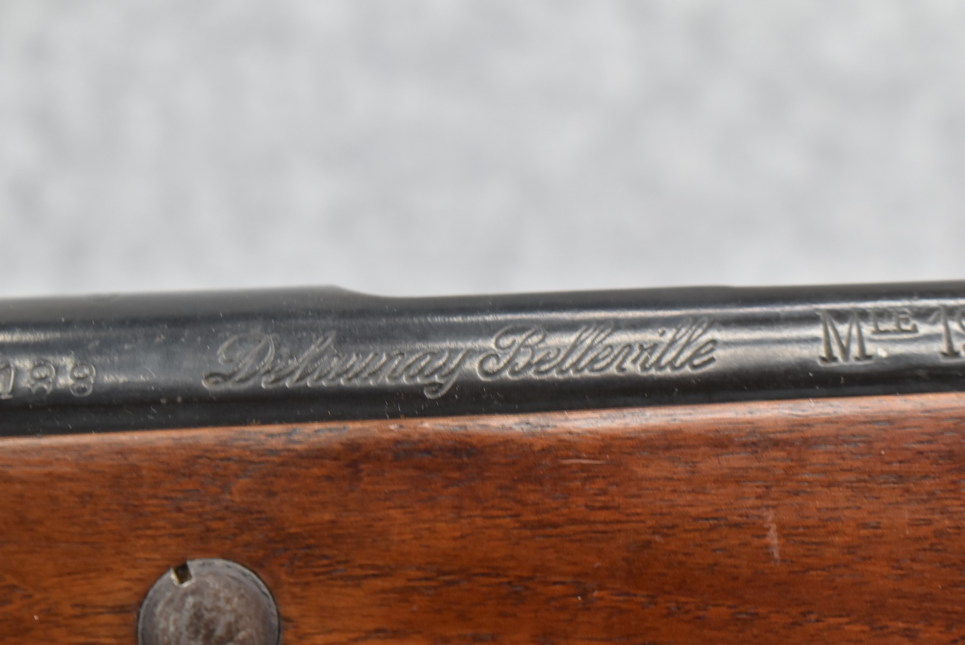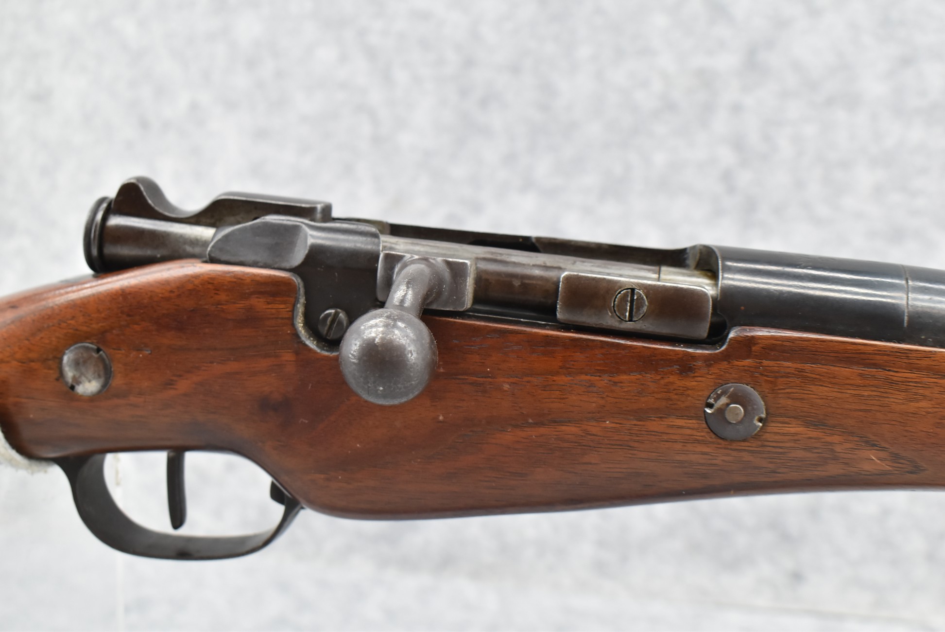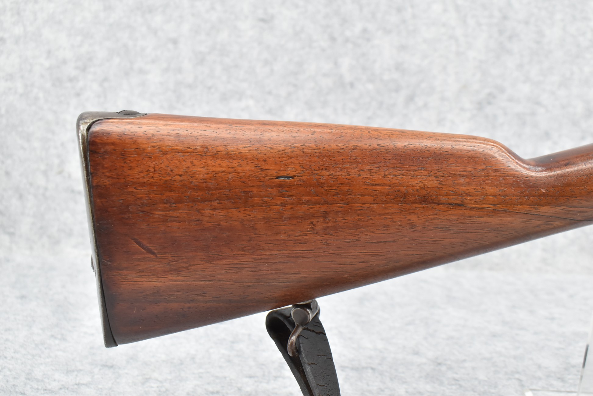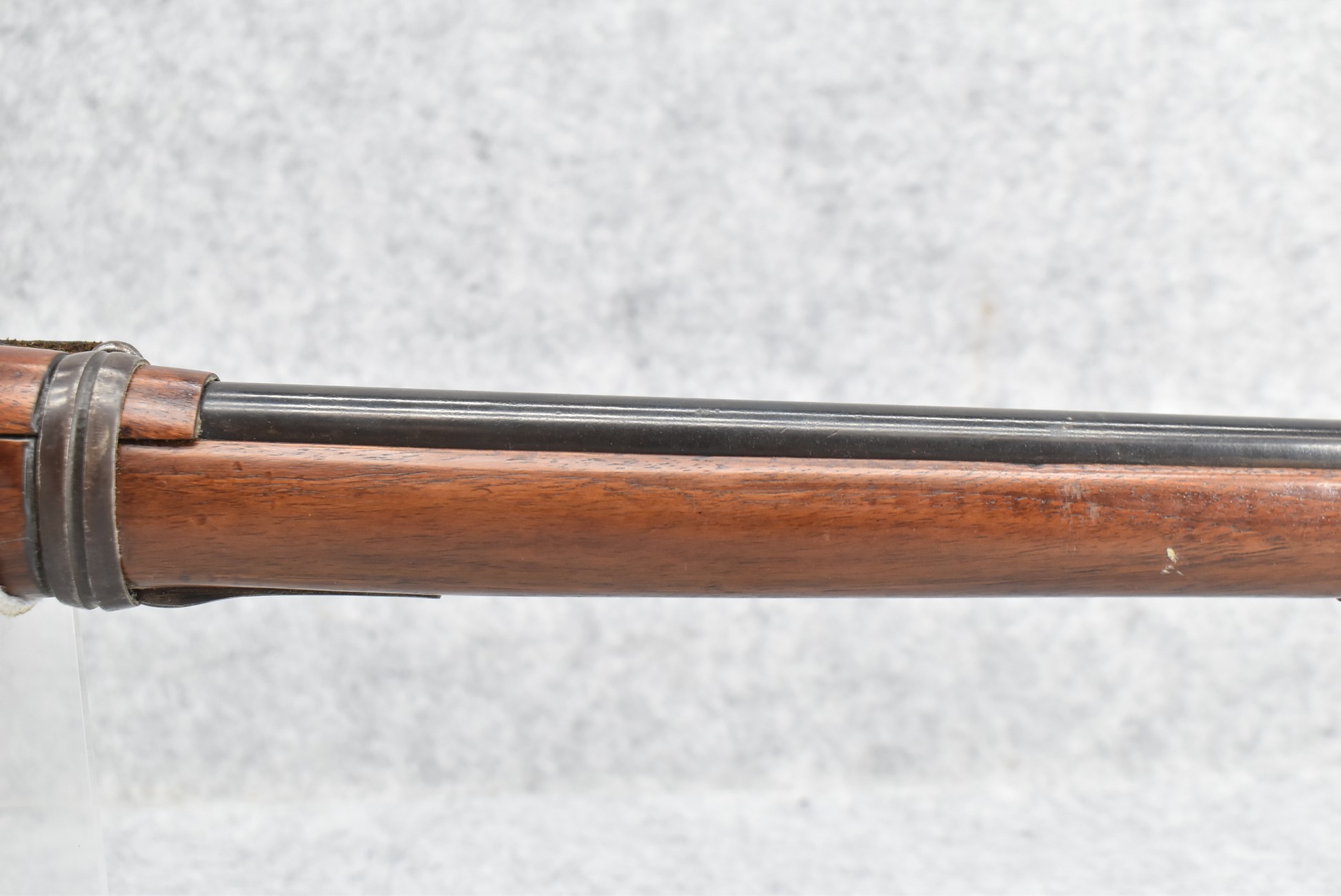 25R. French – Mod. 1907/15 – 8mm Lebel Cal. Bolt Action Rifle – w/22” Barrel w/Blade Front & Adj. Rear Ladder Sights – Blued Finish – w/Straight Grip Full Wood Mannlicher Style Stock w/Metal Butt Plate – w/Period Leather Sling – Dated 1948