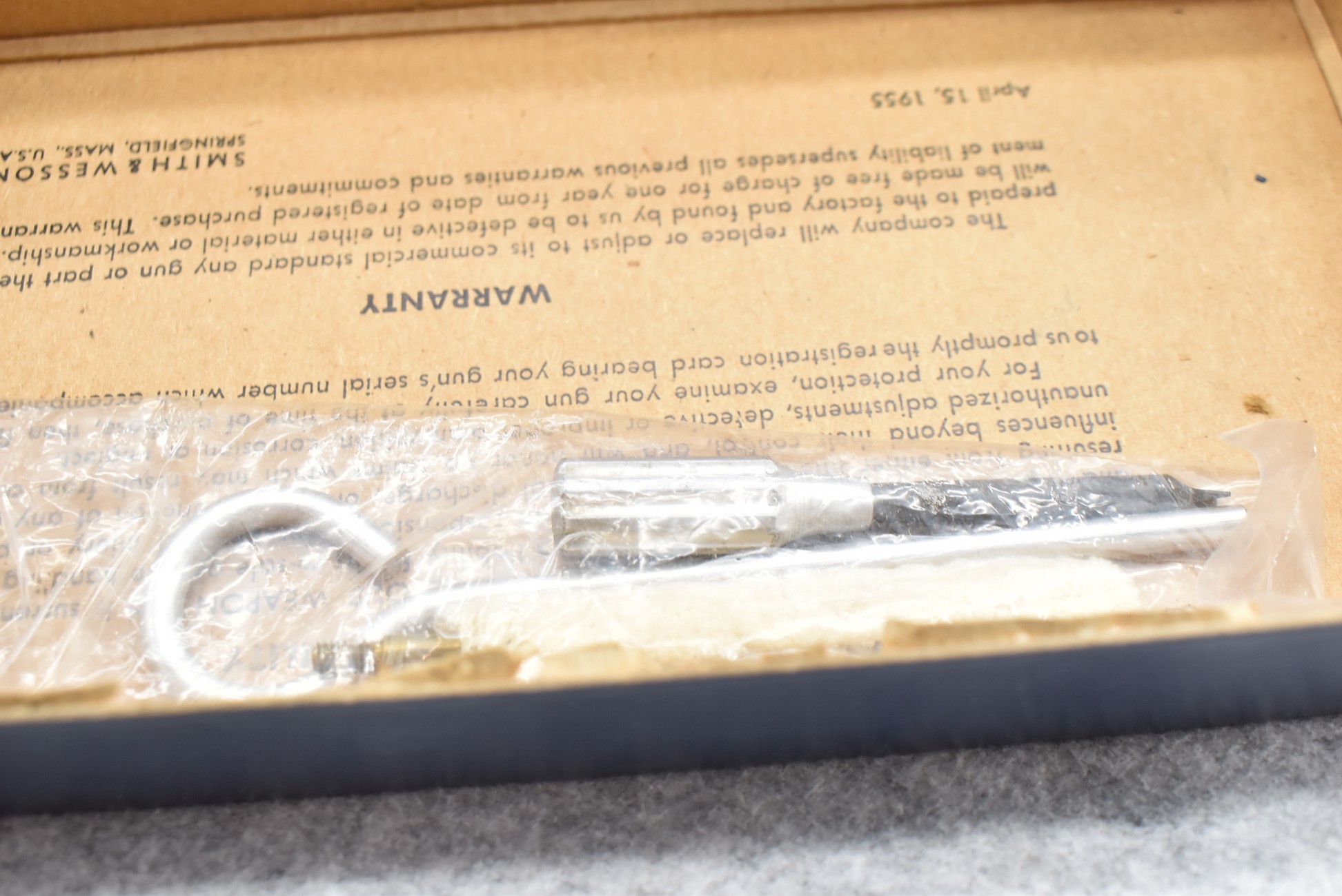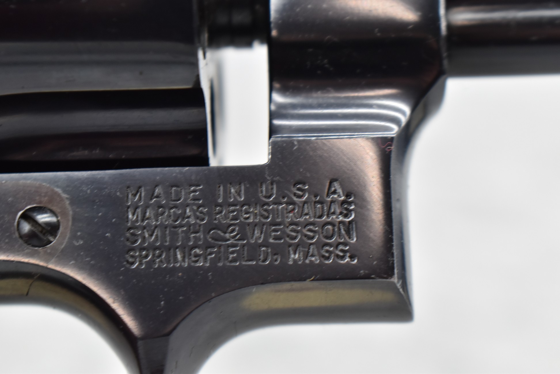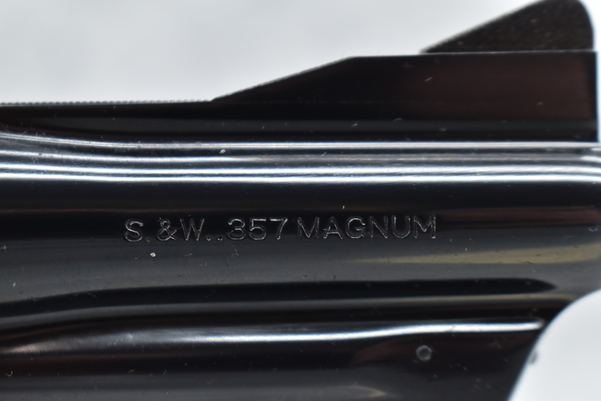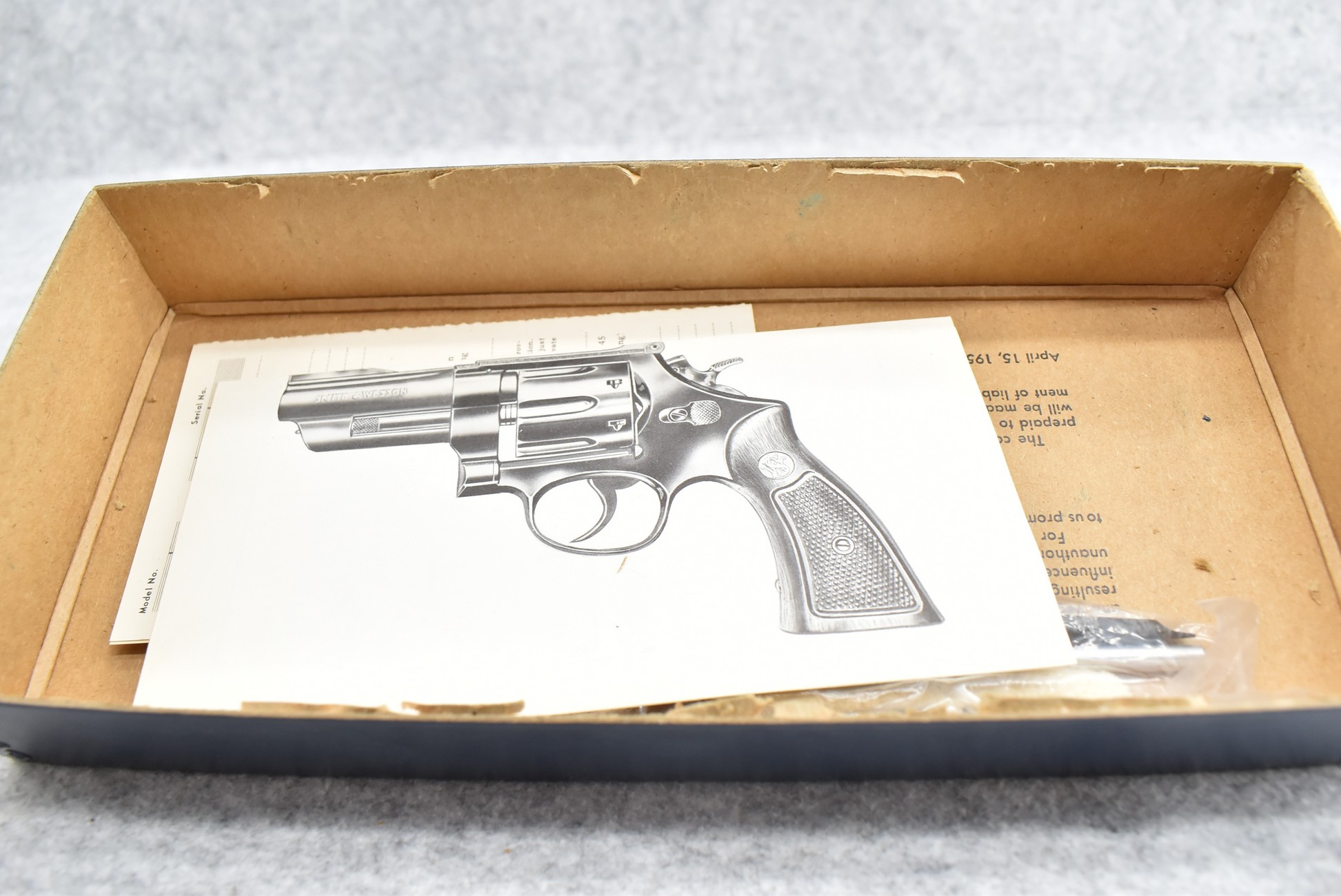 260R. Smith & Wesson – Mod. 27-2 – 357 Mag. Cal. Double Action Revolver – w/3 ½” Barrel w/Ramp Blade Front & Adj. Rear Notch Sights – Blued Finish – w/S&W Medallion Diamond Checkered Wood Grips – w/Factory Box, Manual & Accessories Including Cleaning Rod w/Brush & Swab & Screwdriver