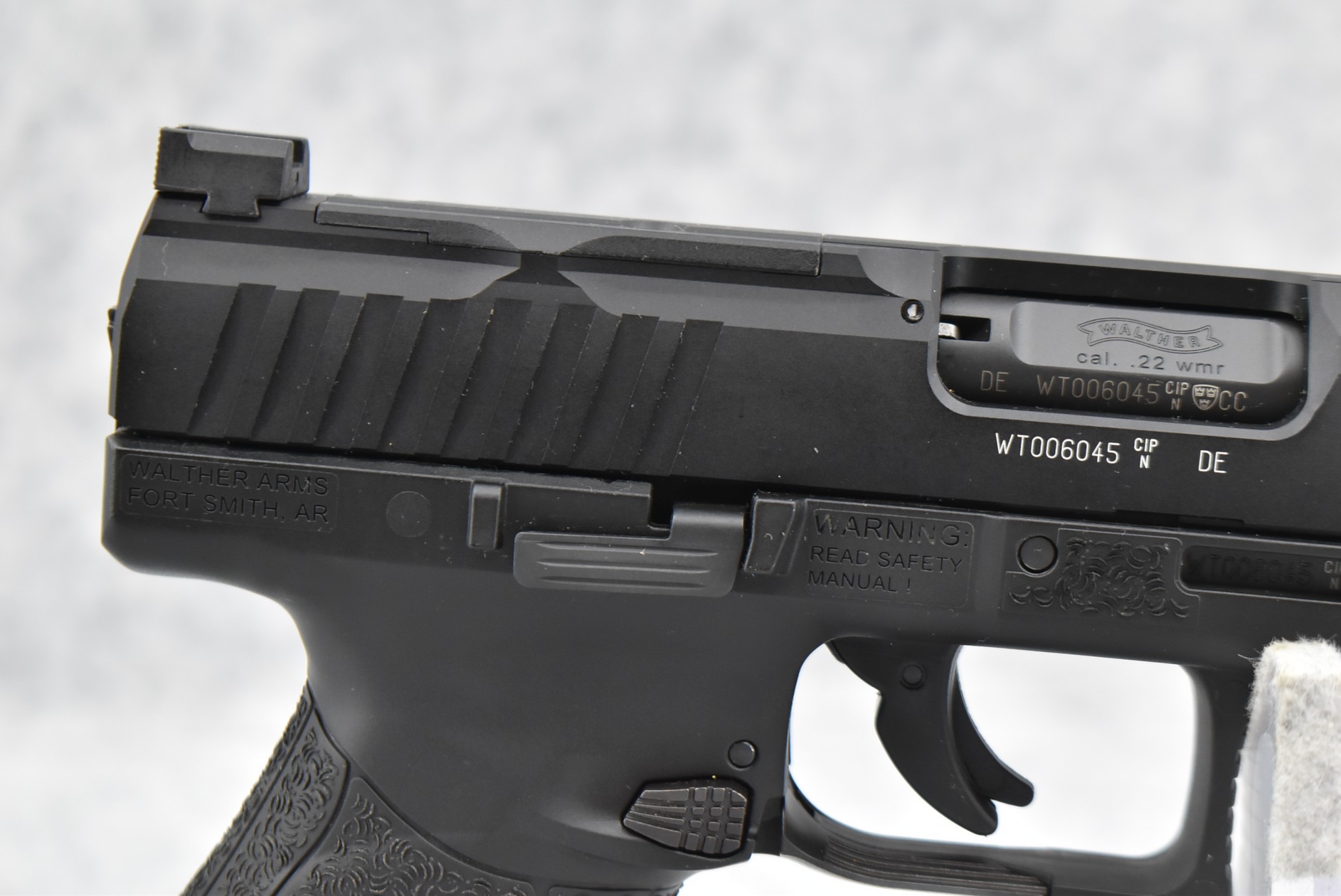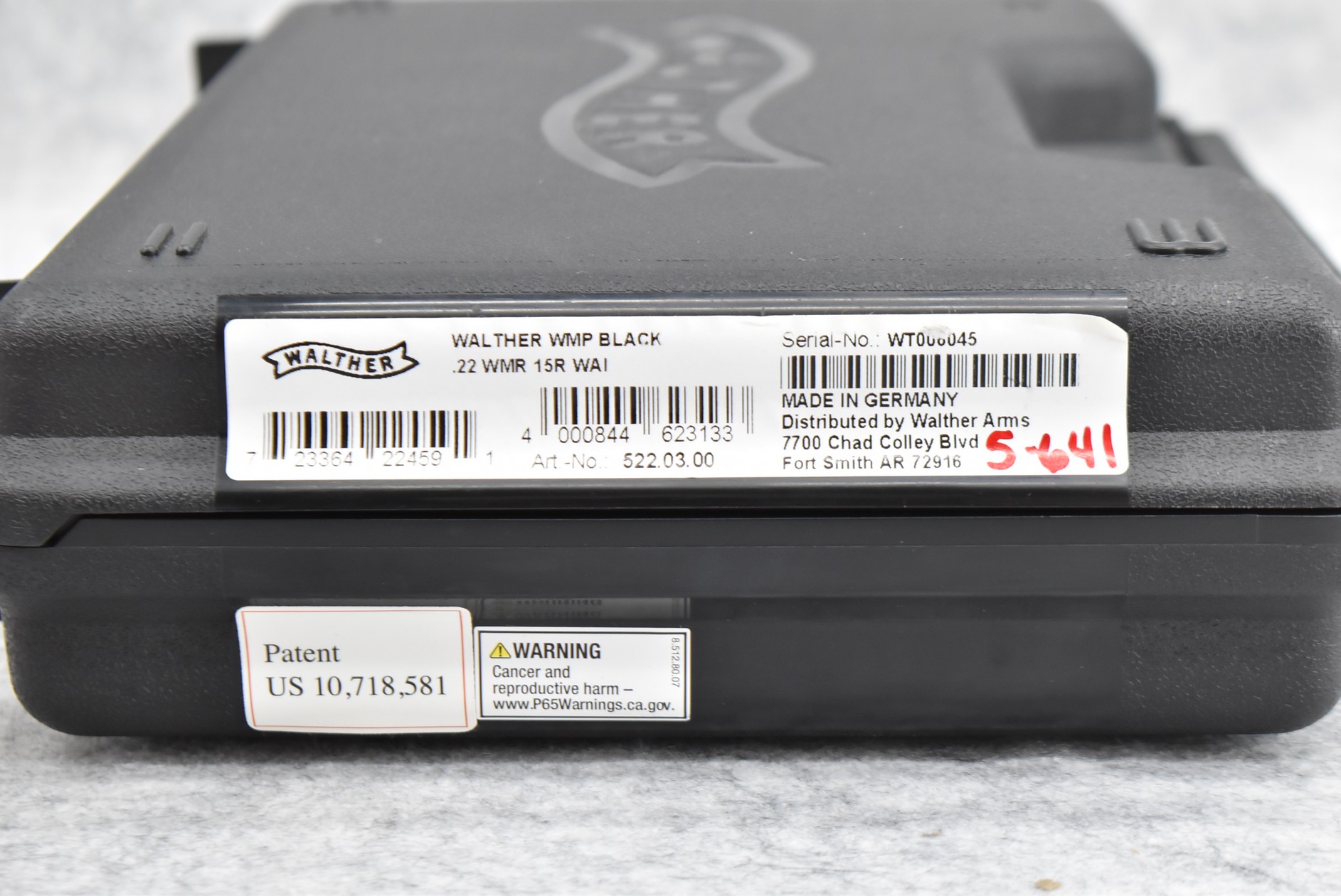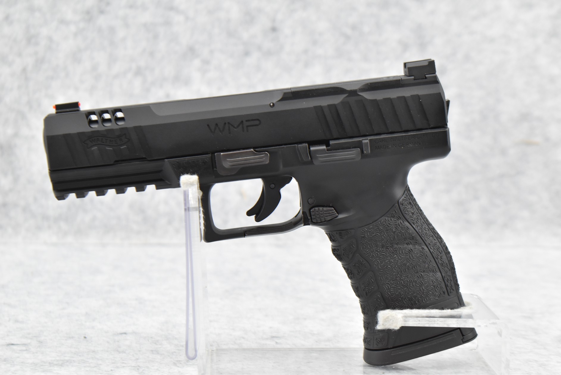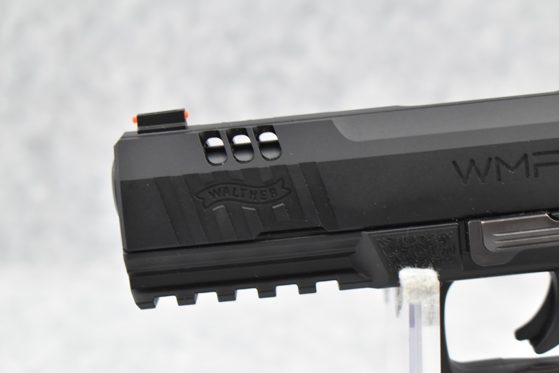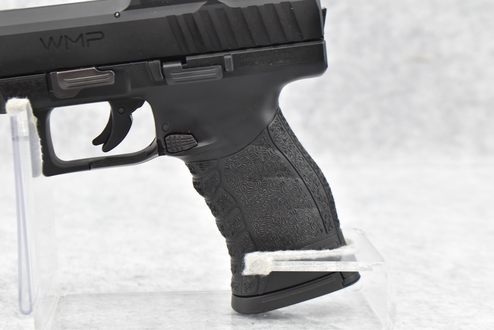 266R. Walther – Mod. WMP – 22 Win. Mag. Cal. Semi-Auto Pistol – w/4.25” Barrel w/Front Fiber Optic & Rear Iron Sights – Matte Black Finish – w/Black Polymer Grooved Grips – w/Ported Slide – Optics Ready – w/Factory Box, Manual & 2 Mags