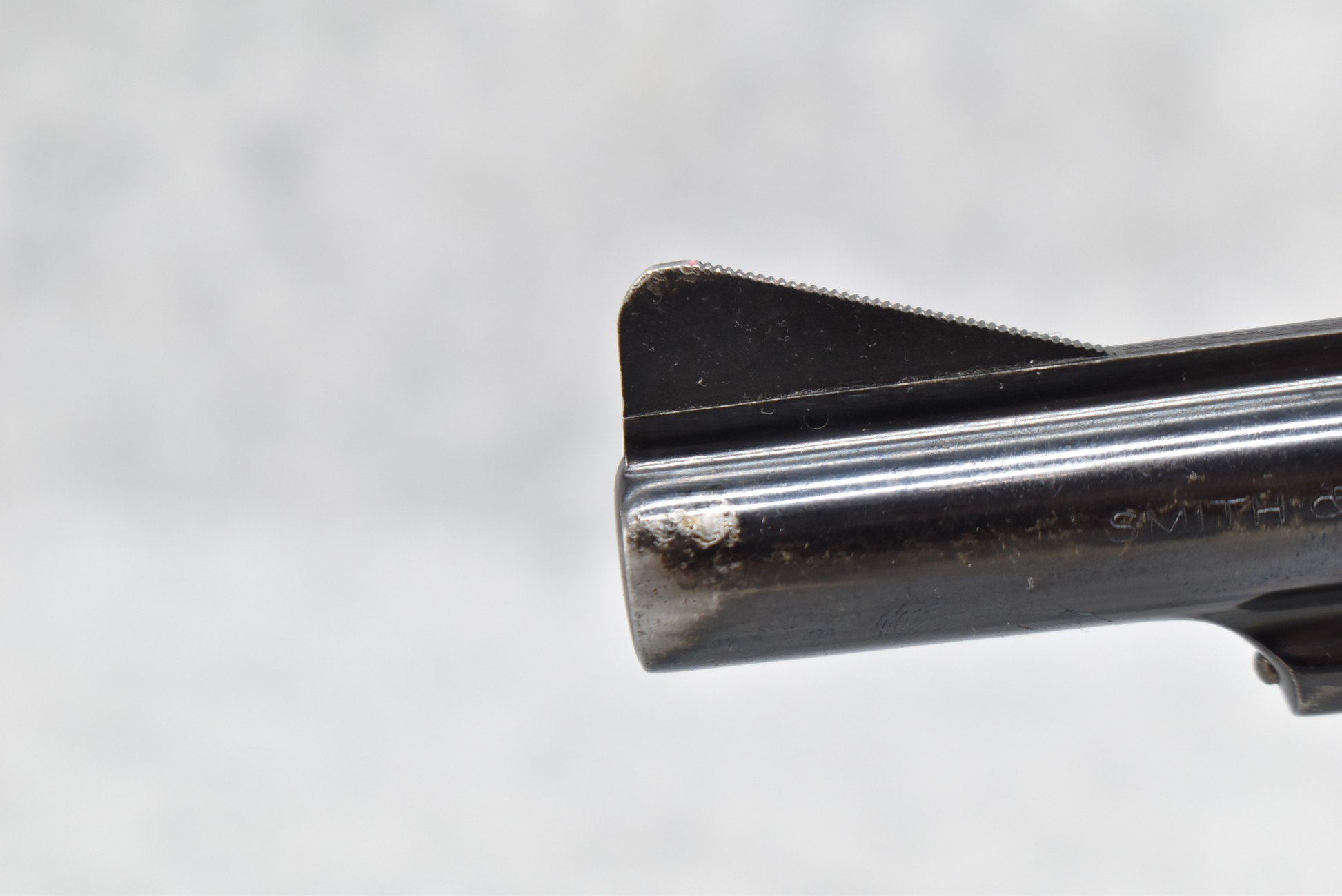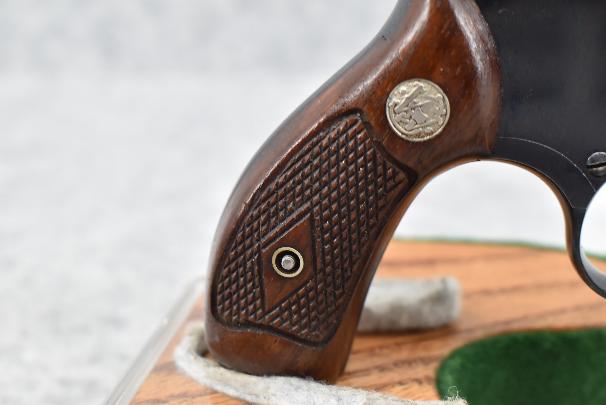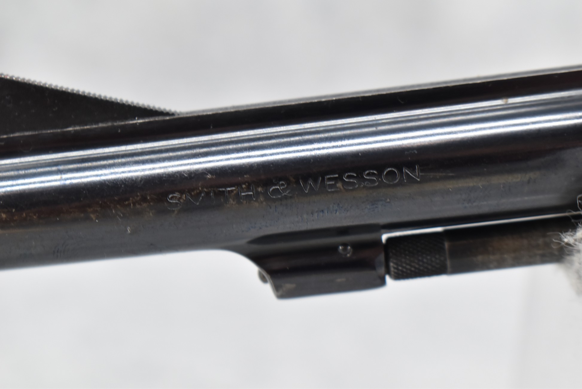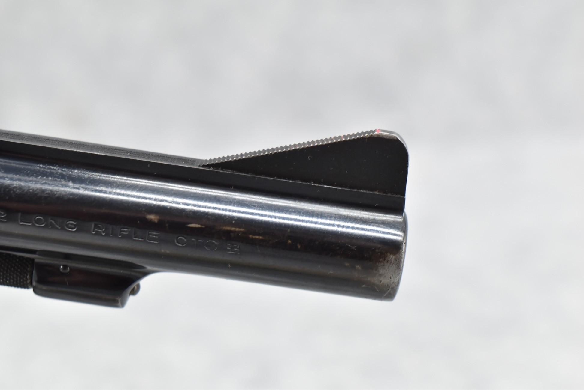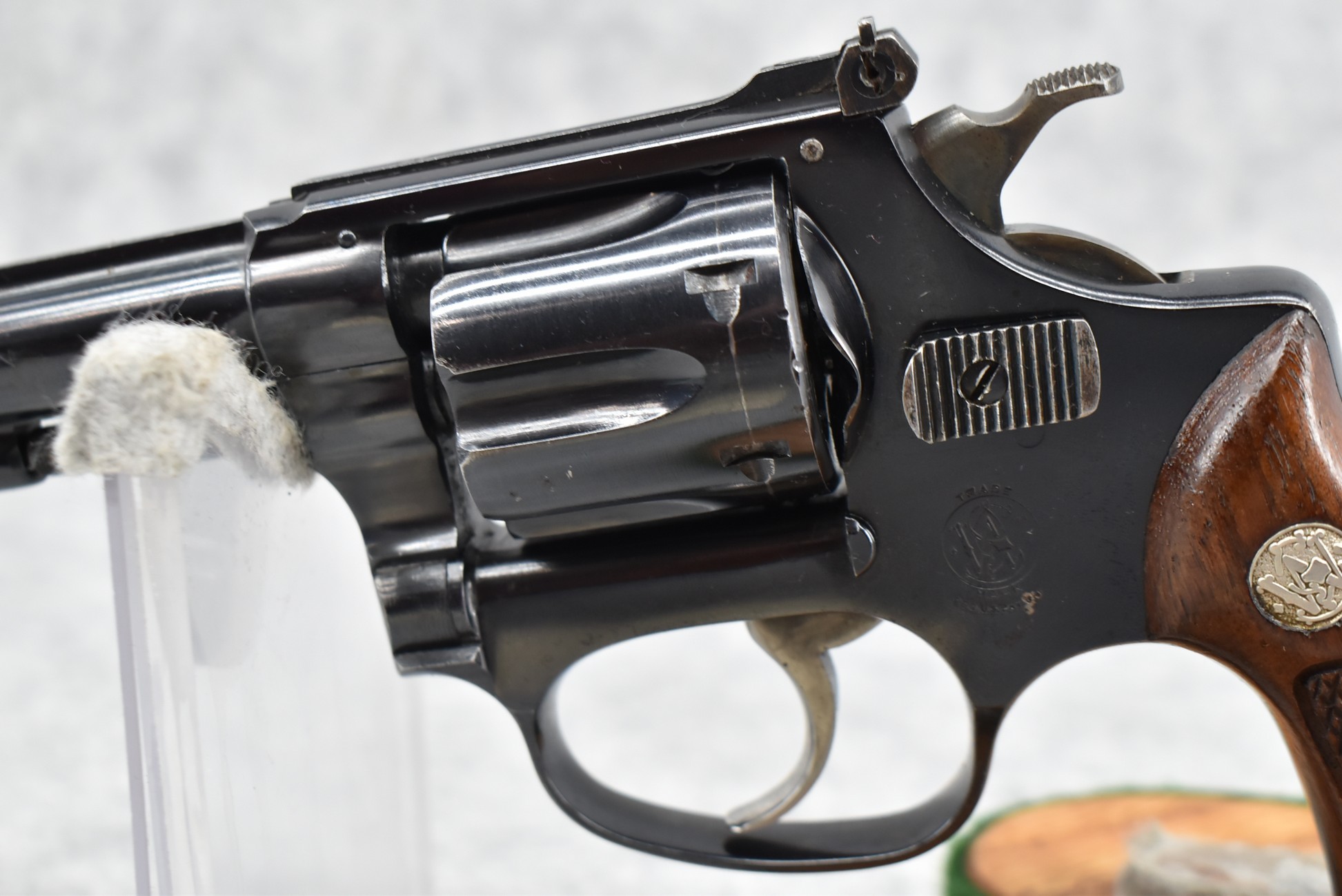 267R. Smith & Wesson – Modl of 1953 .22/32 Kit Gun-Pre-Model 34 – 22LR Cal. Double Action Revolver – w/4” Barrel w/Front Blade & Rear Adj. Sights – Blued Finish – w/Factory Checkered Wood Grips w/S&W Medallion That Match to Serial Number – Underside of Barrel, Back of Cylinder & Butt Numbers All Match! – Mfg. Between 1953-1969